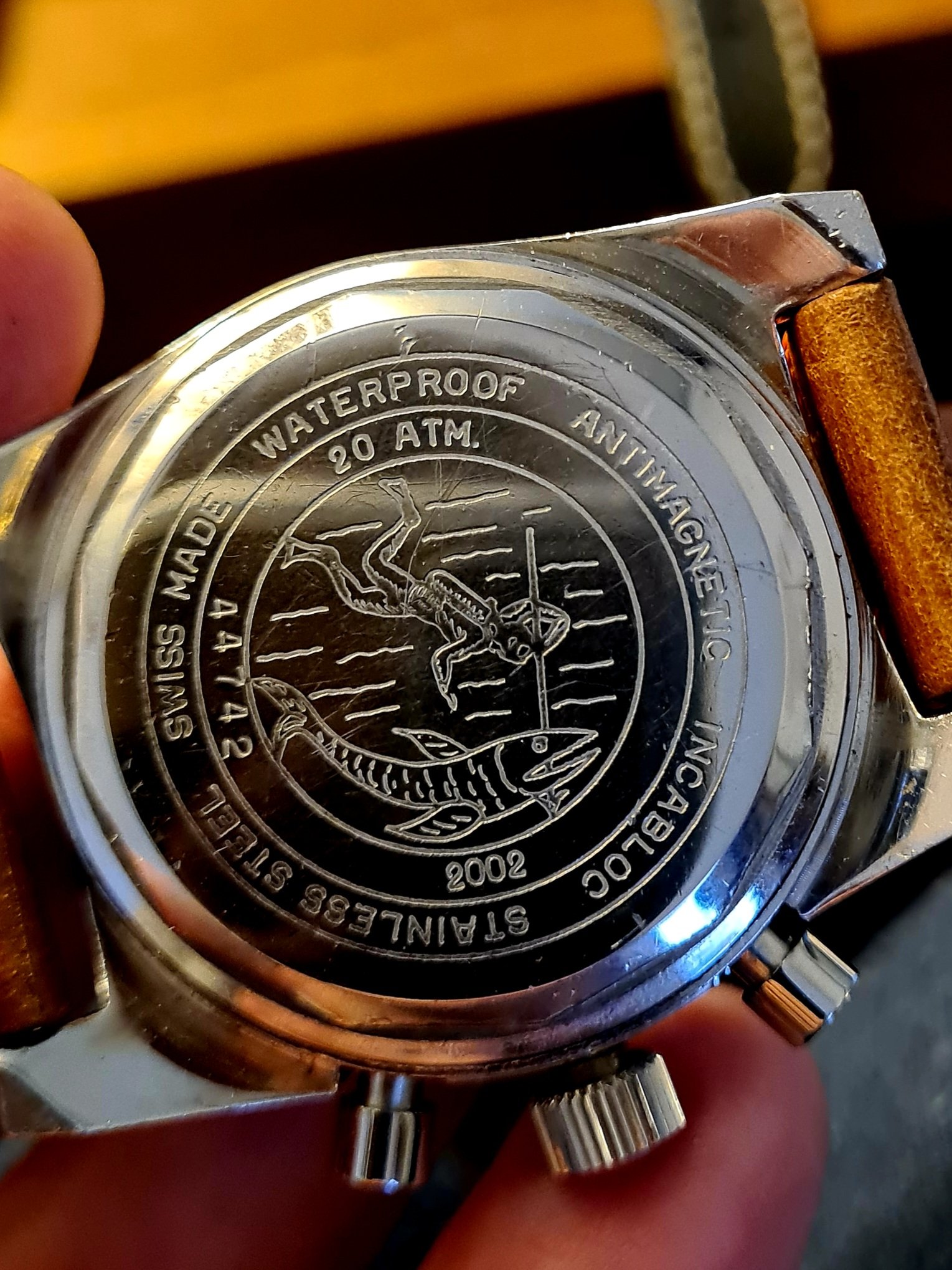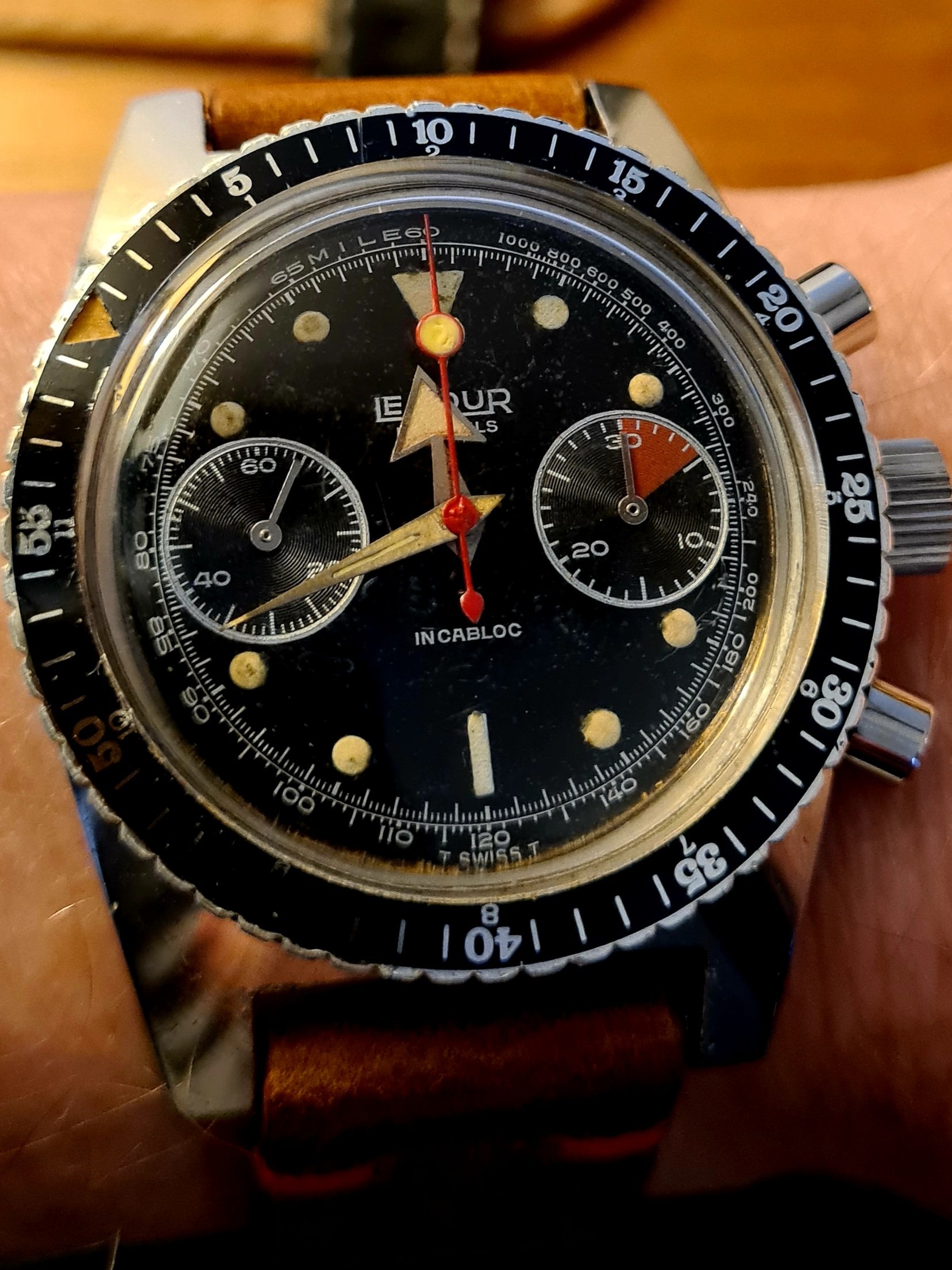 Posts 1,097 Likes 7,093 Dr.Sascha ·Oct 17, 2023 Le Jour Triton broad arrow, in the uncommon ref. 2002 "spearfisher" case version. Also note the unusual font on the bezel--only time I've seen that particular style, very French! Edited: Oct 17, 2023