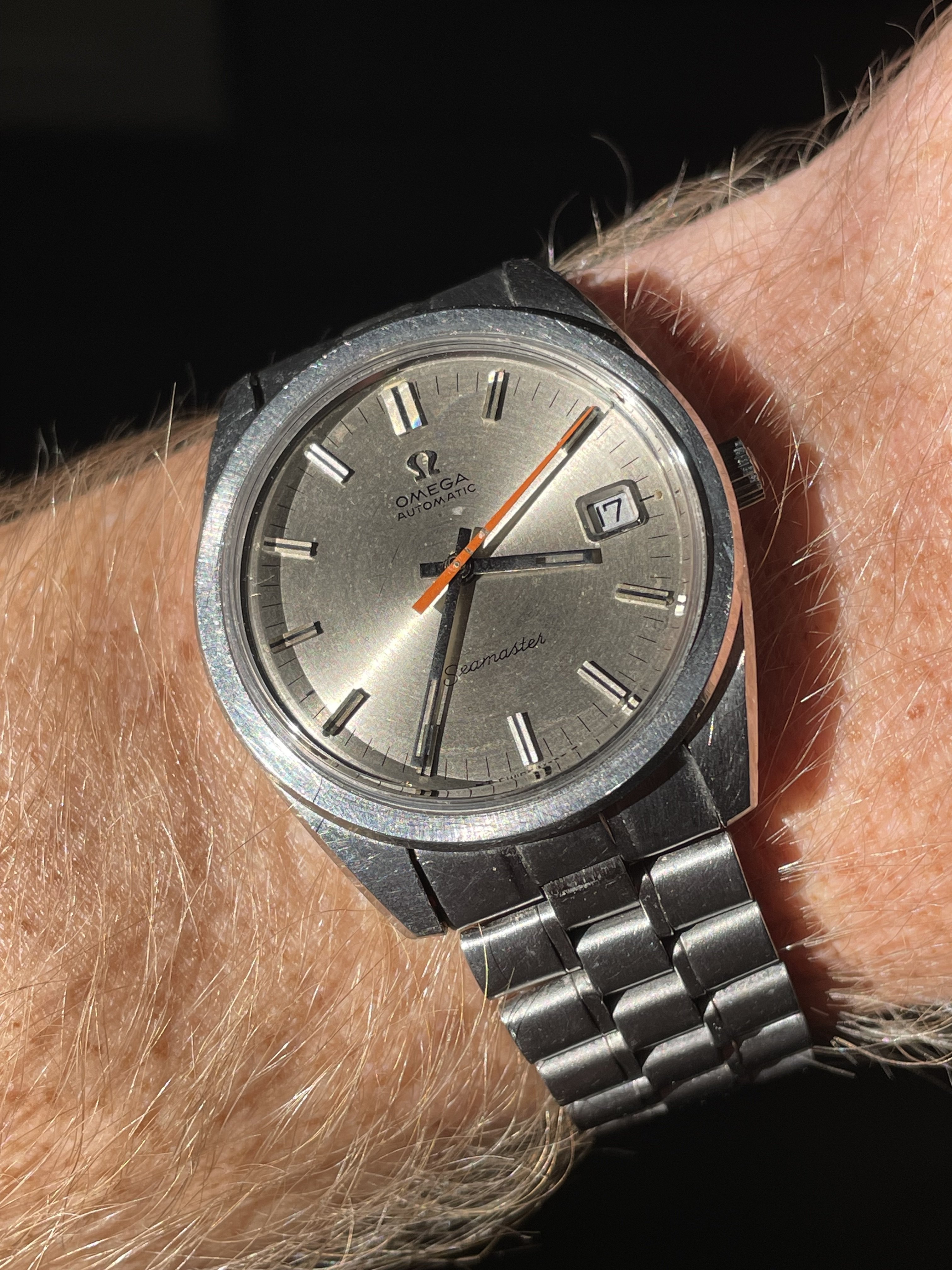 Posts 8,492 Likes 69,988 Spruce ·Oct 18, 2023·Sunburst dial fan Tricky things, photos. This 165.003 doesn’t have a yellow patinated dial, just a silver dial reflecting the artificial light.