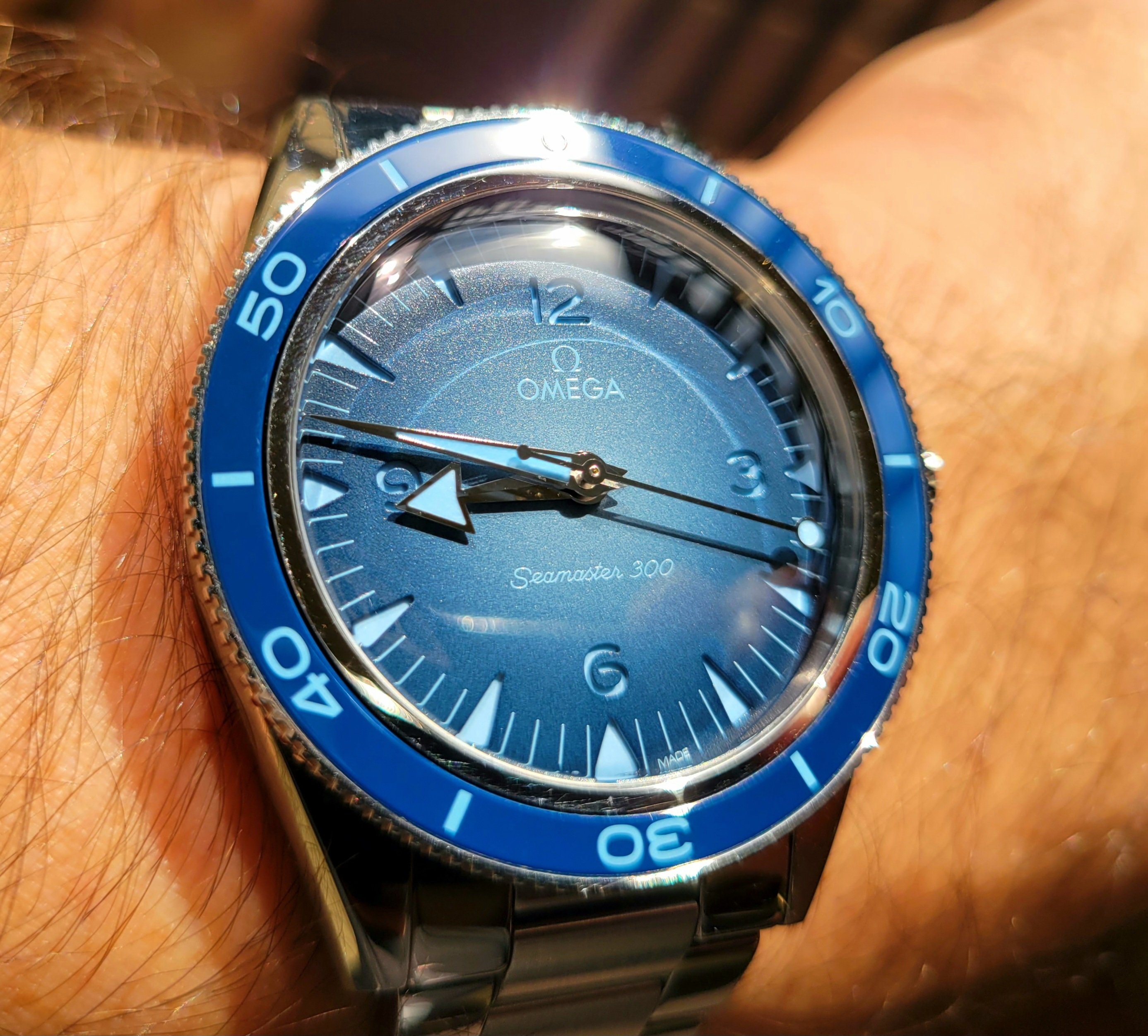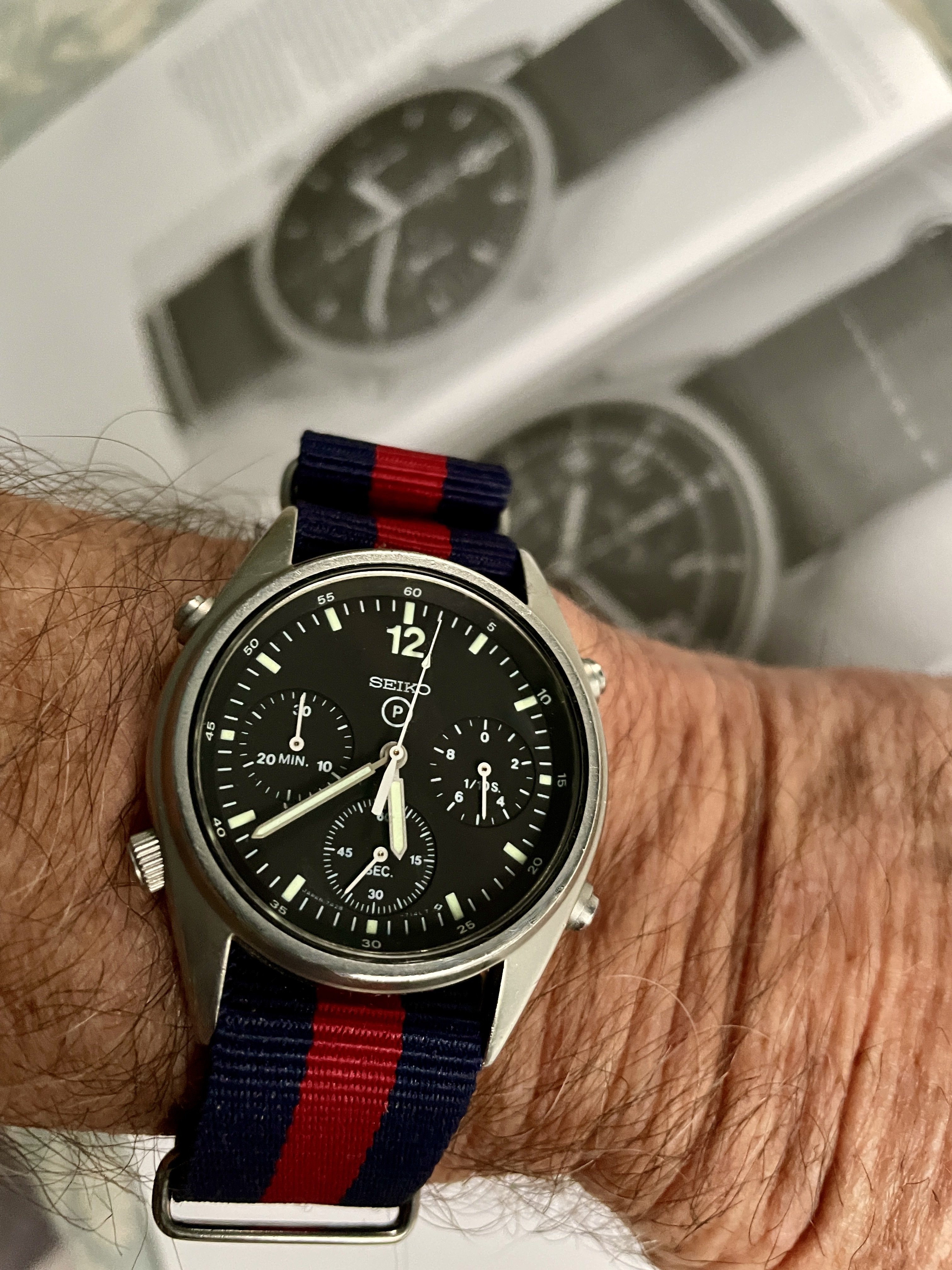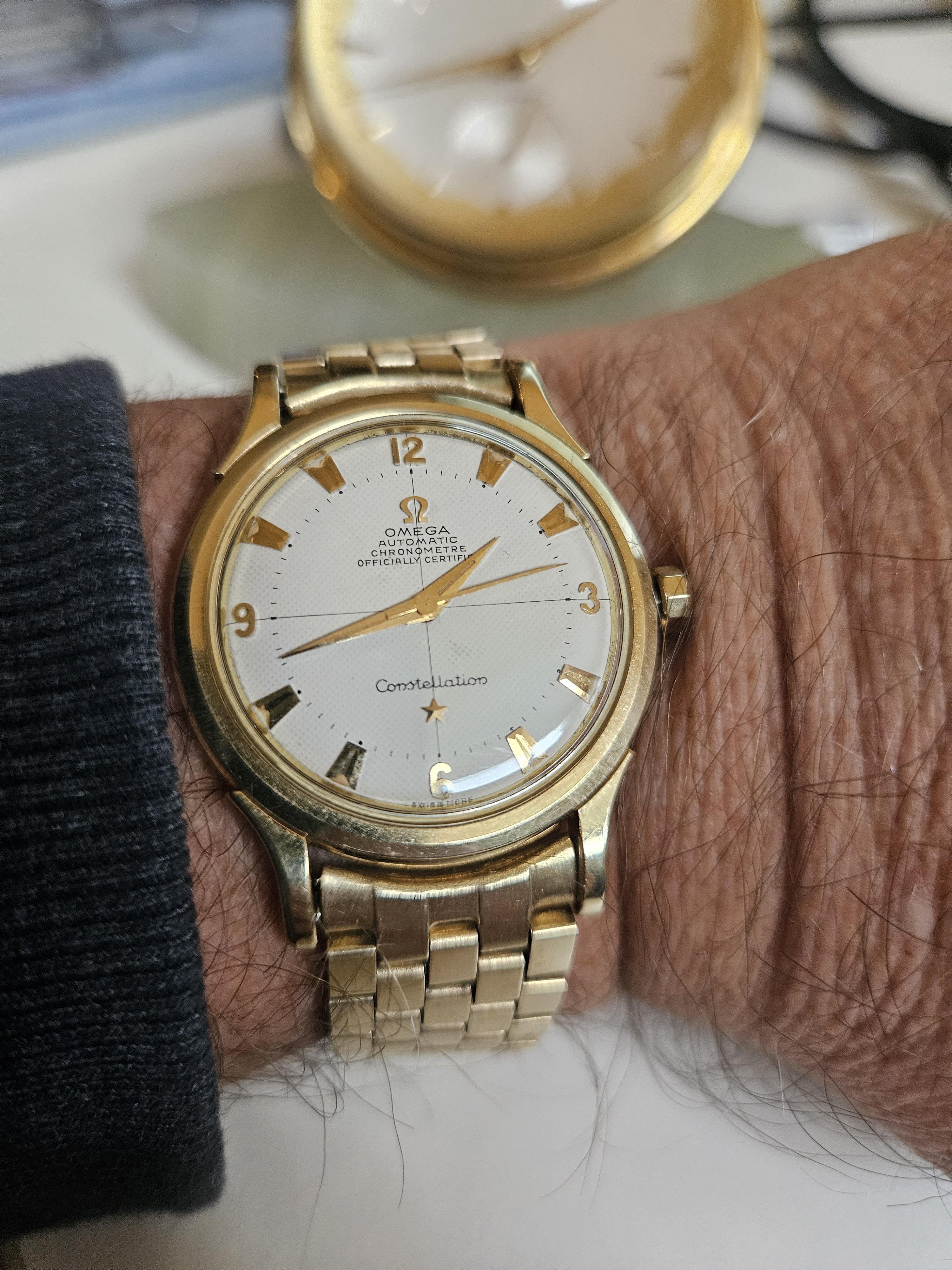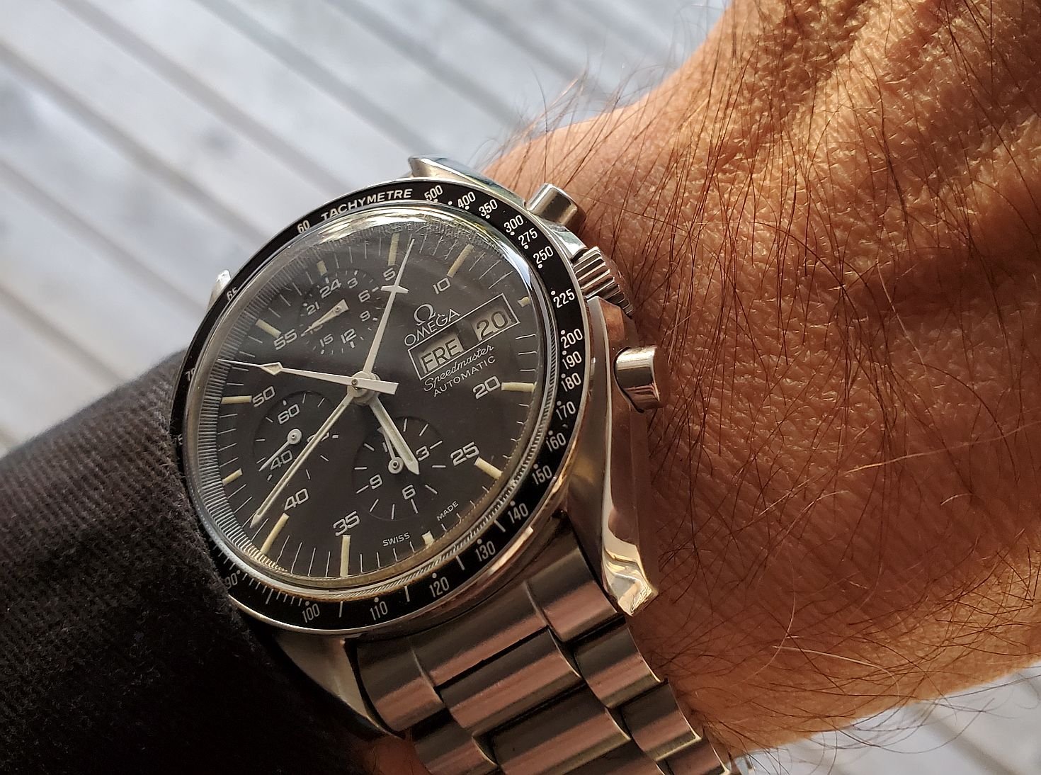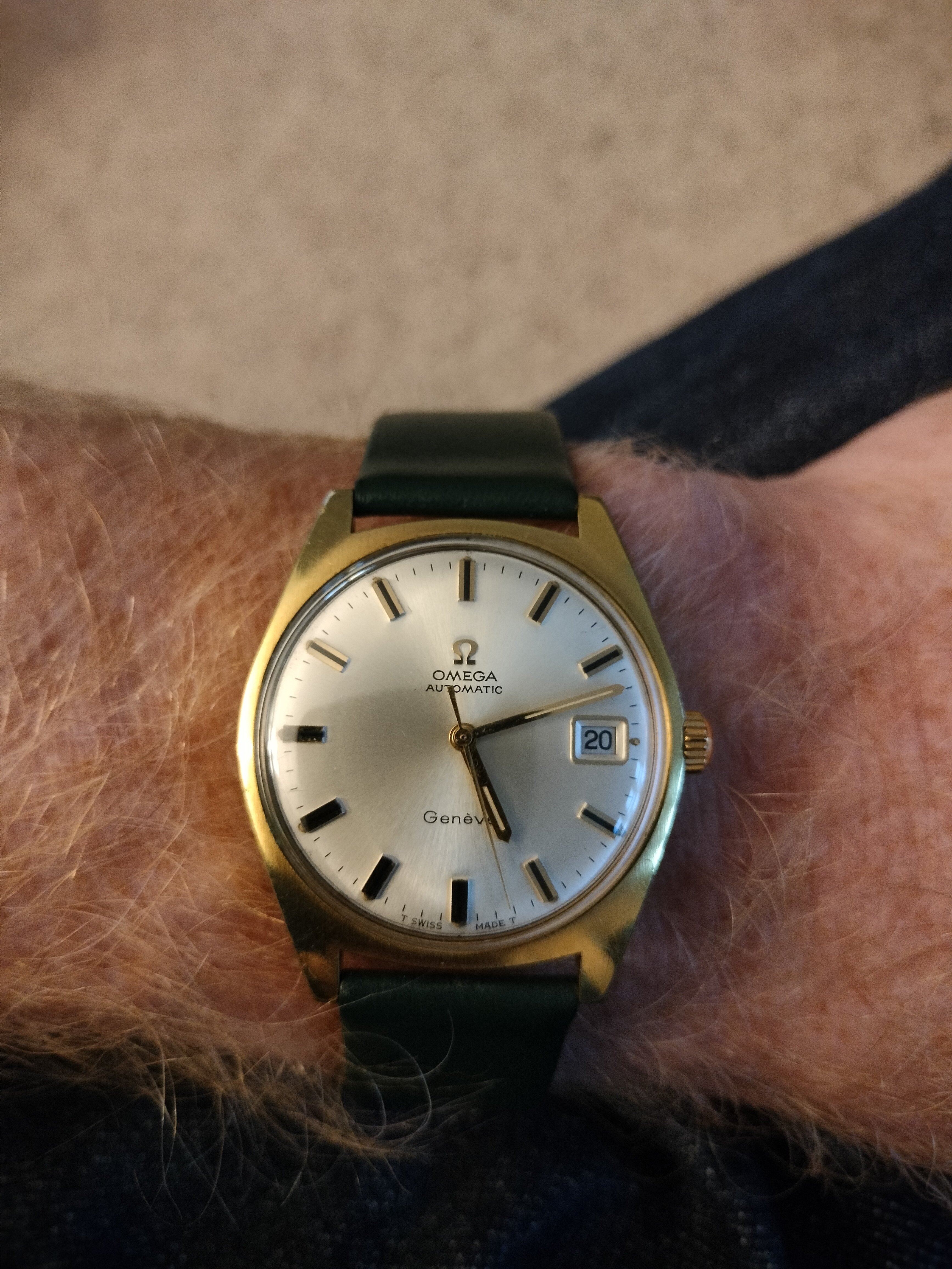 A modded 3575.20.00 from around 2003, started life with Broad Arrow hands and WG bezel, freshened up with blue baton hand set and Gemini IV bezel. The 1866 Speedmasters are generally underappreciated, and I think this dial (ecru/beige) is one of the best of any Speedmaster.