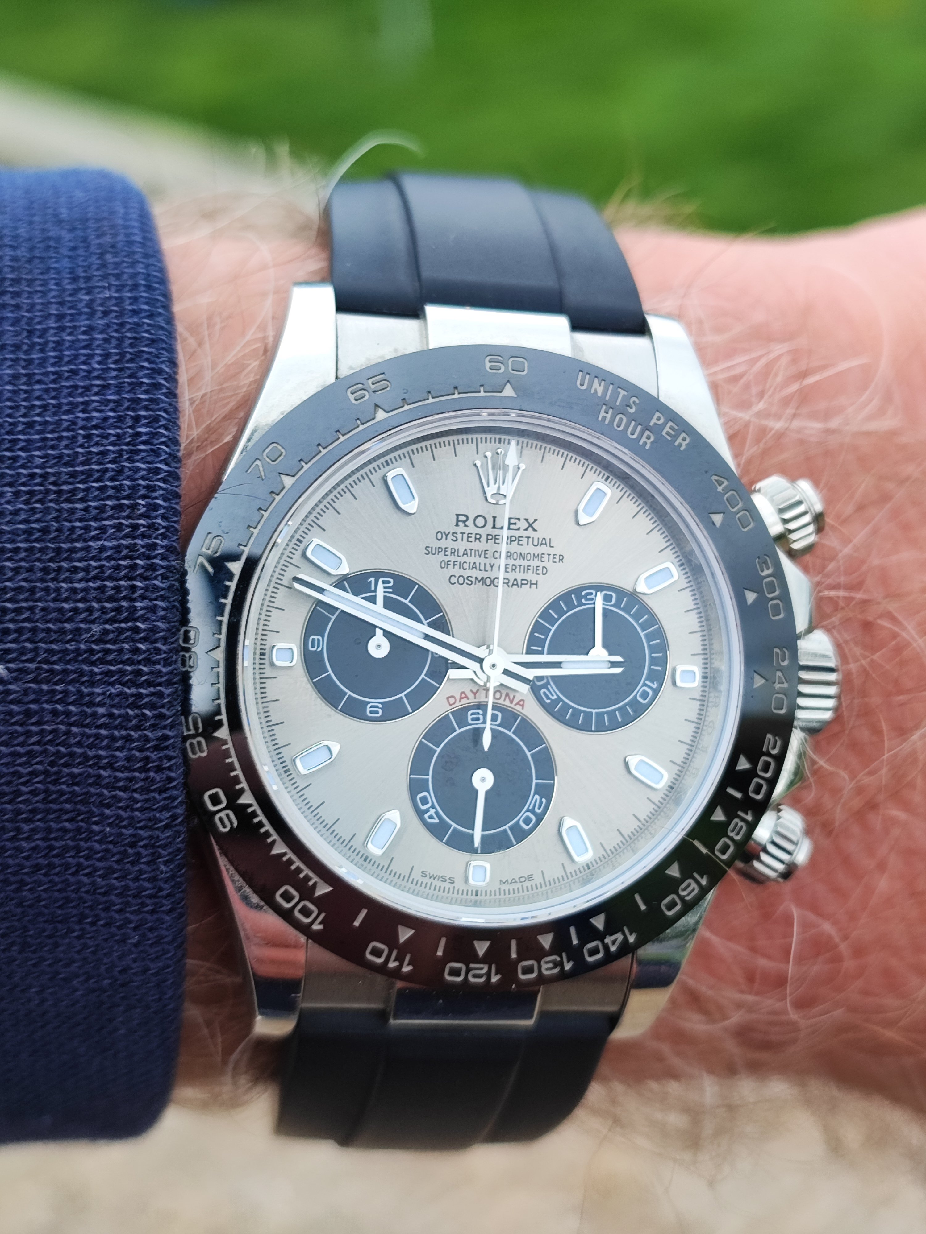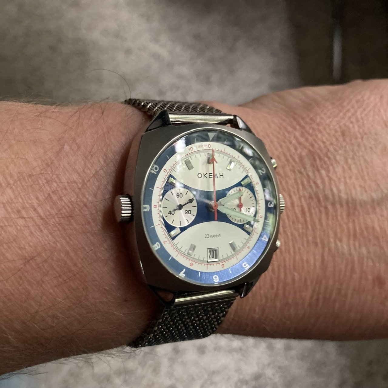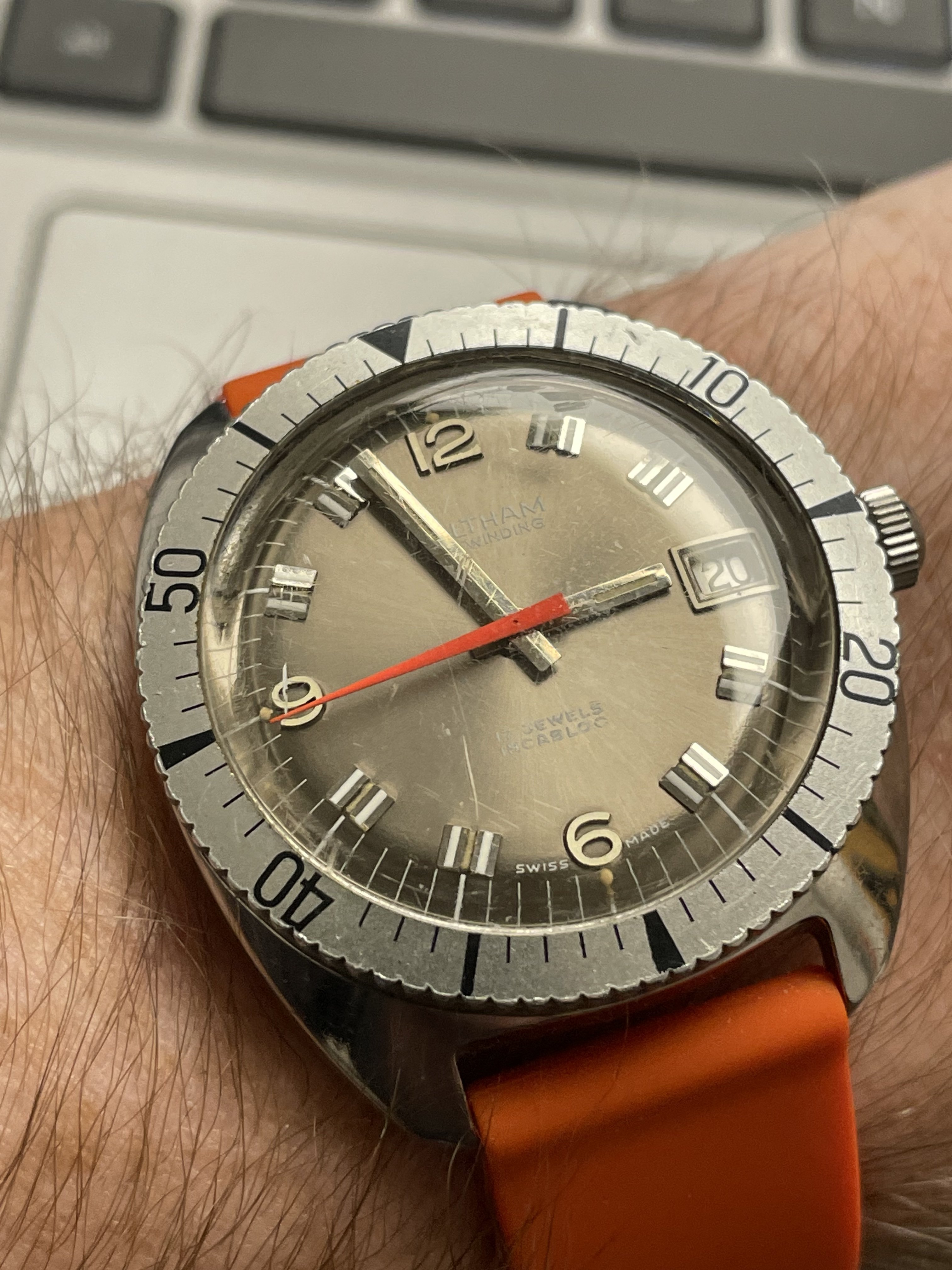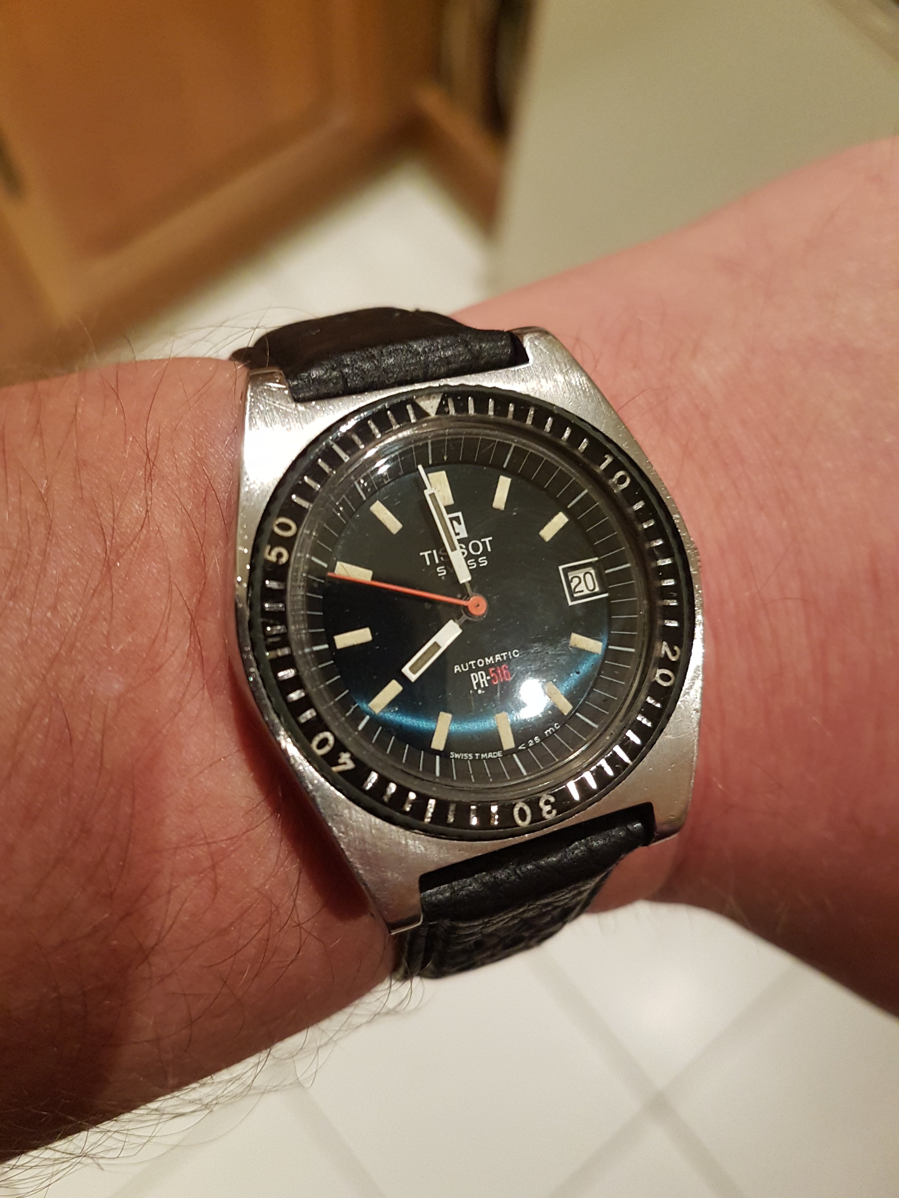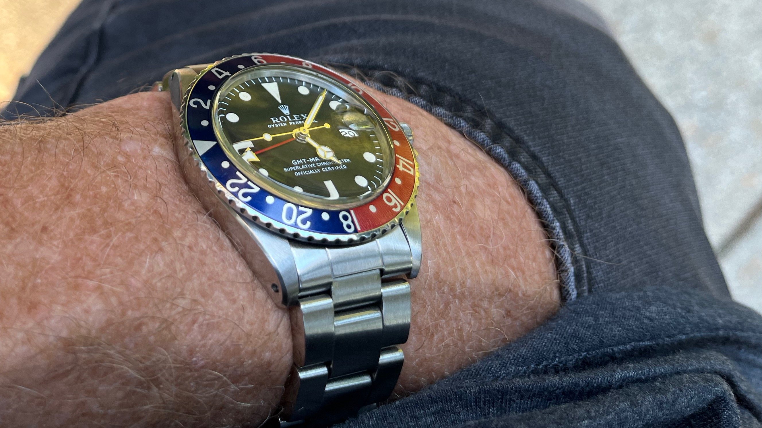A modded 3575.20.00 from around 2003, started life with Broad Arrow hands and WG bezel, freshened up with blue baton hand set and Gemini IV bezel. The 1866 Speedmasters are generally underappreciated, and I think this dial (ecru/beige) is one of the best of any Speedmaster.