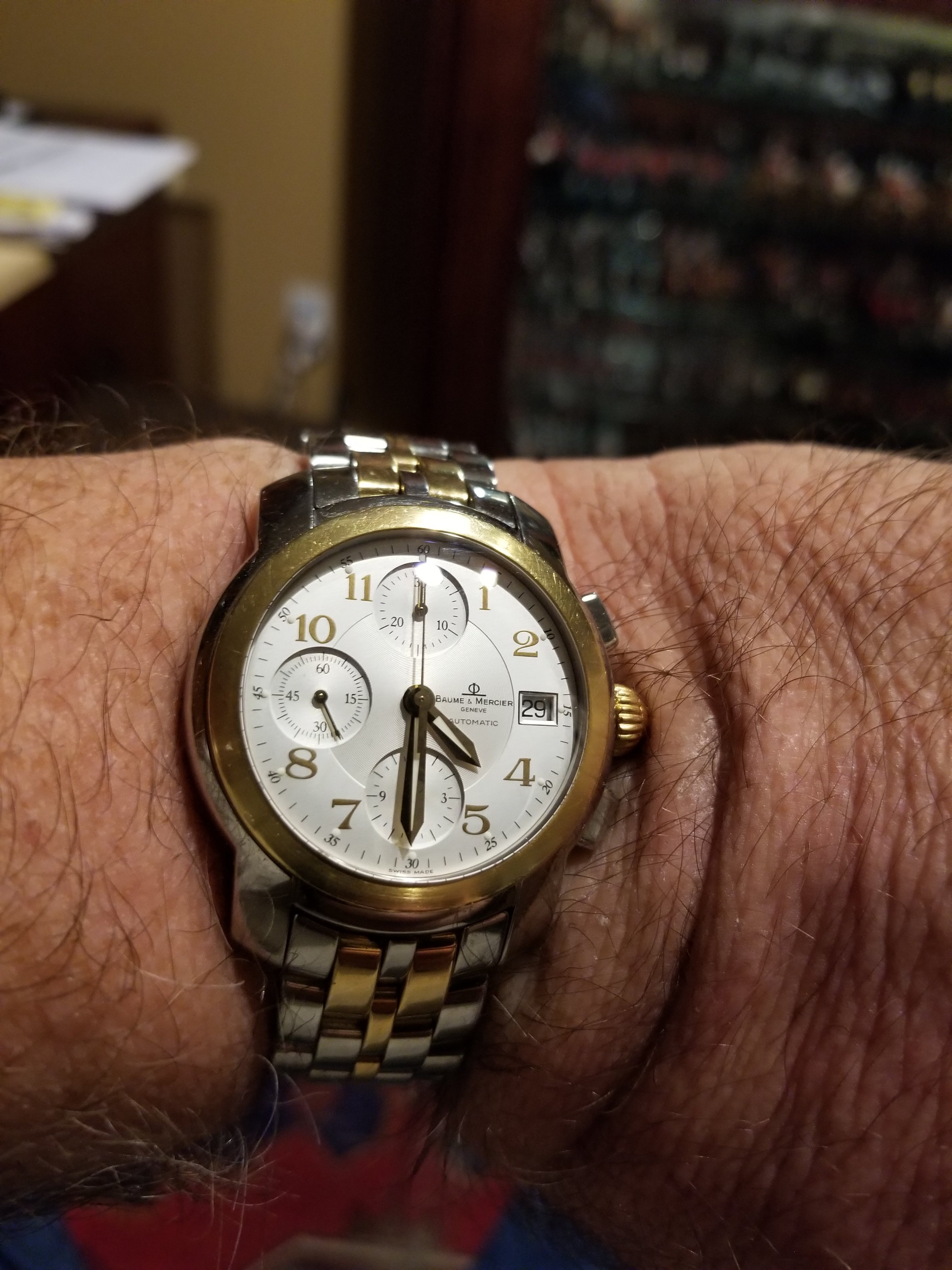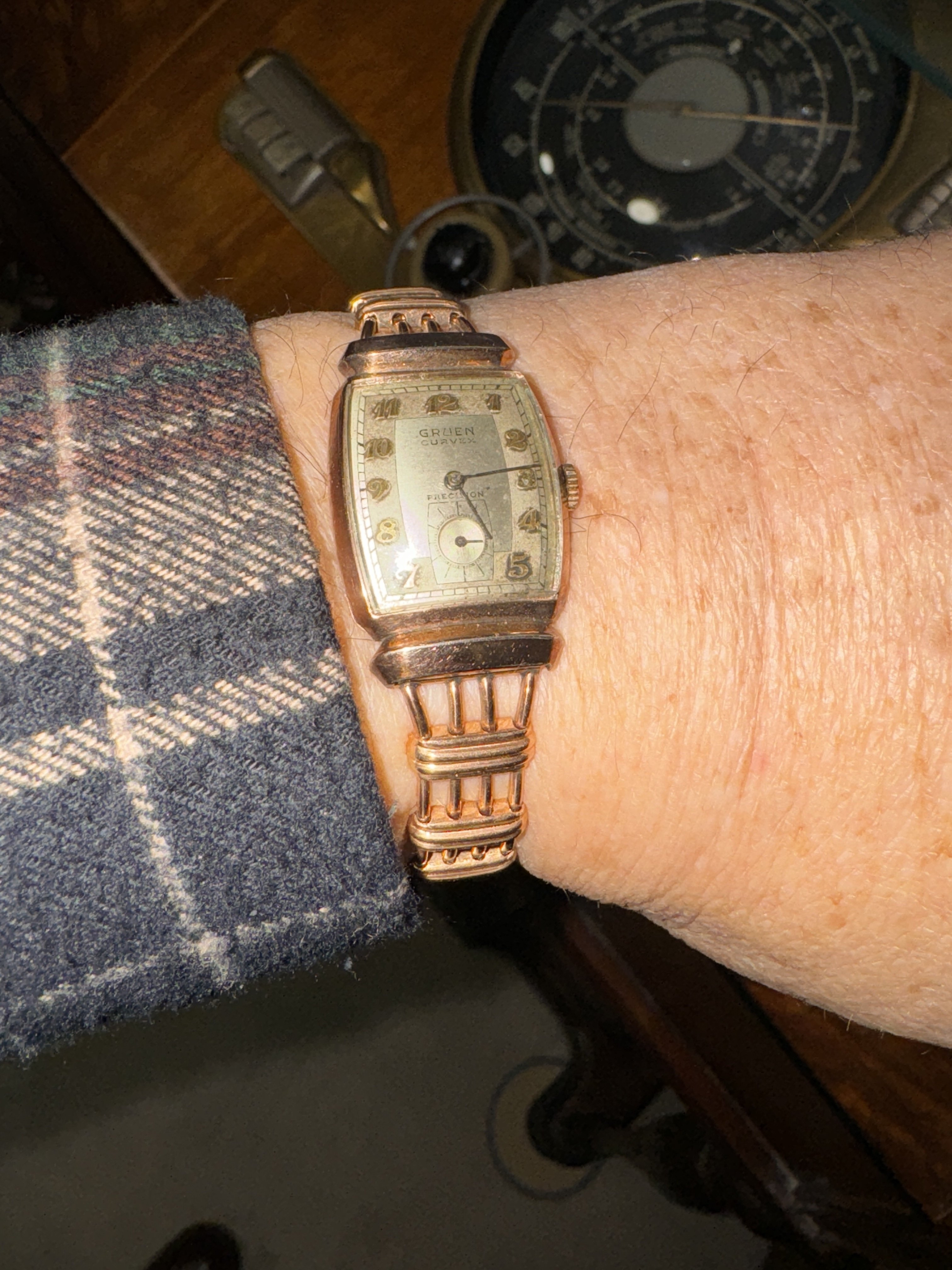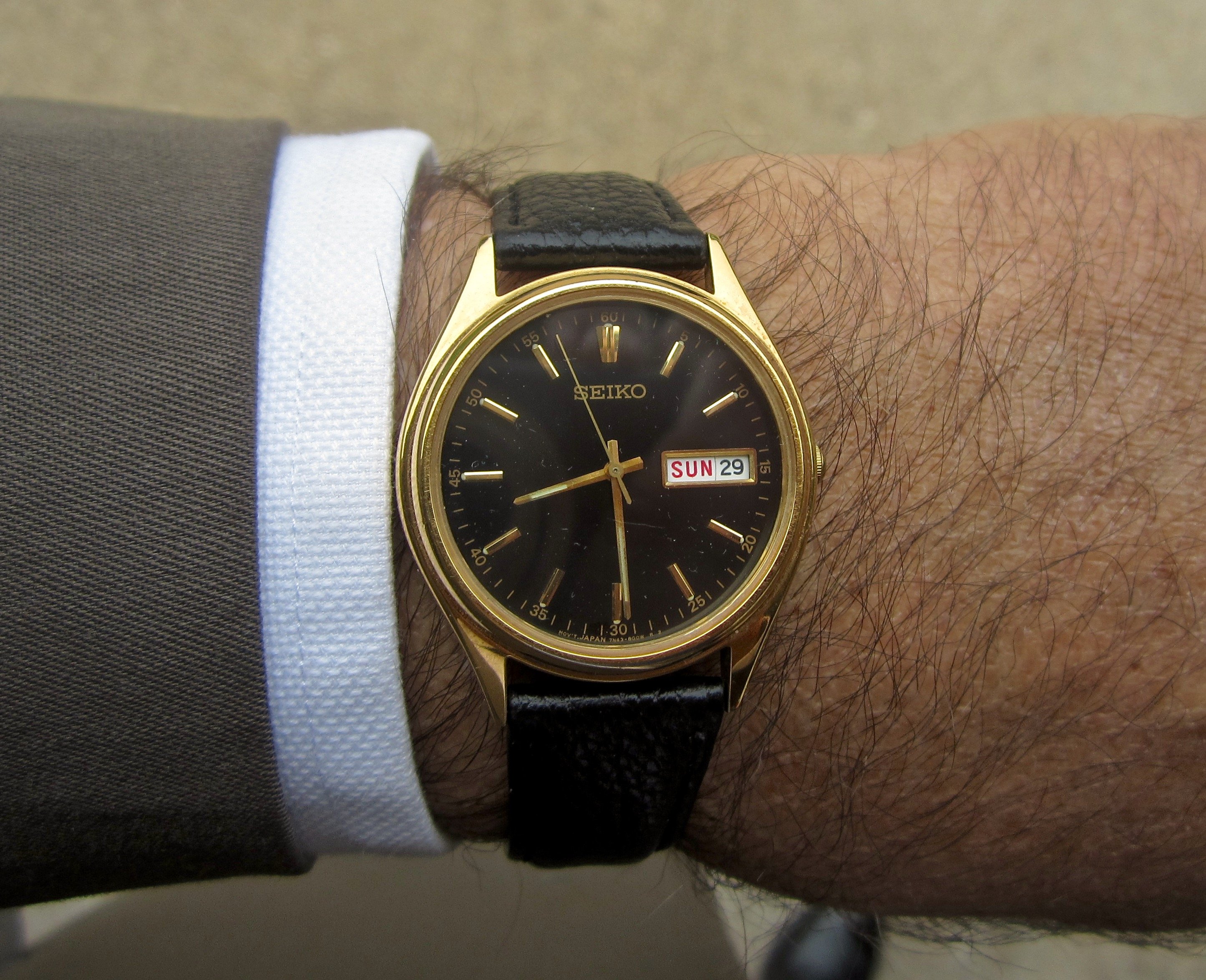 The watch is a gift watch from my wife back in the 1990s who was concerned about a certain vintage watch I was wearing as I boarded a flight to the UK. She wanted to be certain I had a dependable watch. We'd been to the UK the year before and the vintage watch I was wearing on the trip took the opportunity to break while we were traveling in England.