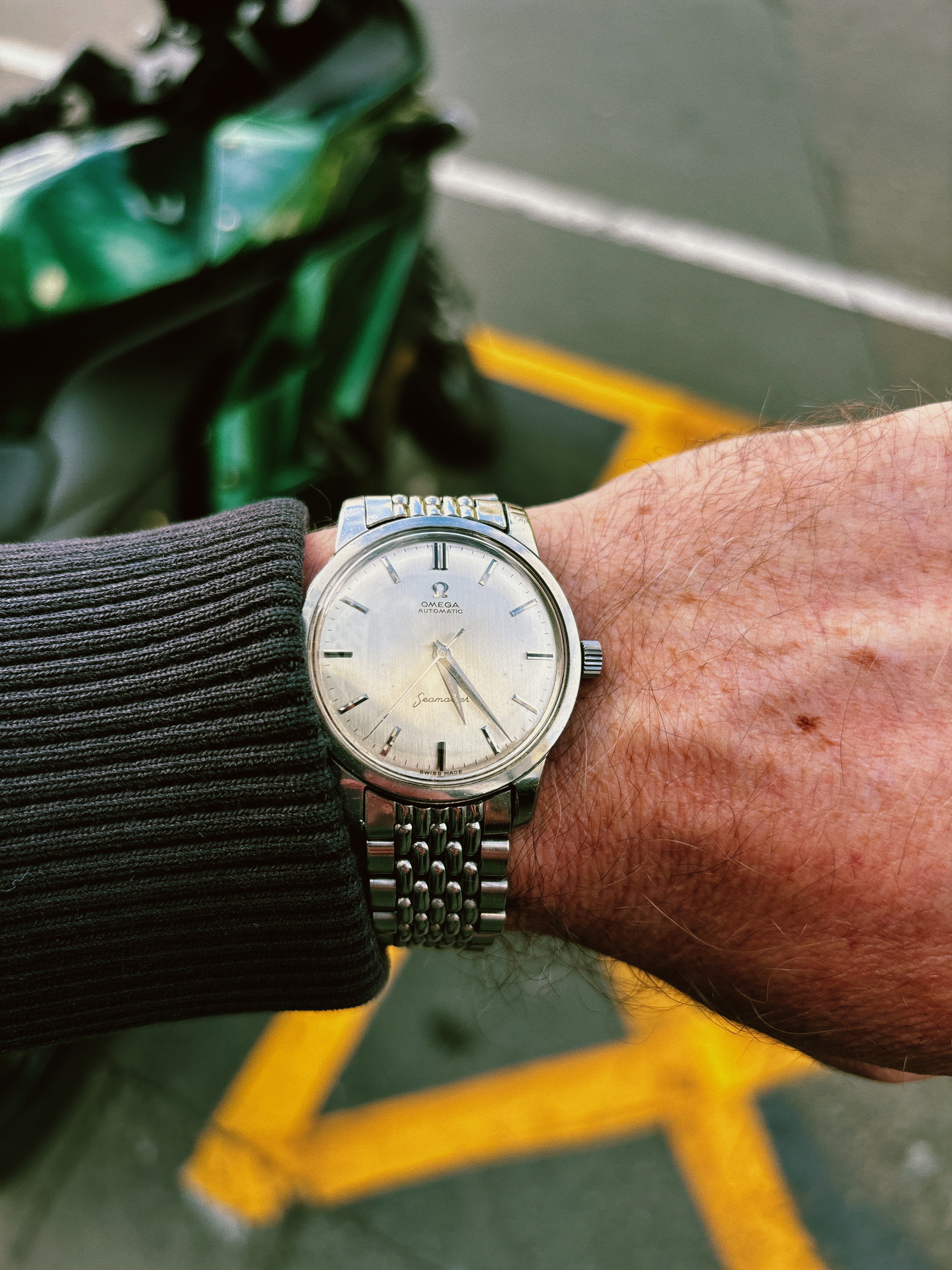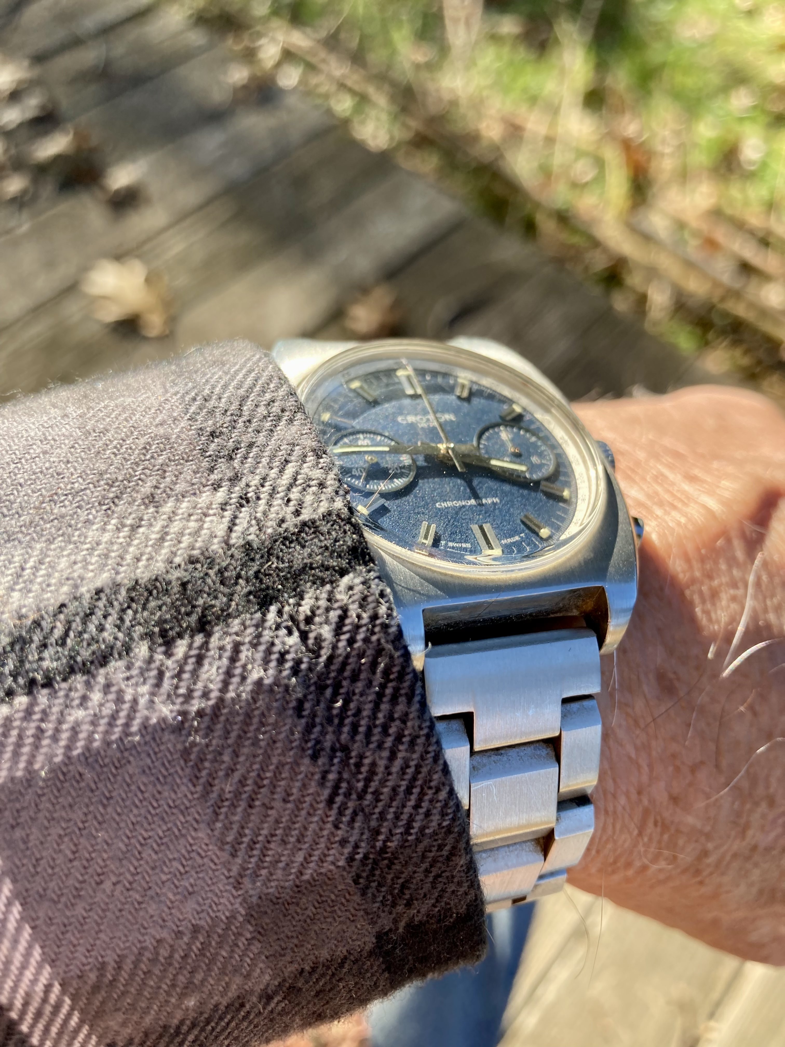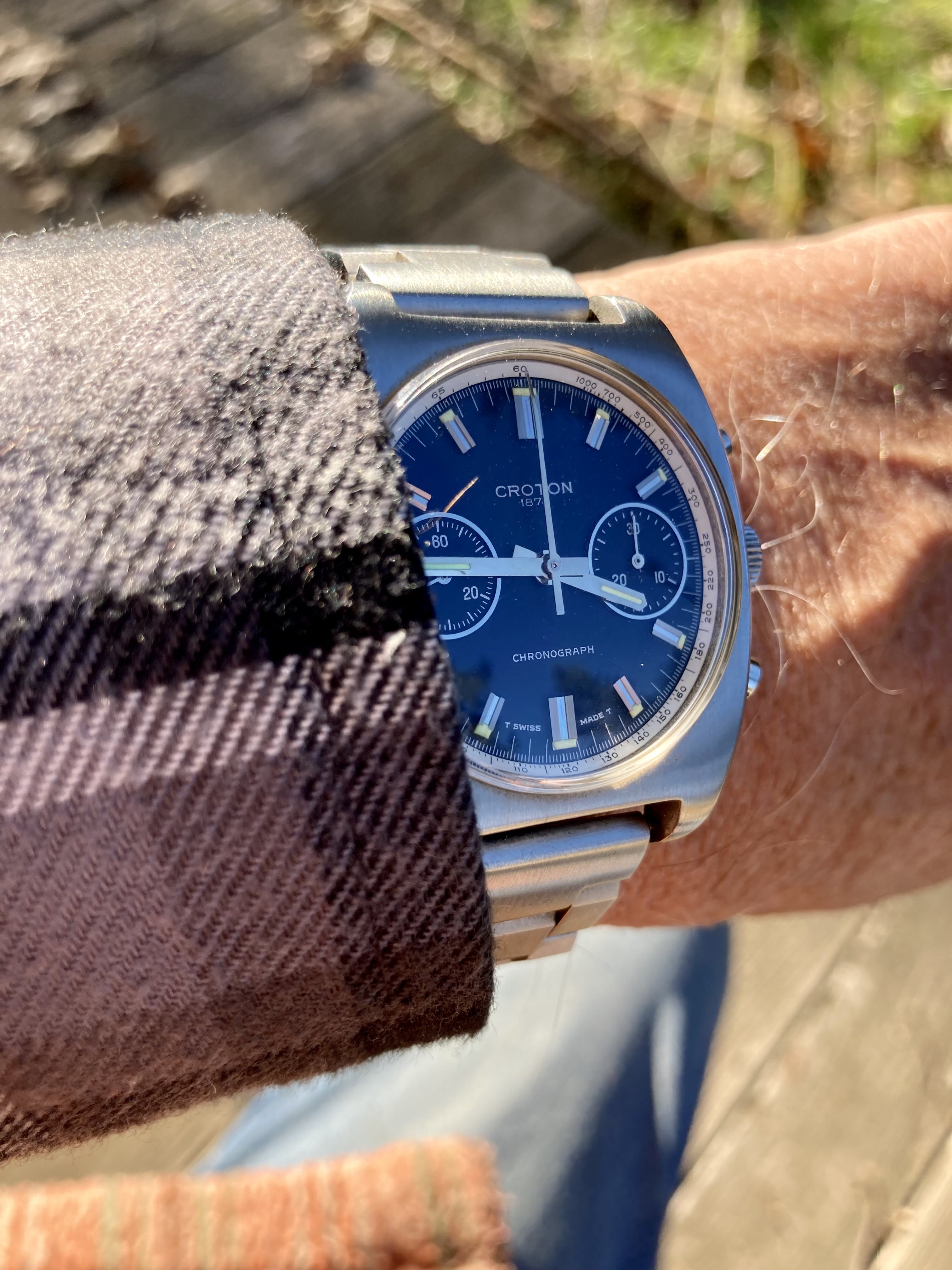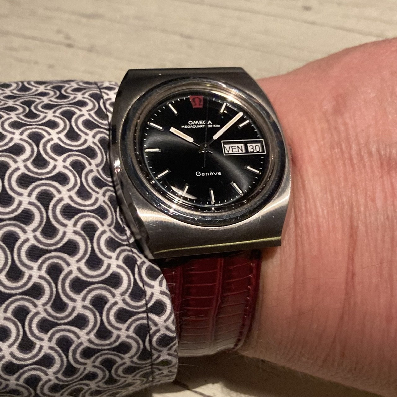 The original burgundy-brownish cordovan with red stitches wasn’t mellowed. Hopefully this 50 gray strap brings more that steel taste yet dressed it down a little.