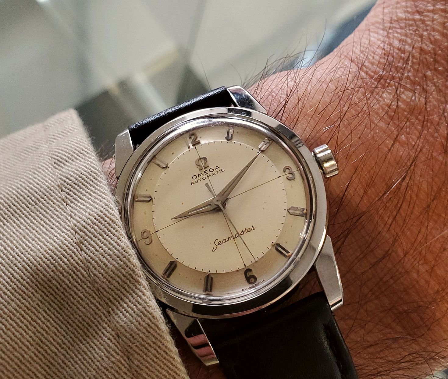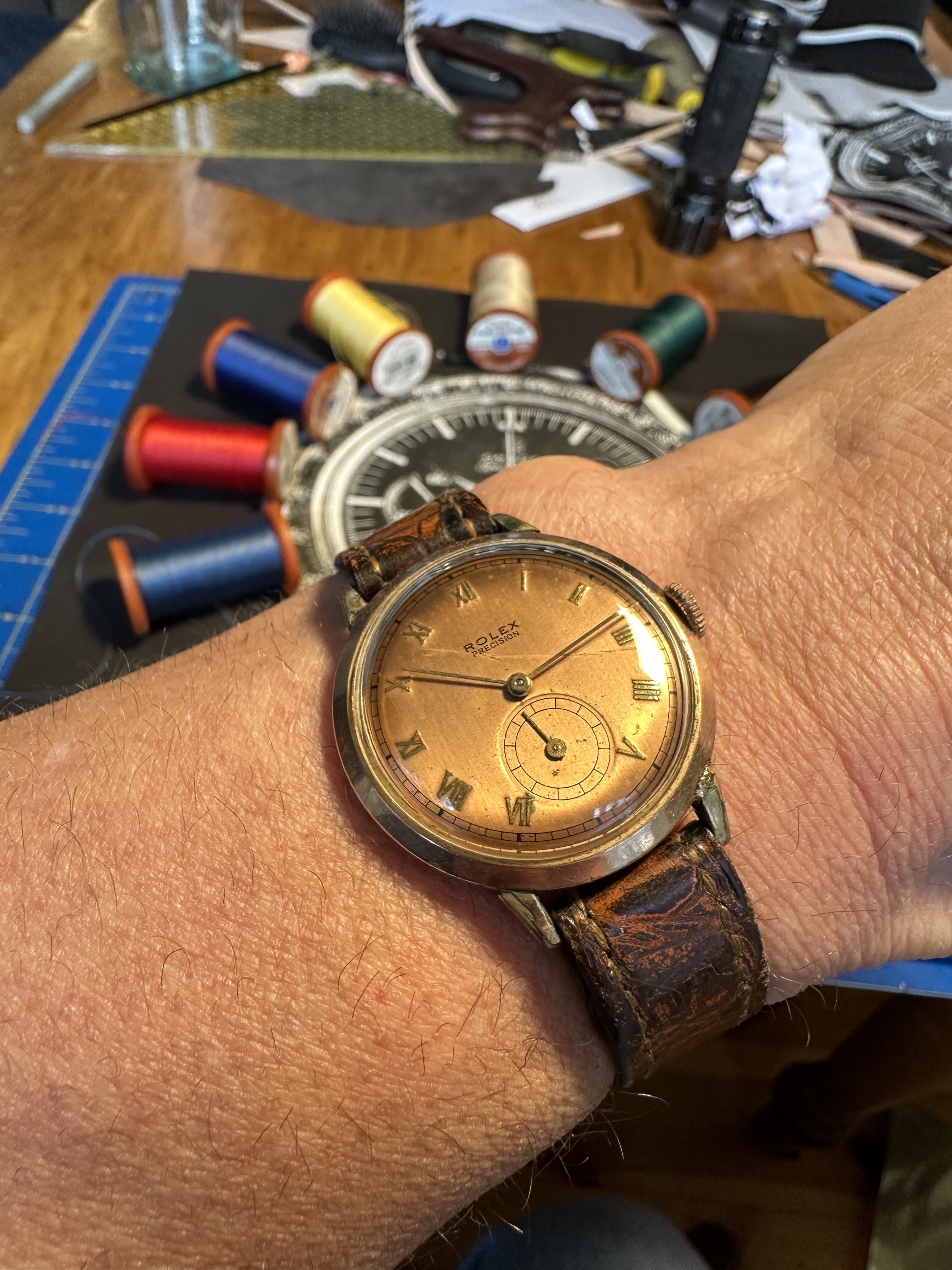 Recently I clumsily smashed the 1944 Omega 2319/2 into a door frame while entering a room. The 30T2 movement doesn't take kindly to such mistreatment so a trip to hospital was indicated. It's back home and all better now, keeping best time ever..