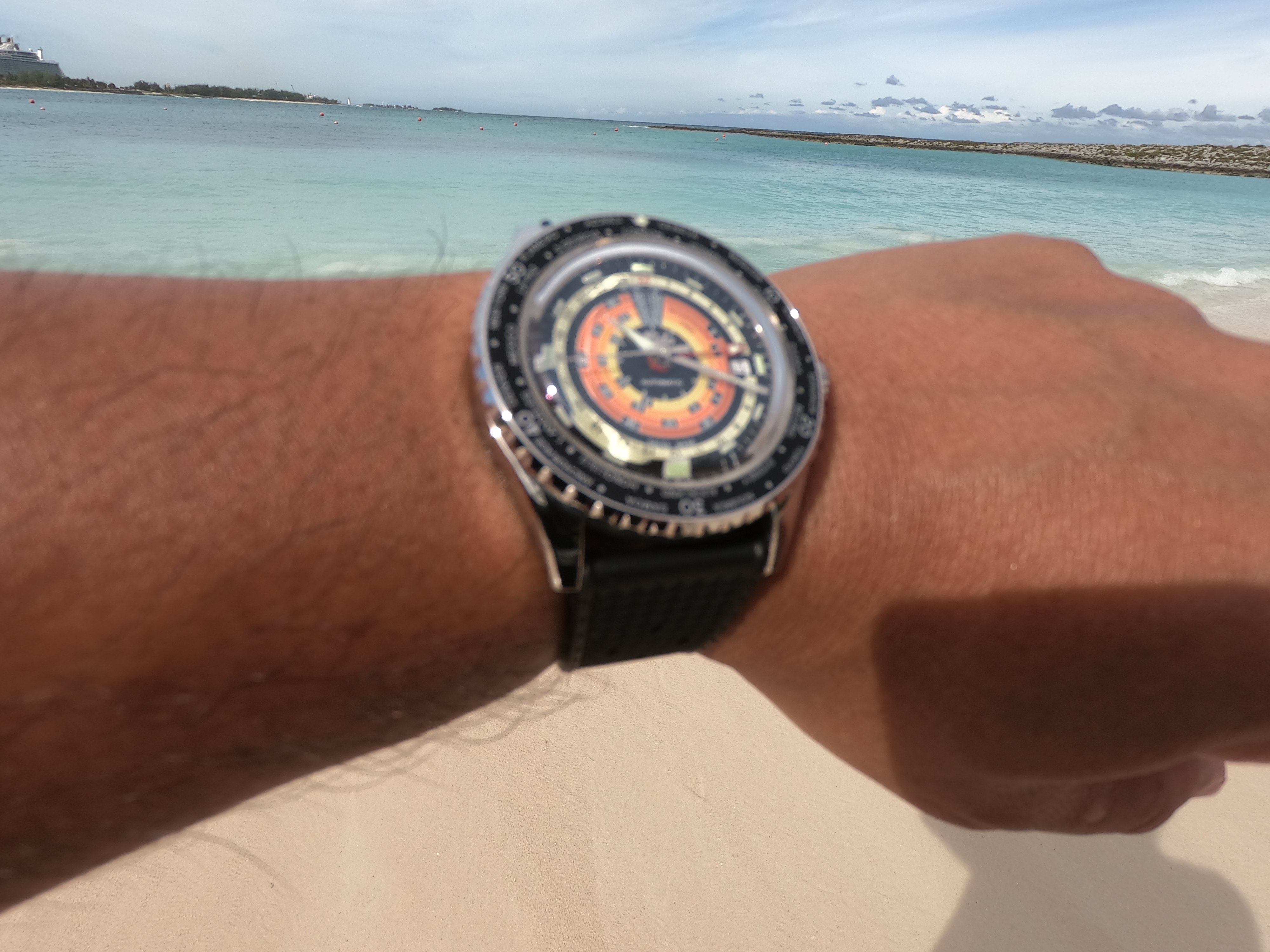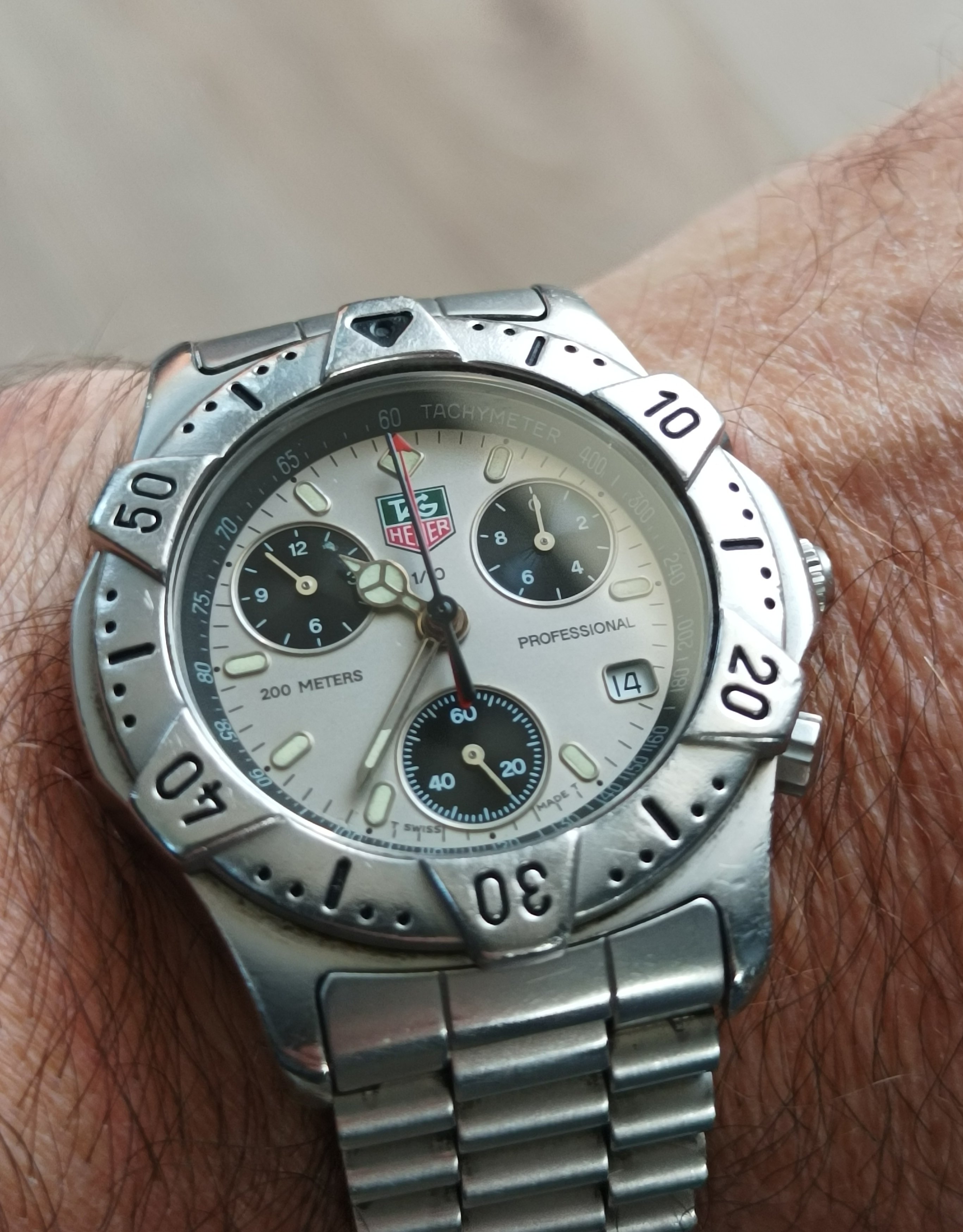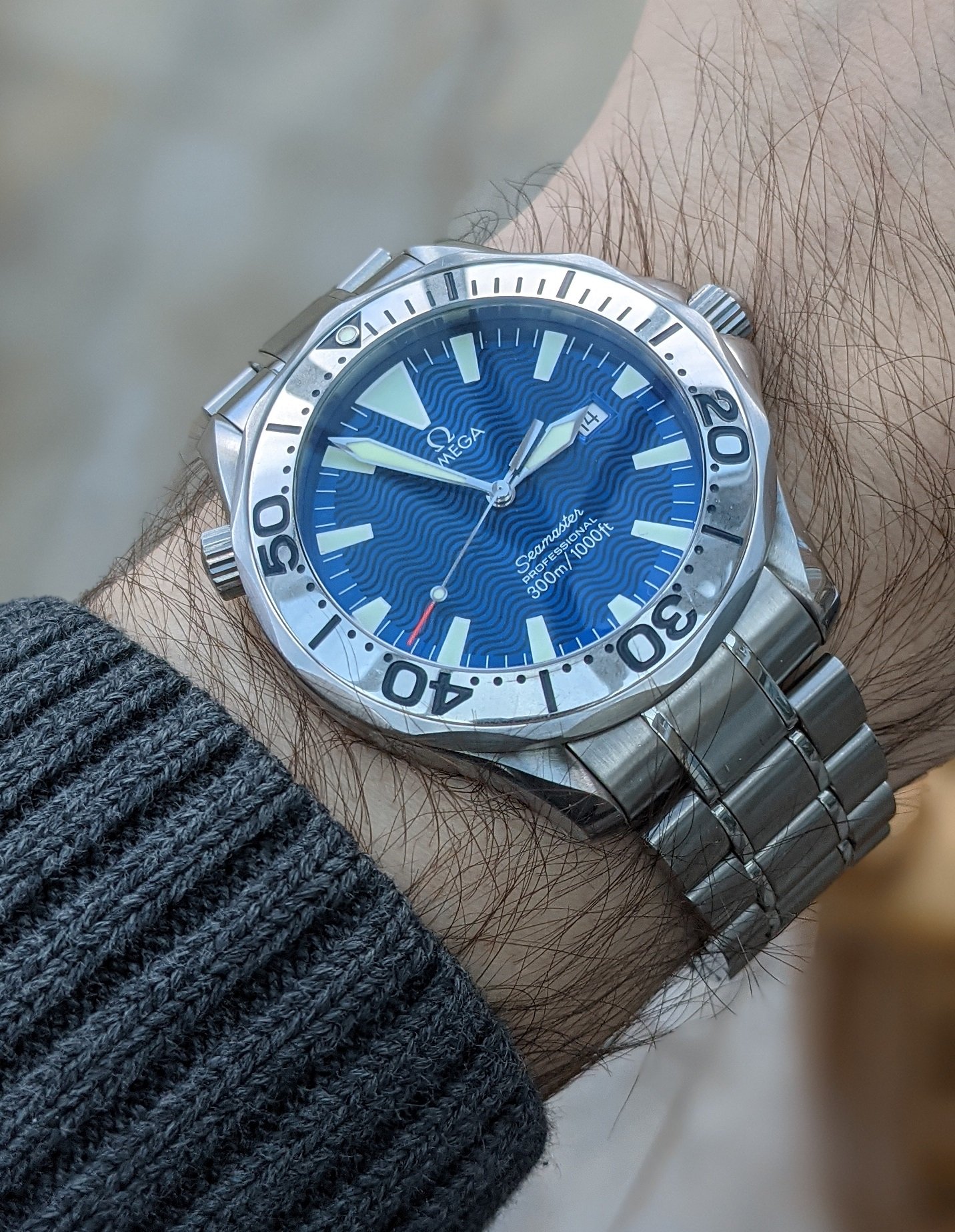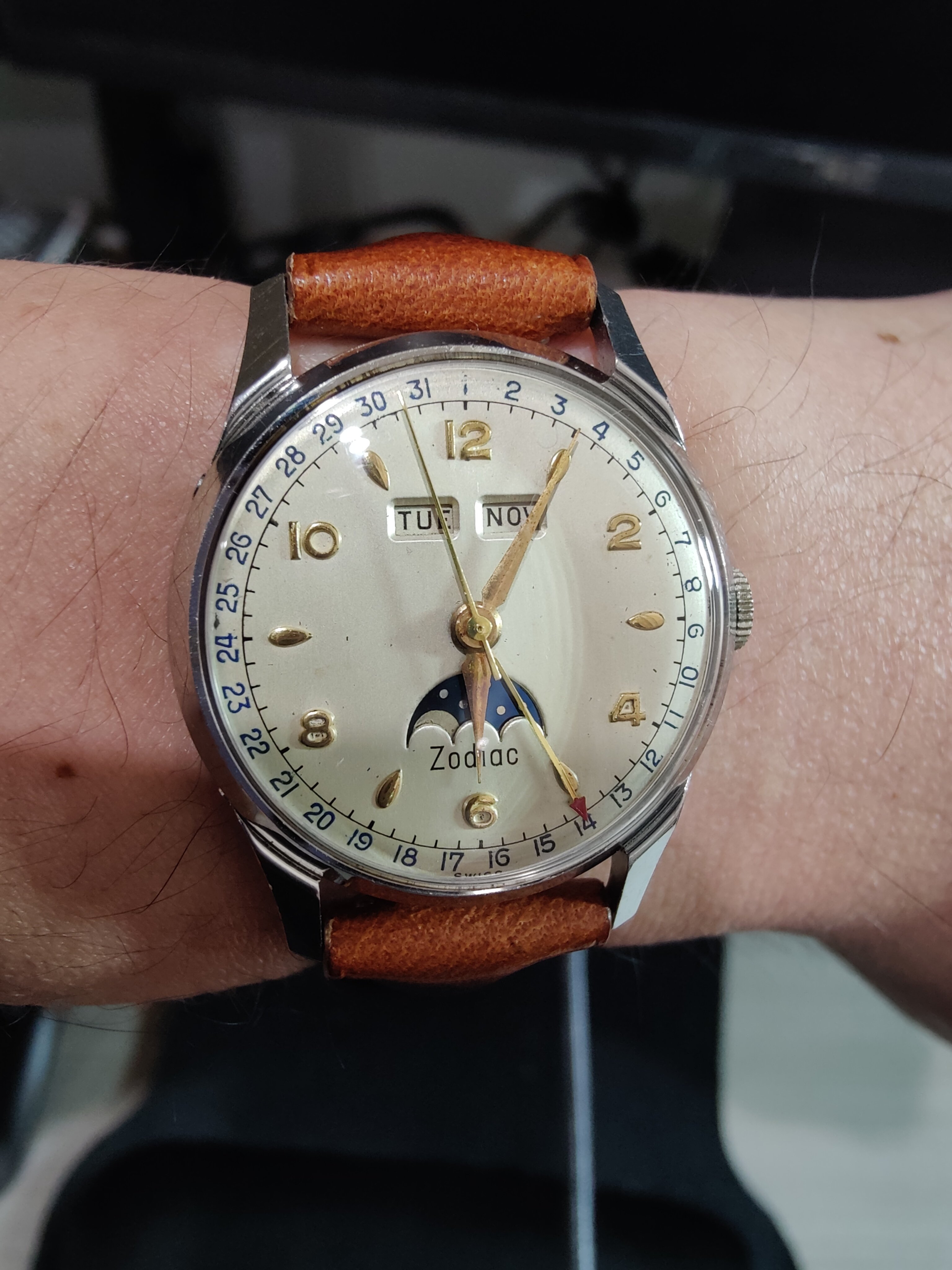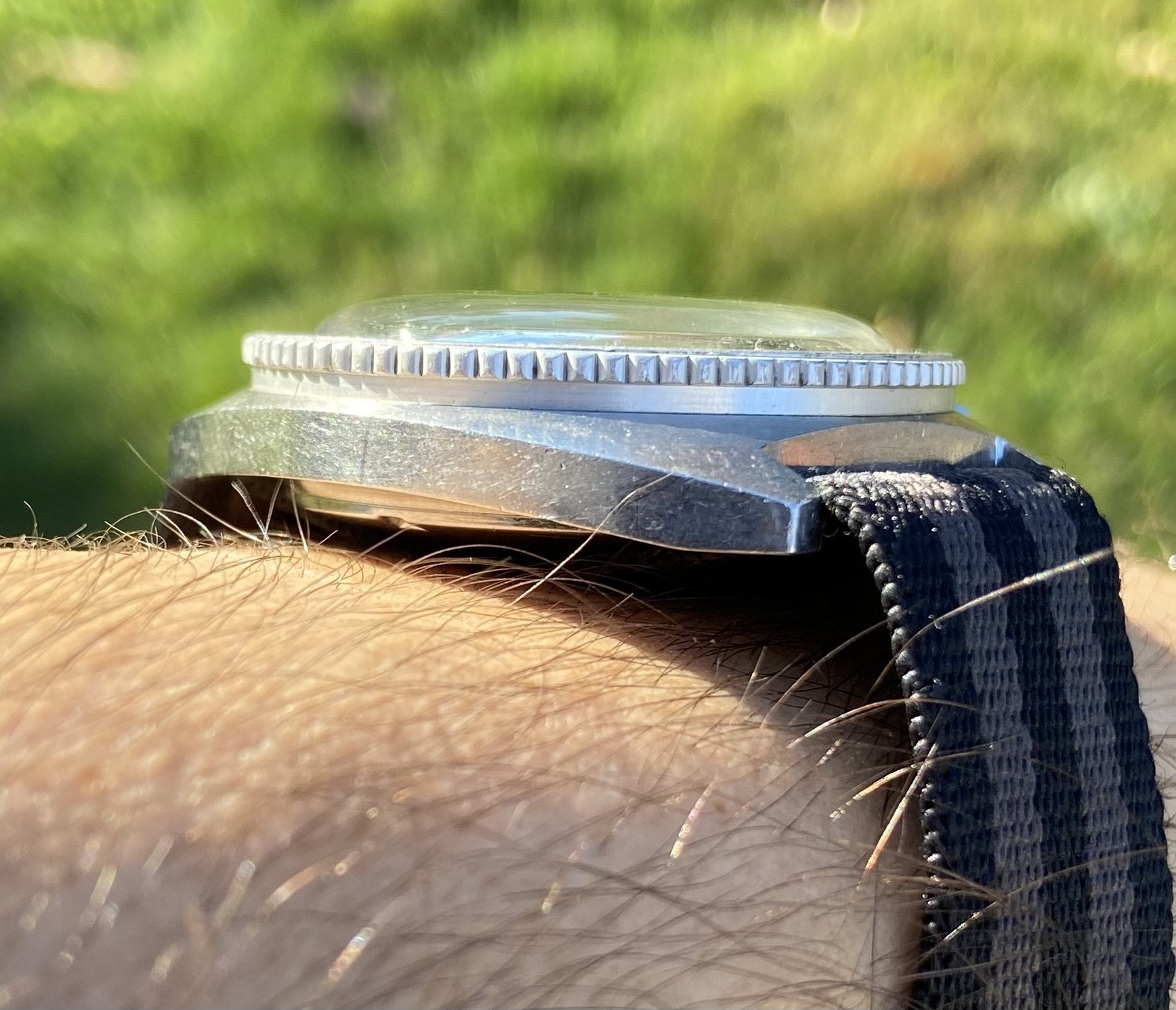 Blue Jean Baby! - 1960's Calendar Auto Orient "21 Diver" - Ref. T-19755 - powered by Orient cal. 670 automatic movement- When new, the bezel would have been black. Today it’s aged to this unbelievably attractive faded blue, which offsets silver dial just beautifully. Perfect blue jeans watch!