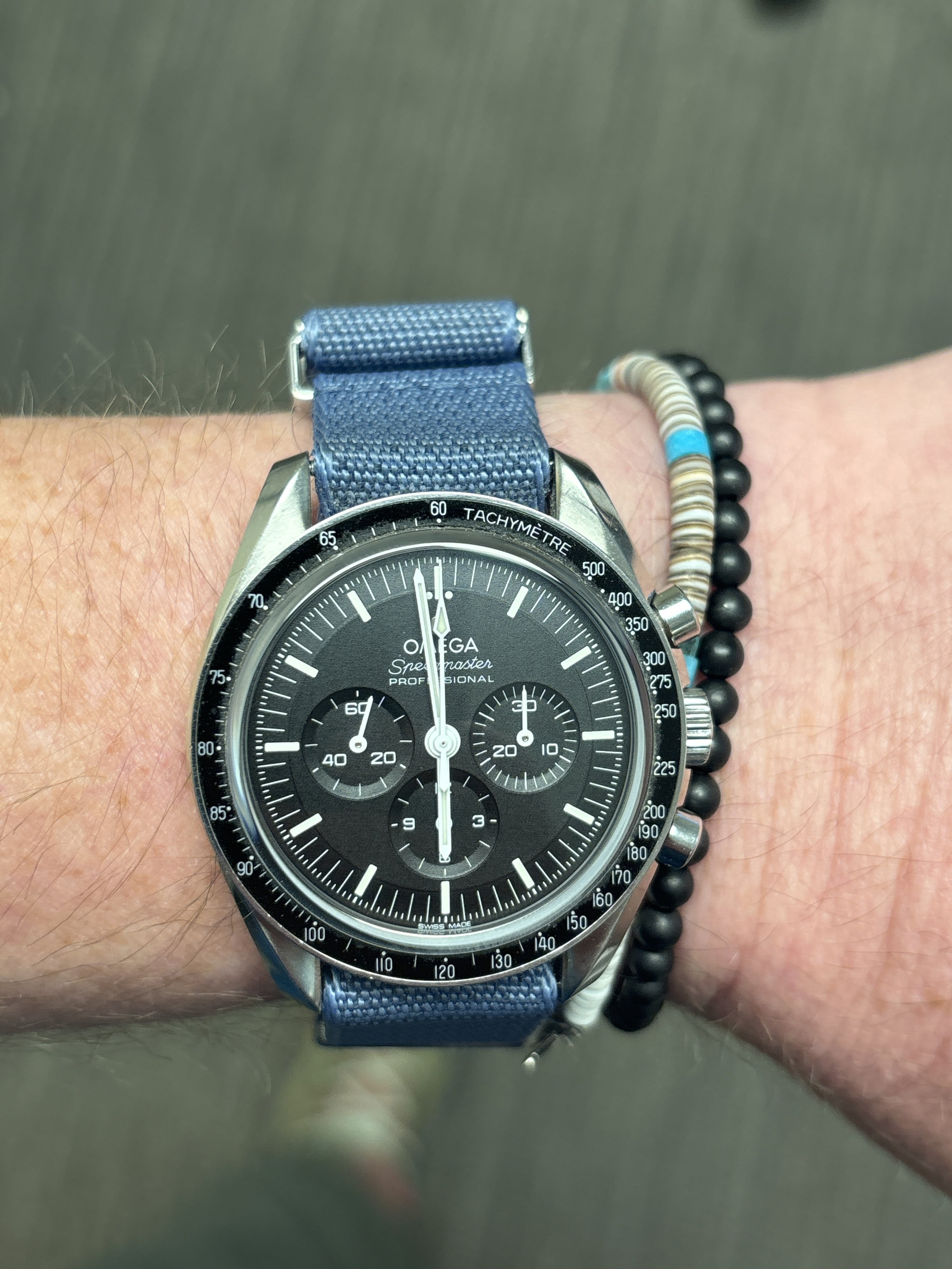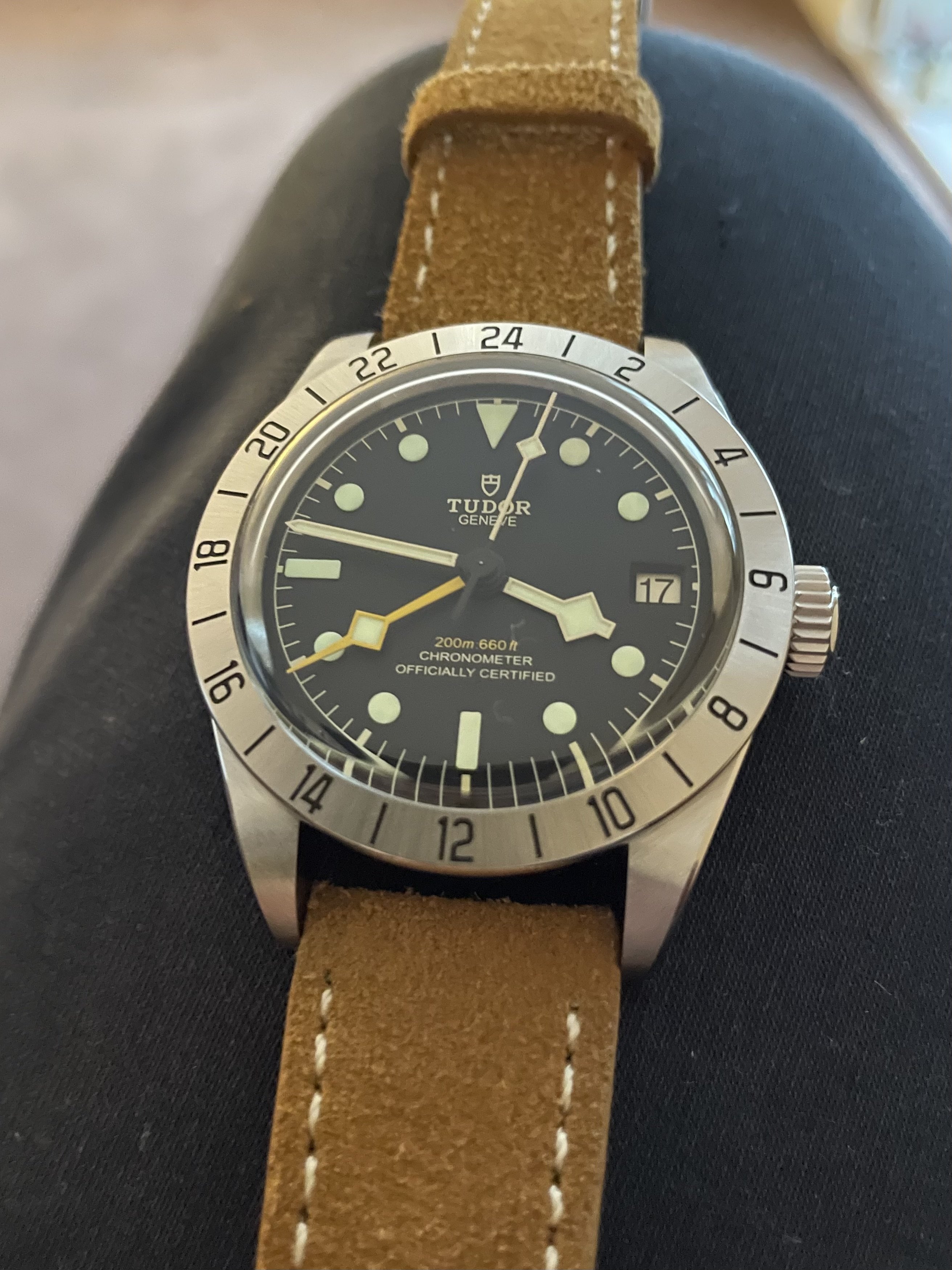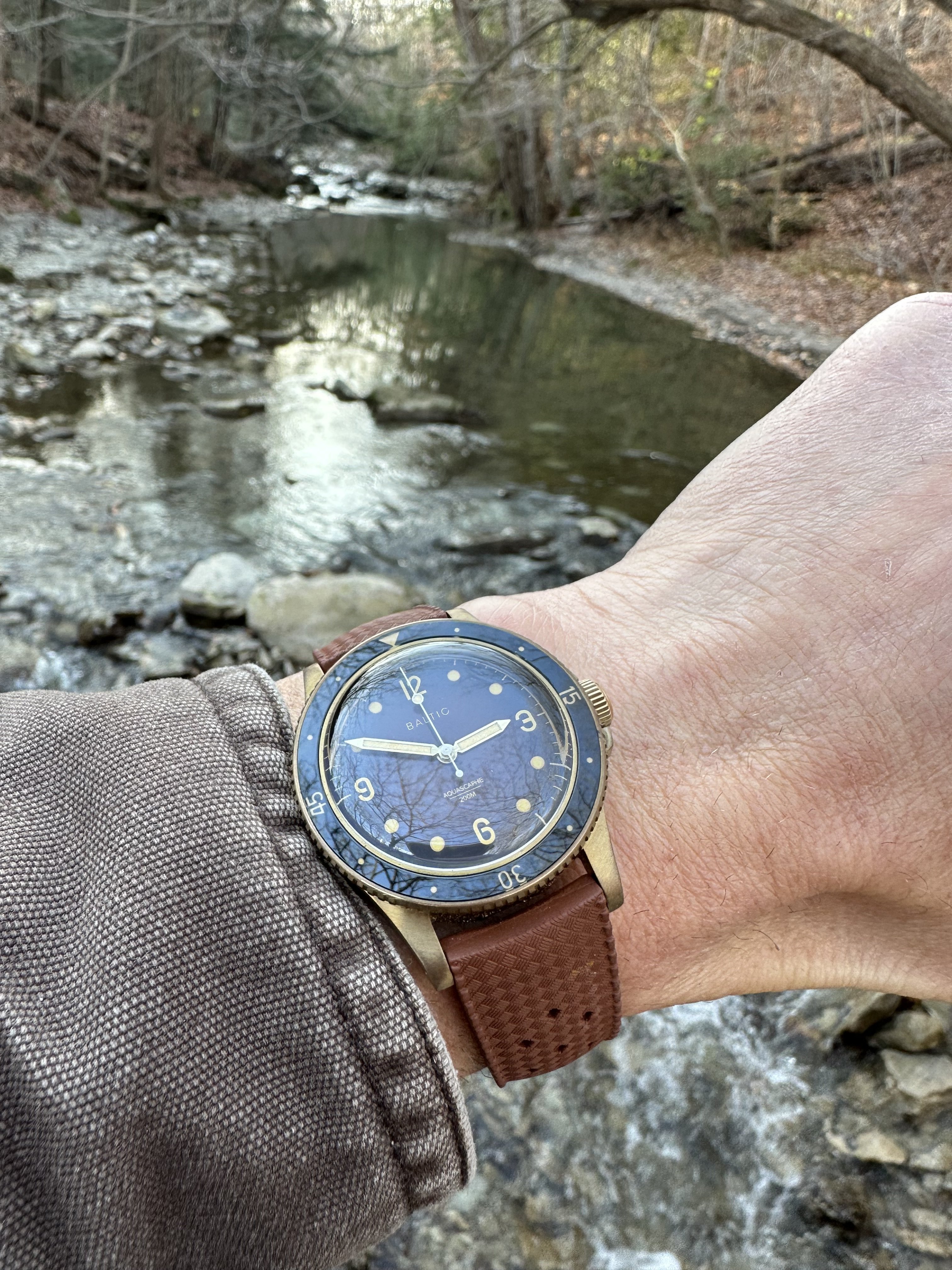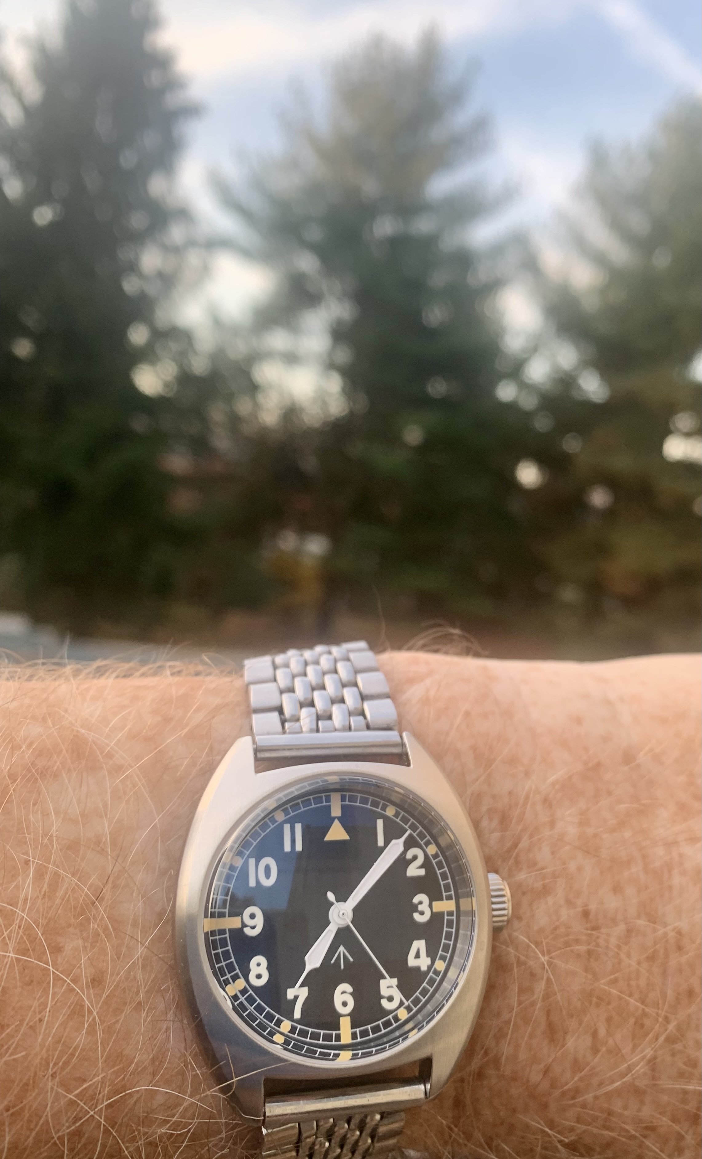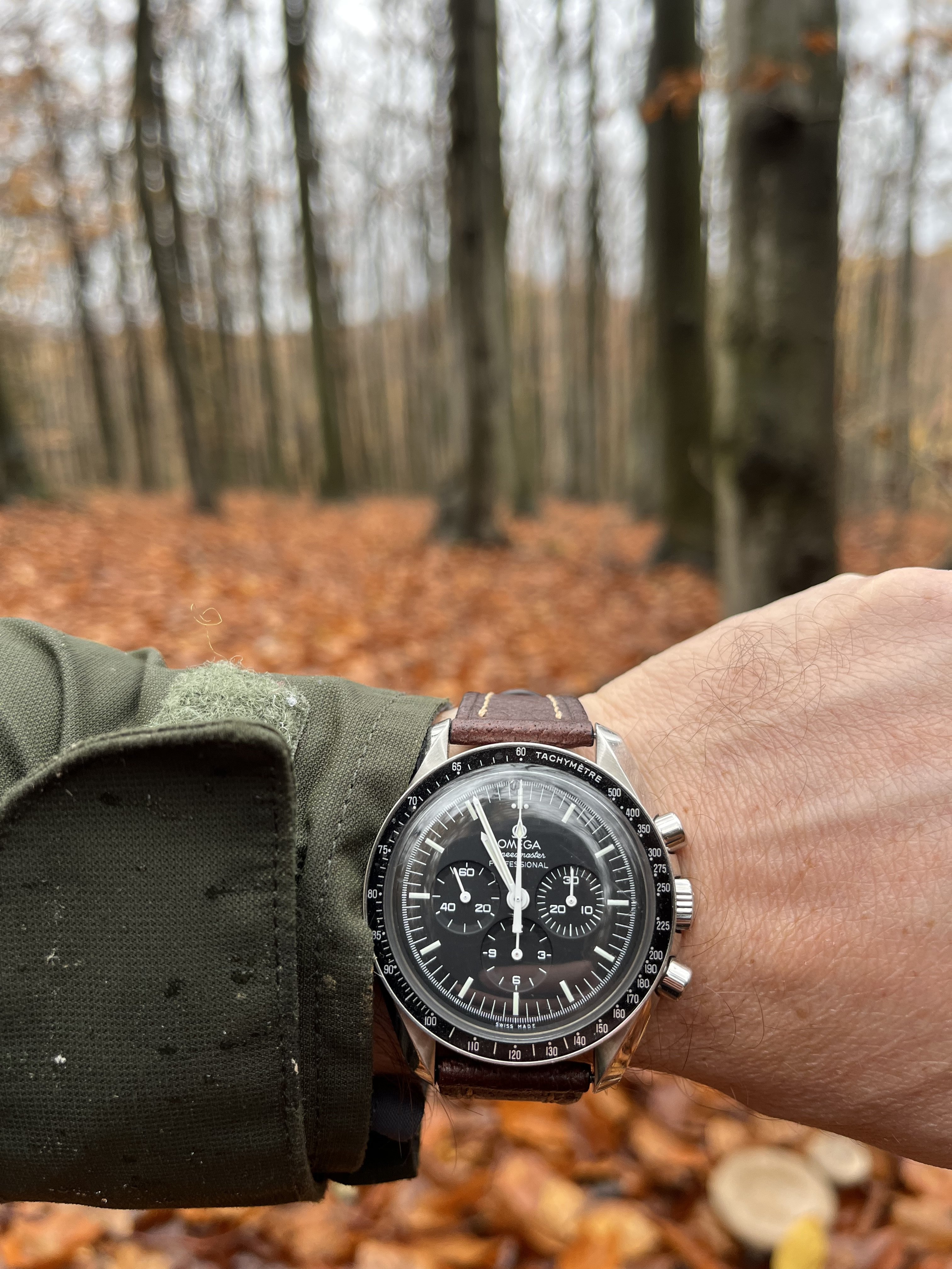 The date is correct, but this one is not on my wrist, today. This one spent about 50 years, slumbering in a lozenge tin of Omega bumper parts, all dismantled. Then I discovered the dial in that same tin! Everything was there, with evidence of rust on a few parts, but no case! I resurrected it. I posted it in the message board, mentioning I didn’t have a case. Several months later, @Tritium , a collector from Madrid PMed me that he had an extra NOS steel case! Voila! Here is the result.
