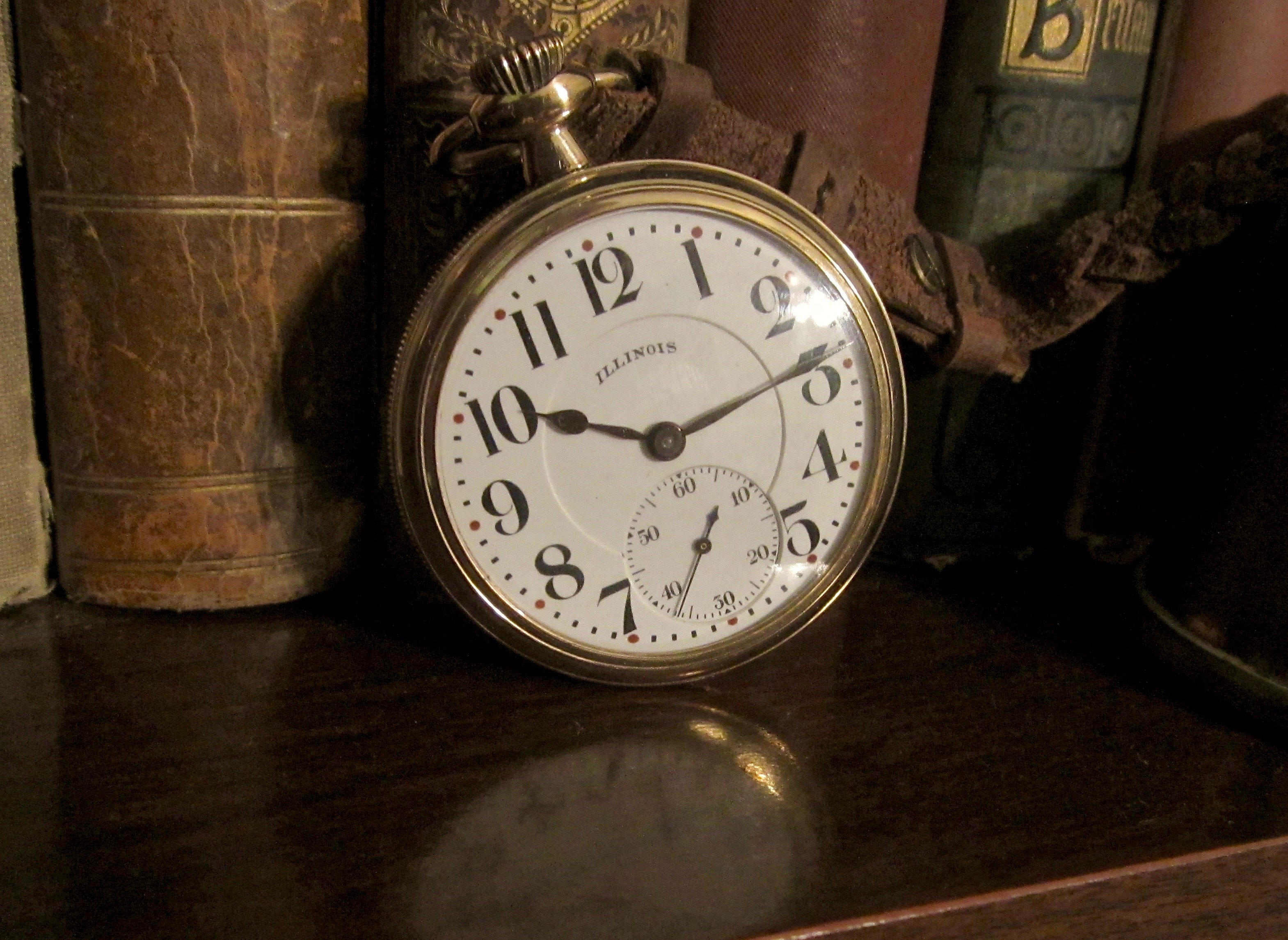 Pocket watch Friday here with a 1920 Illinois 21-jewel Capitol watch with handy pendent set feature and neato "red dot" dial. Going into town to visit with a lady about the old Texas Electric Railway interurban which used to run through here and this seemed a logical choice.
