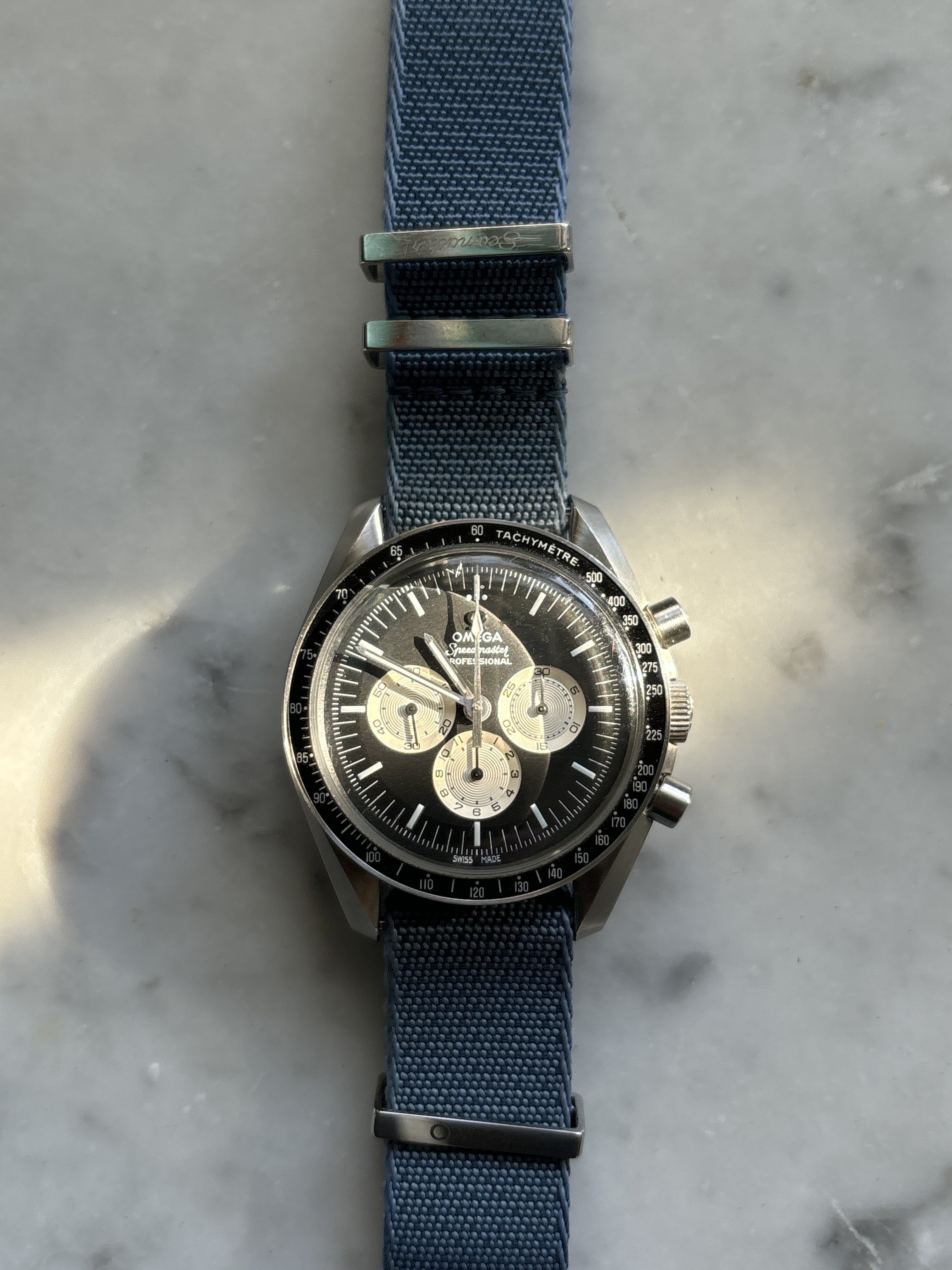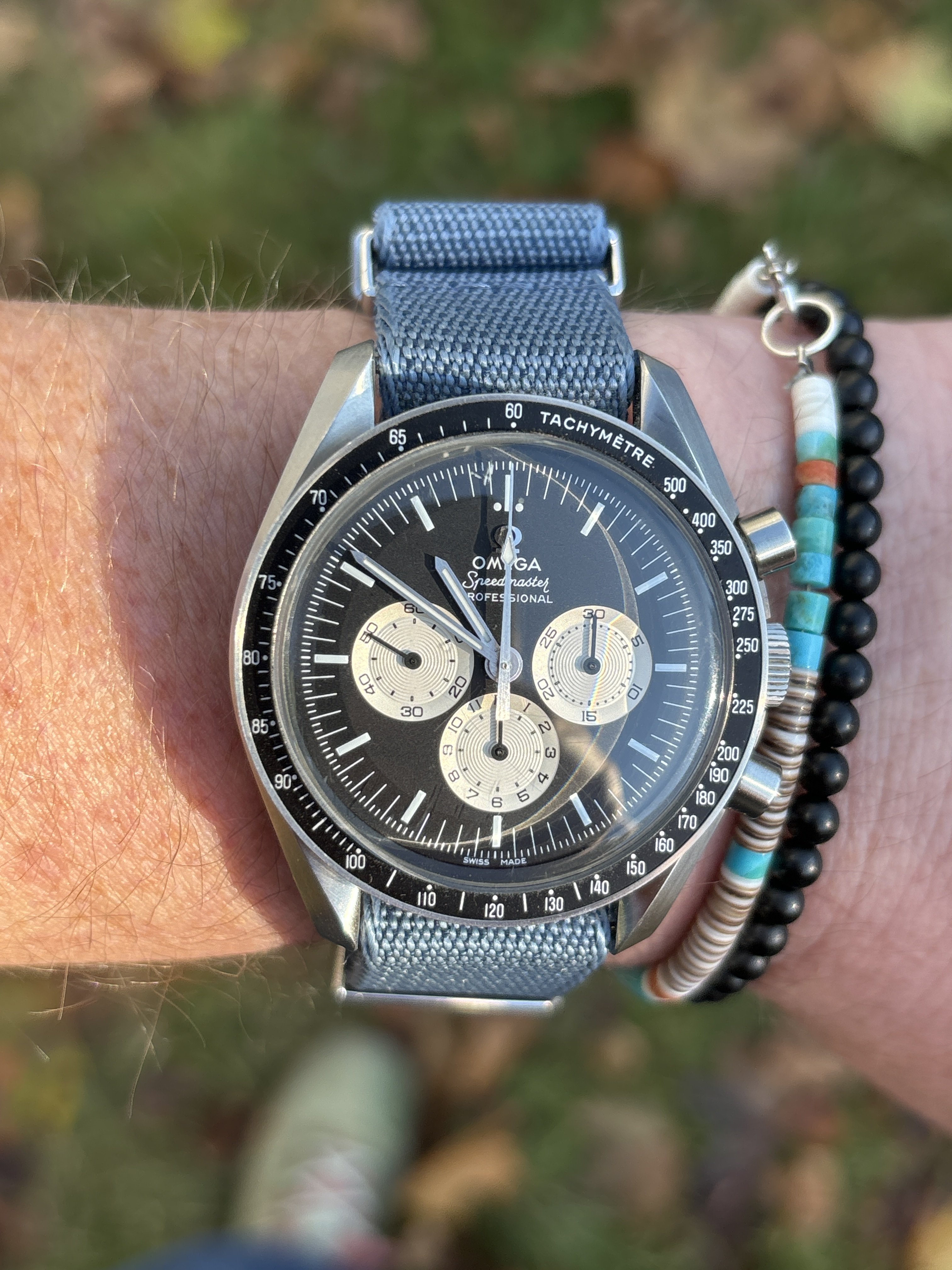 Good Morning, Forum! I survived roller skating intact; no new pain!! We refer to some of our favorite watches as ‘strap-monsters’; I’ve come to view this Omega nato as a ‘watch-monster’. It’s part of the Seamaster 75th Celebration, and the keeper on the medial side is marked Seamaster. Currently on the ST1, but I love it on the Gemini 4 and 3861. Have awesome days/nights Friends!