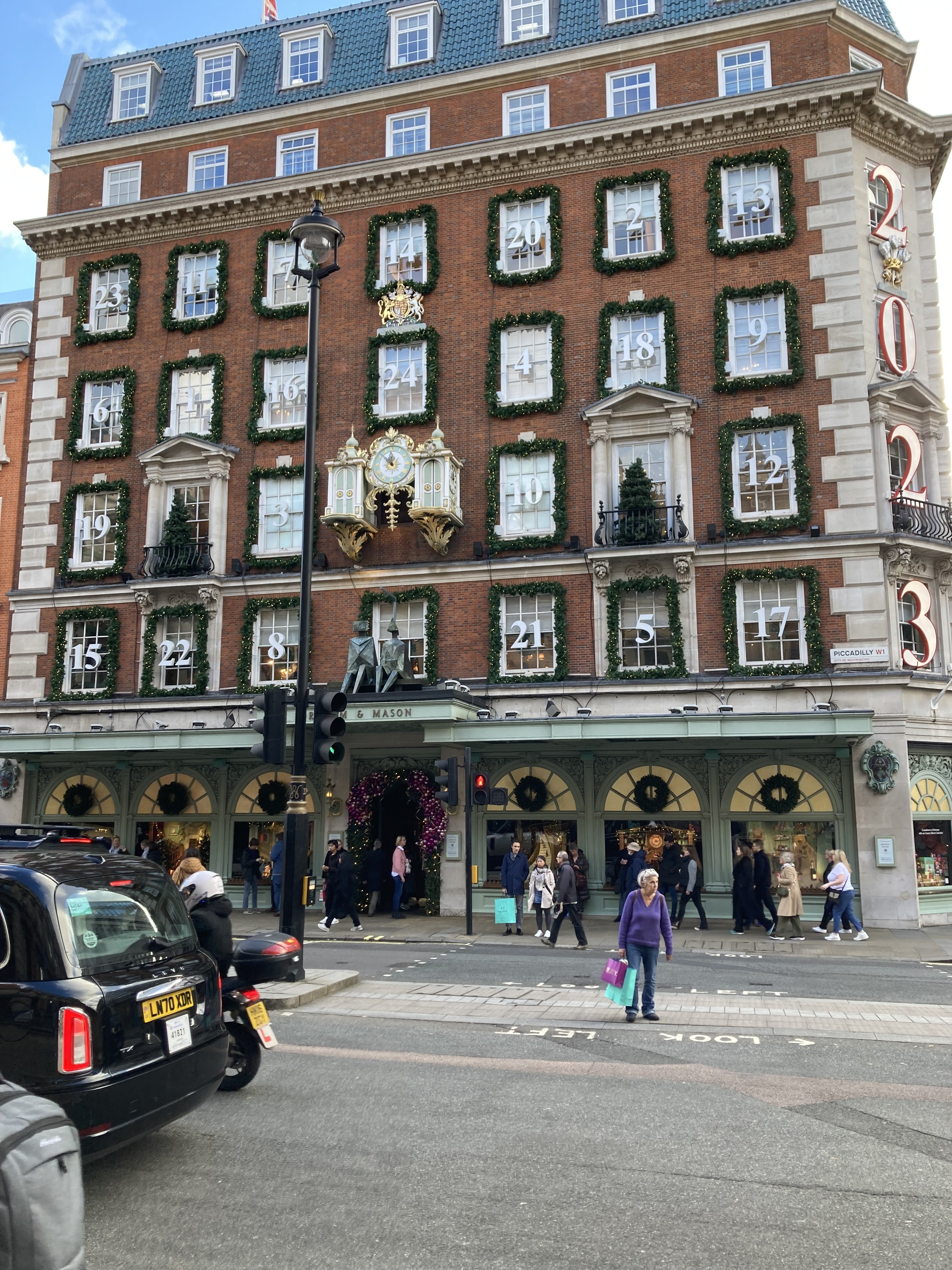….., which is across the road from Fortnum & Mason (with the windows numbered for a Christmas advent calendar …..