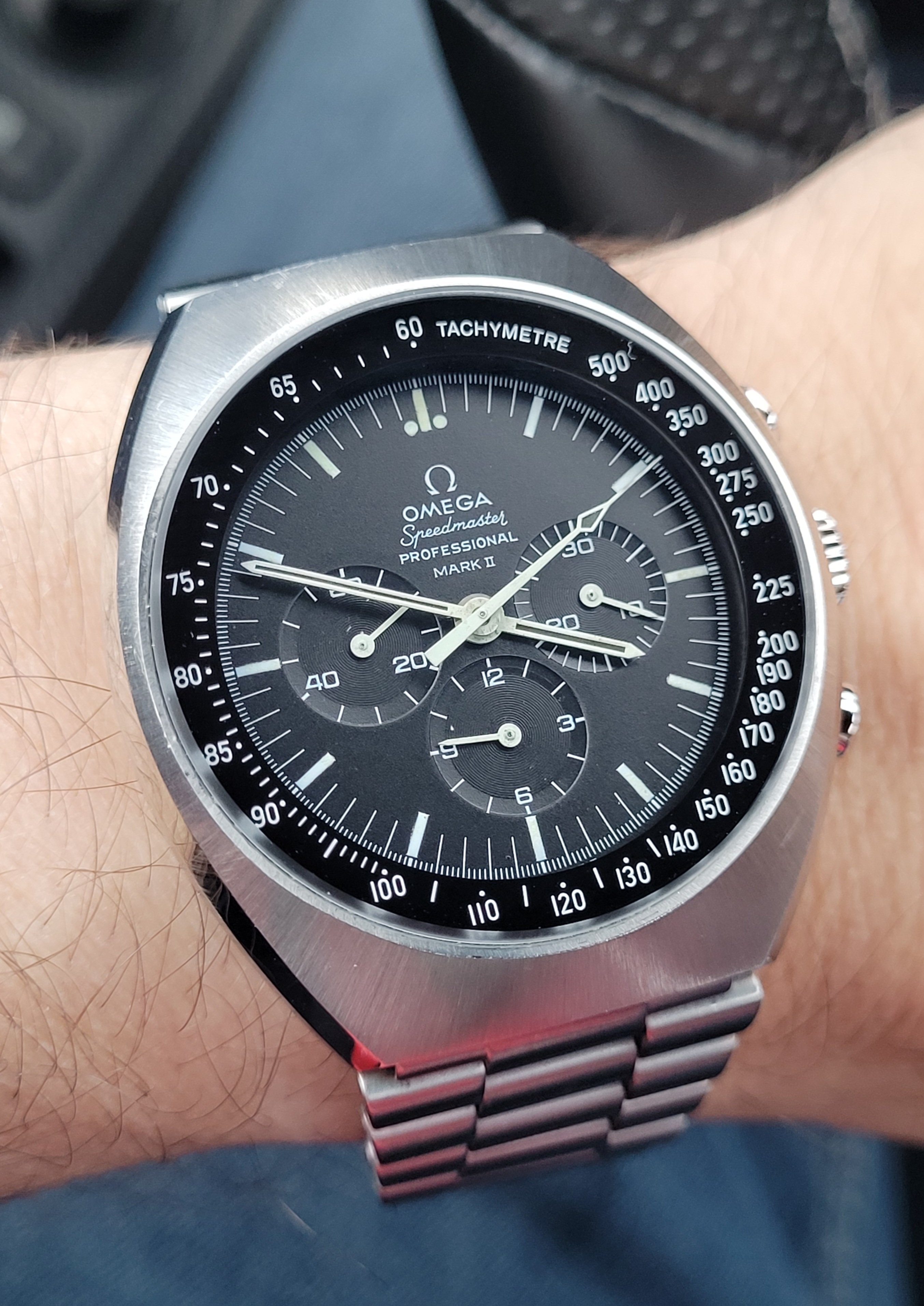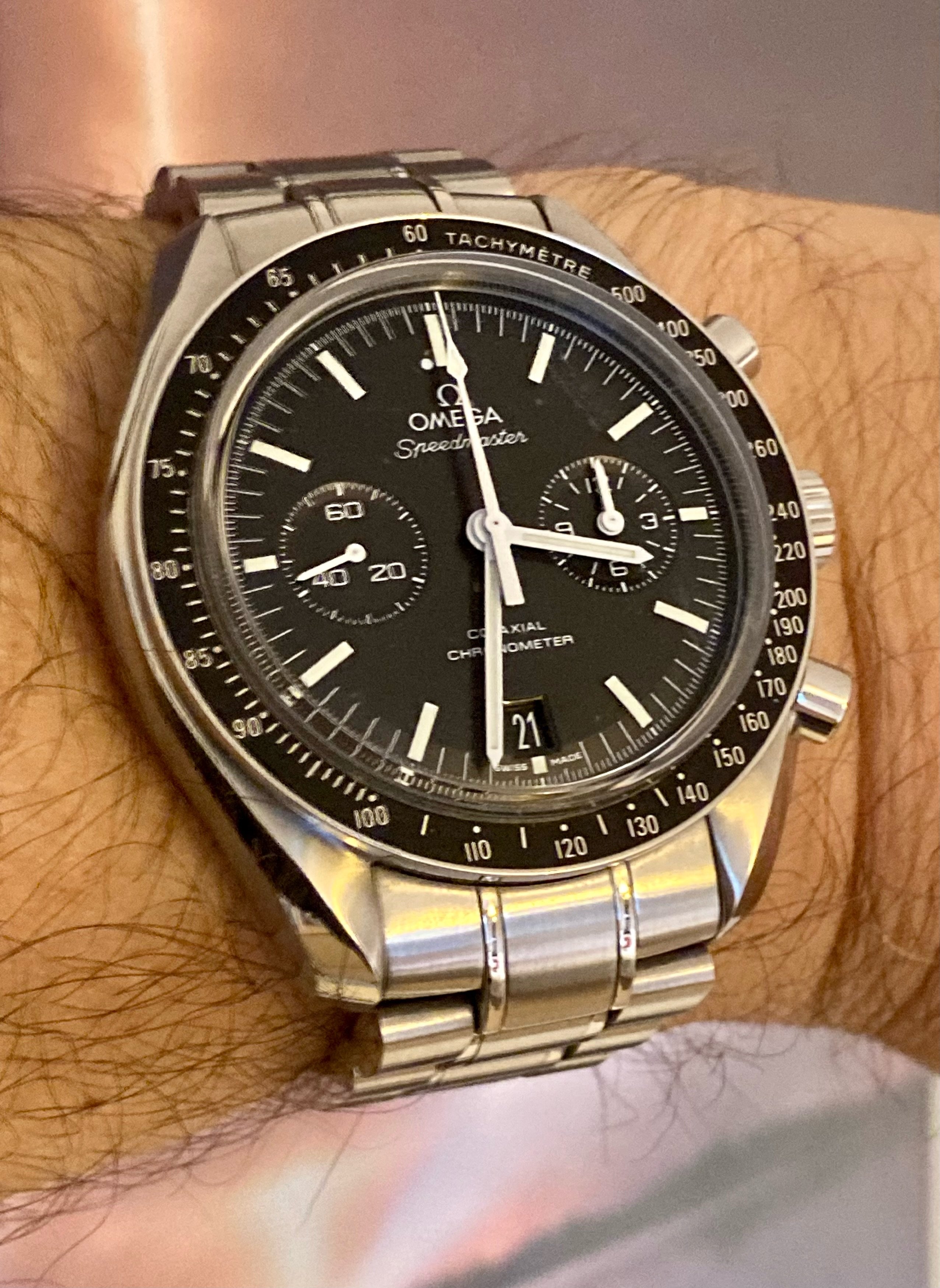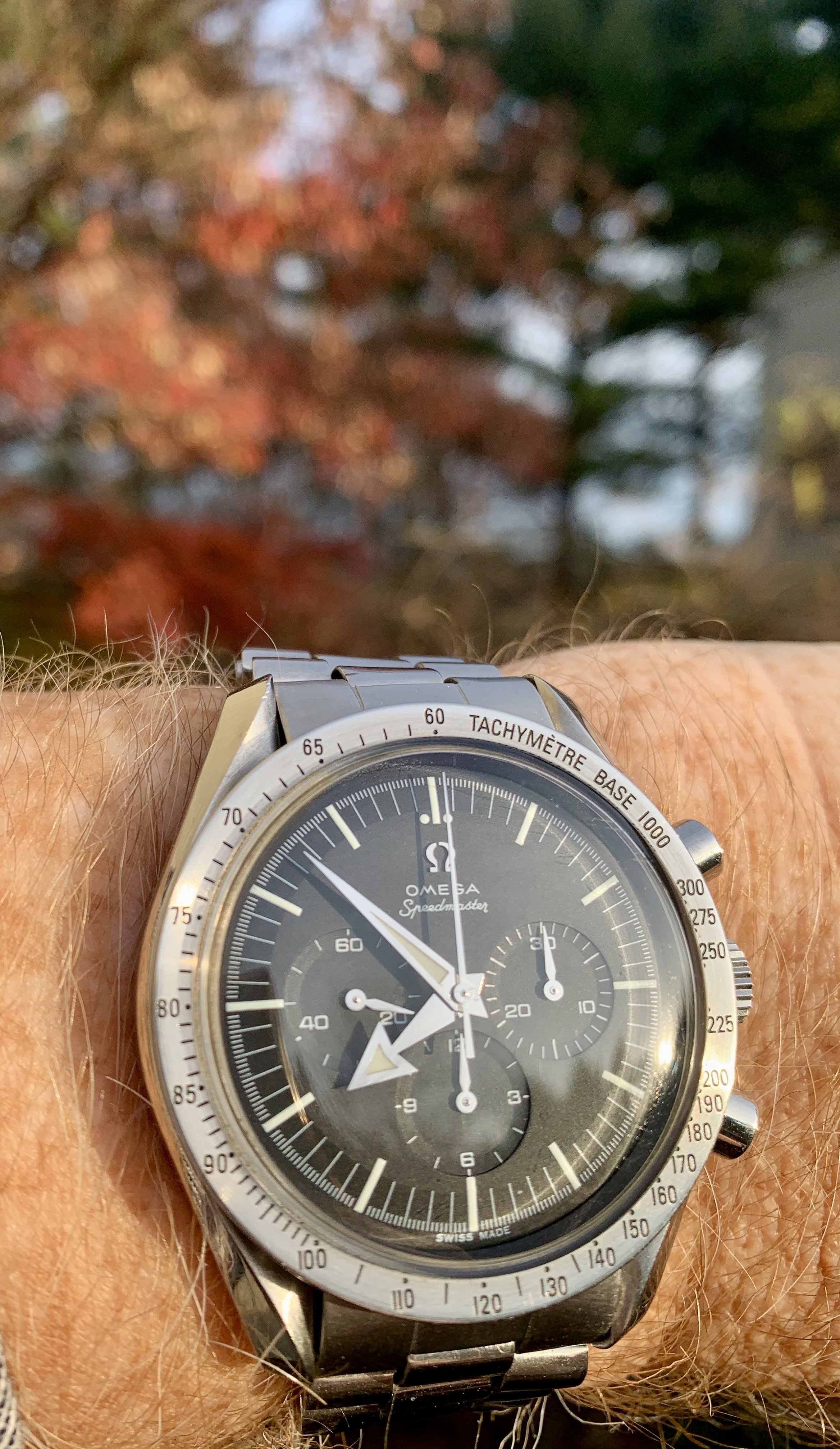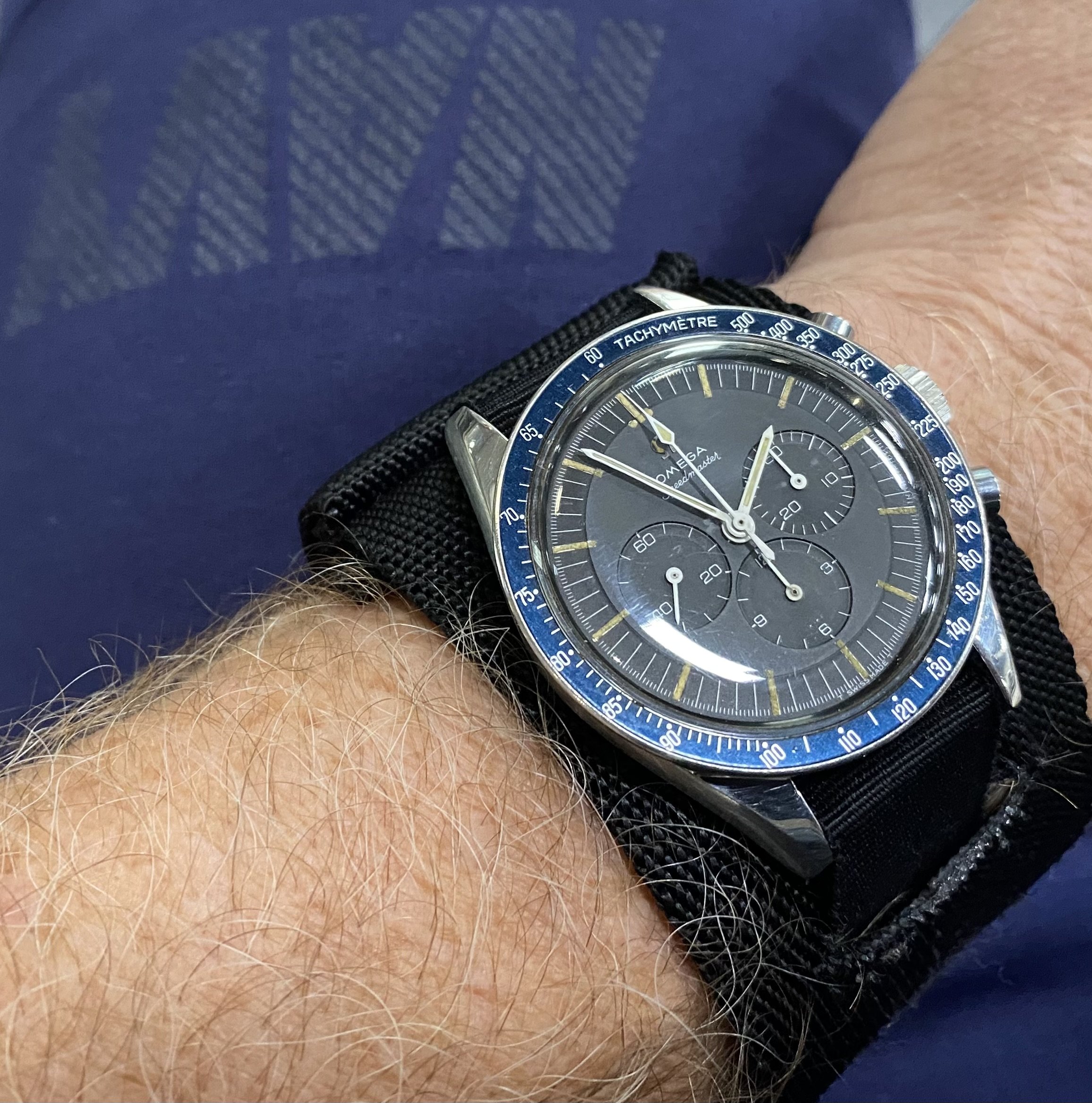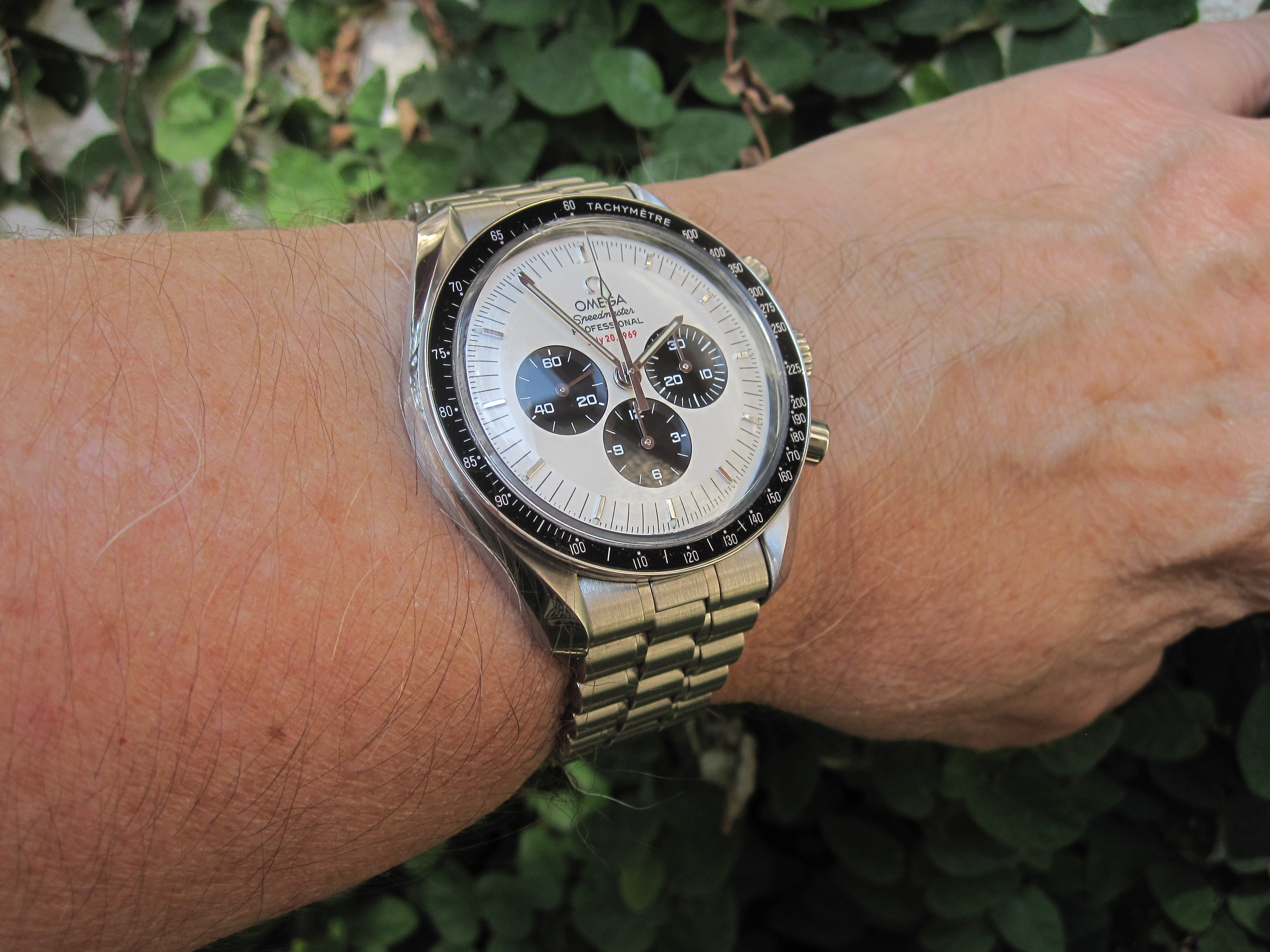 Everyone seems to be frothed up over the possibility of a new white dialed Speedmaster so I'm wearing an Apollo 11 35th dial mod with the latest 3861 bracelet. One of the best Speedmaster dials, imo.
