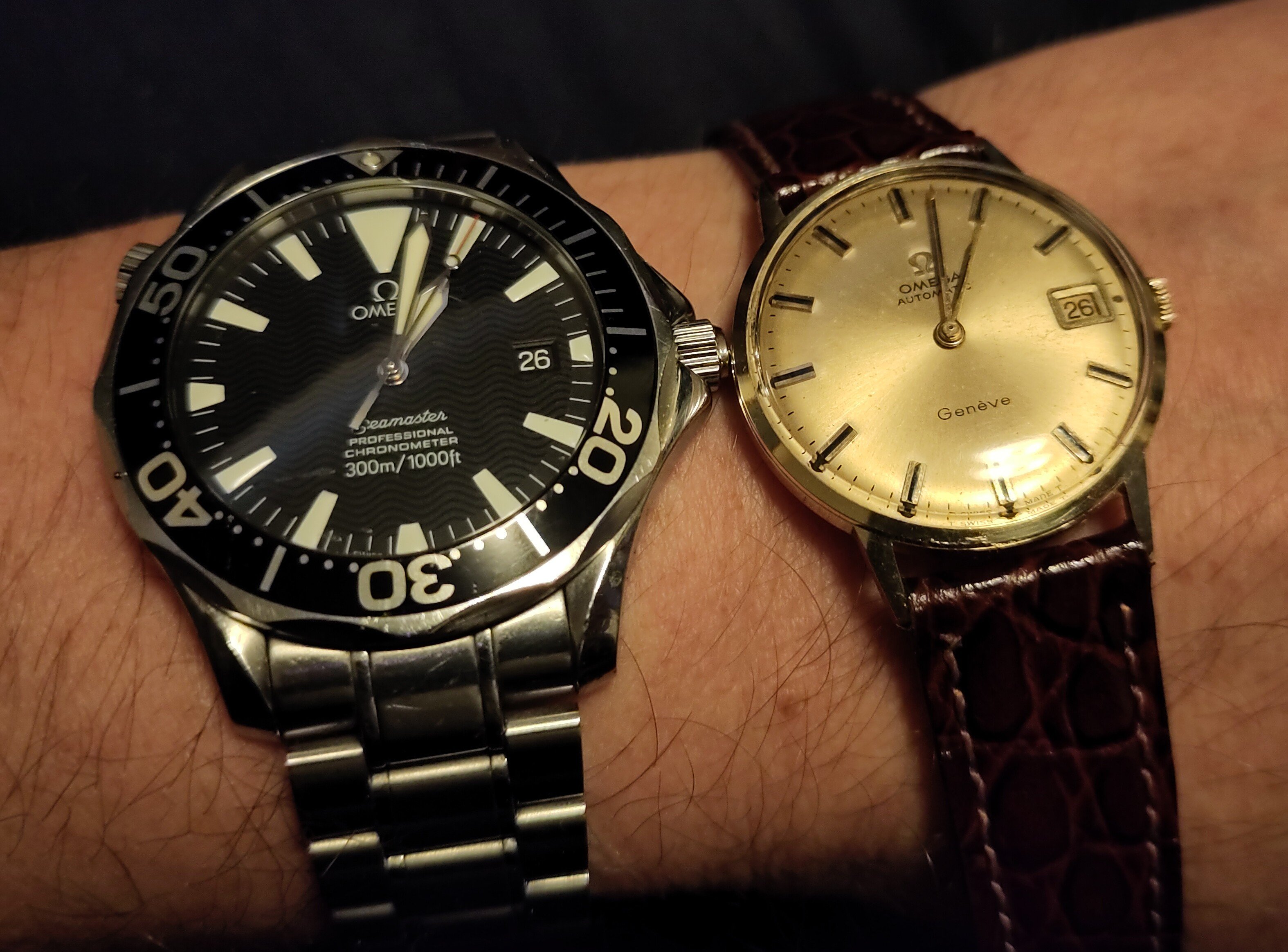 It had to happen, I forgot to take off my Geneve before taking a shower. Looks like both the gaskets and the strap handled it. Back to the diver, vintage watches are to fragile for an idiot like me.
