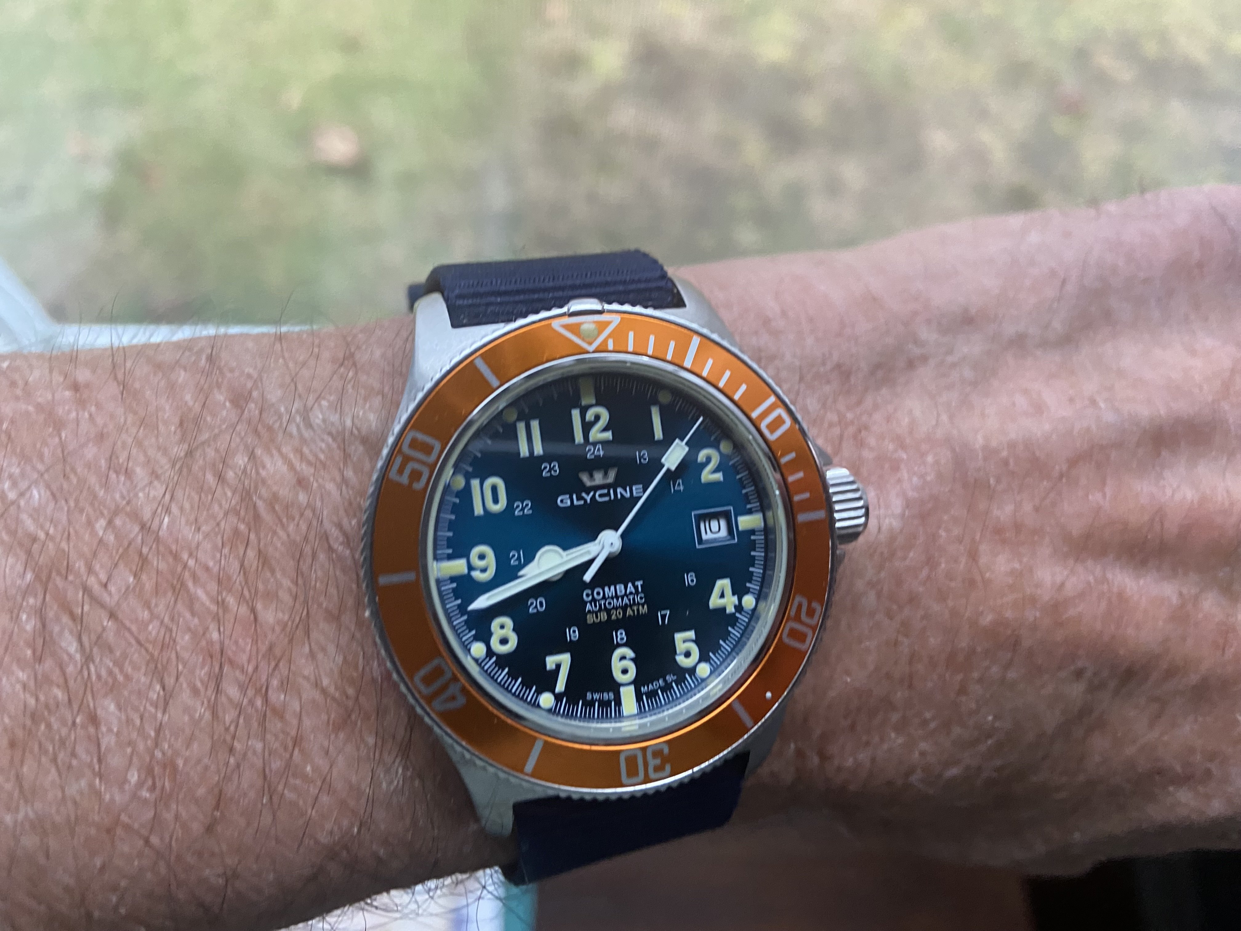 -64 Echo Whiskey on an Omega polyamide NATO for usher duty at church today…and I ran into a West Point grad prior to the church service…and I was nice to him even though Army beat Navy yesterday.