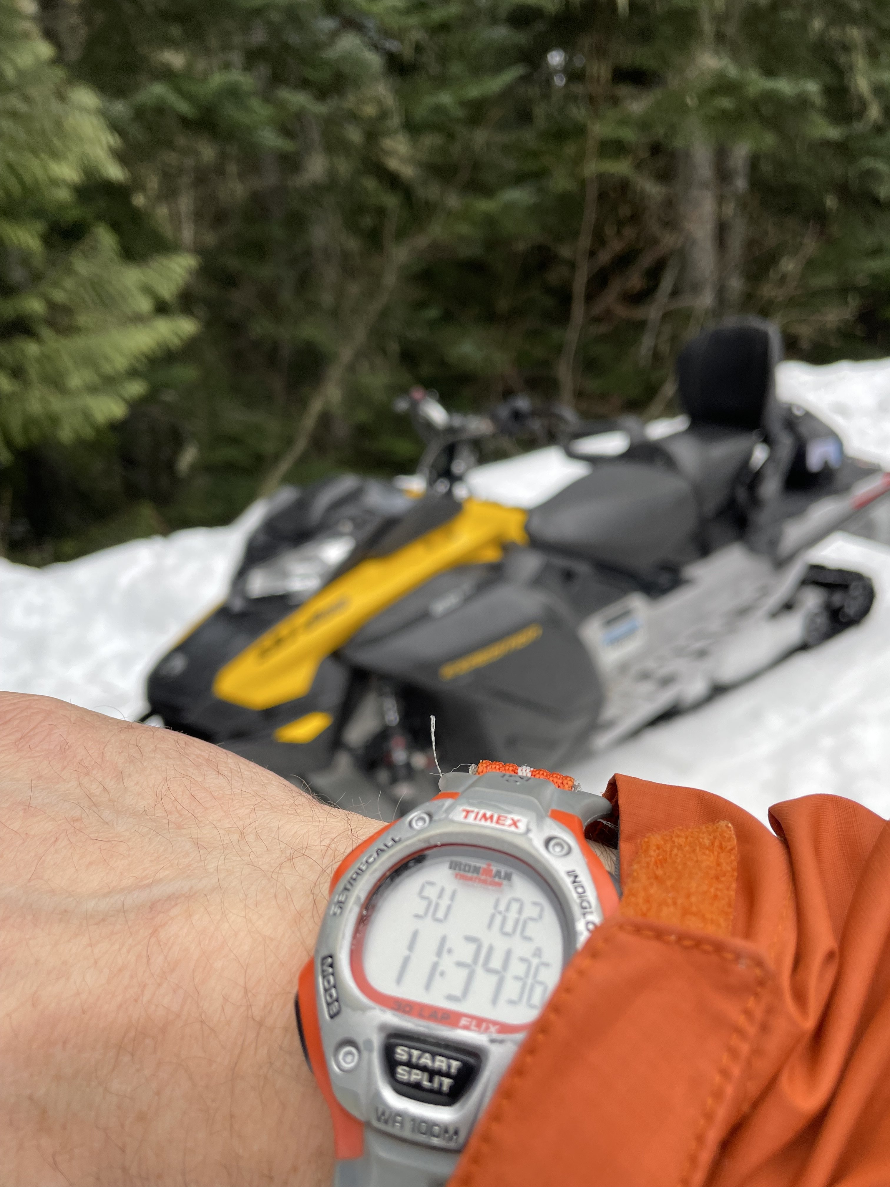 20-yr-old Time Ironman for some snow sledding today. A really comfy ride, like surfing a recliner through the forest
