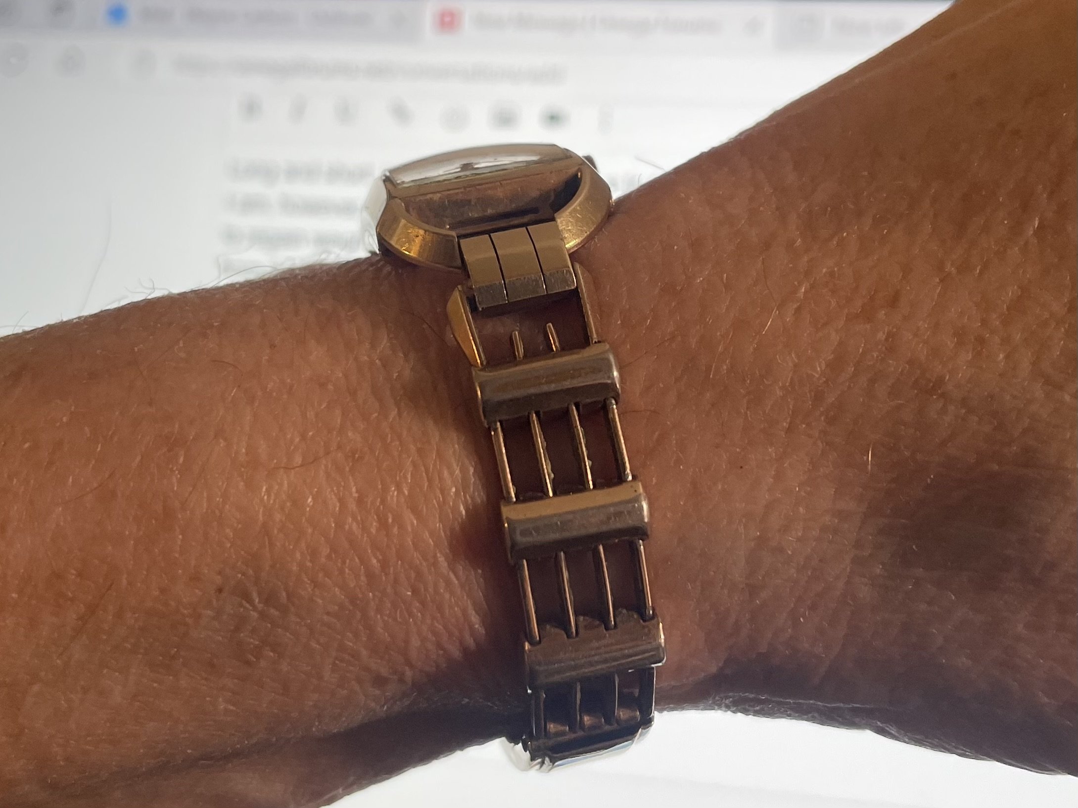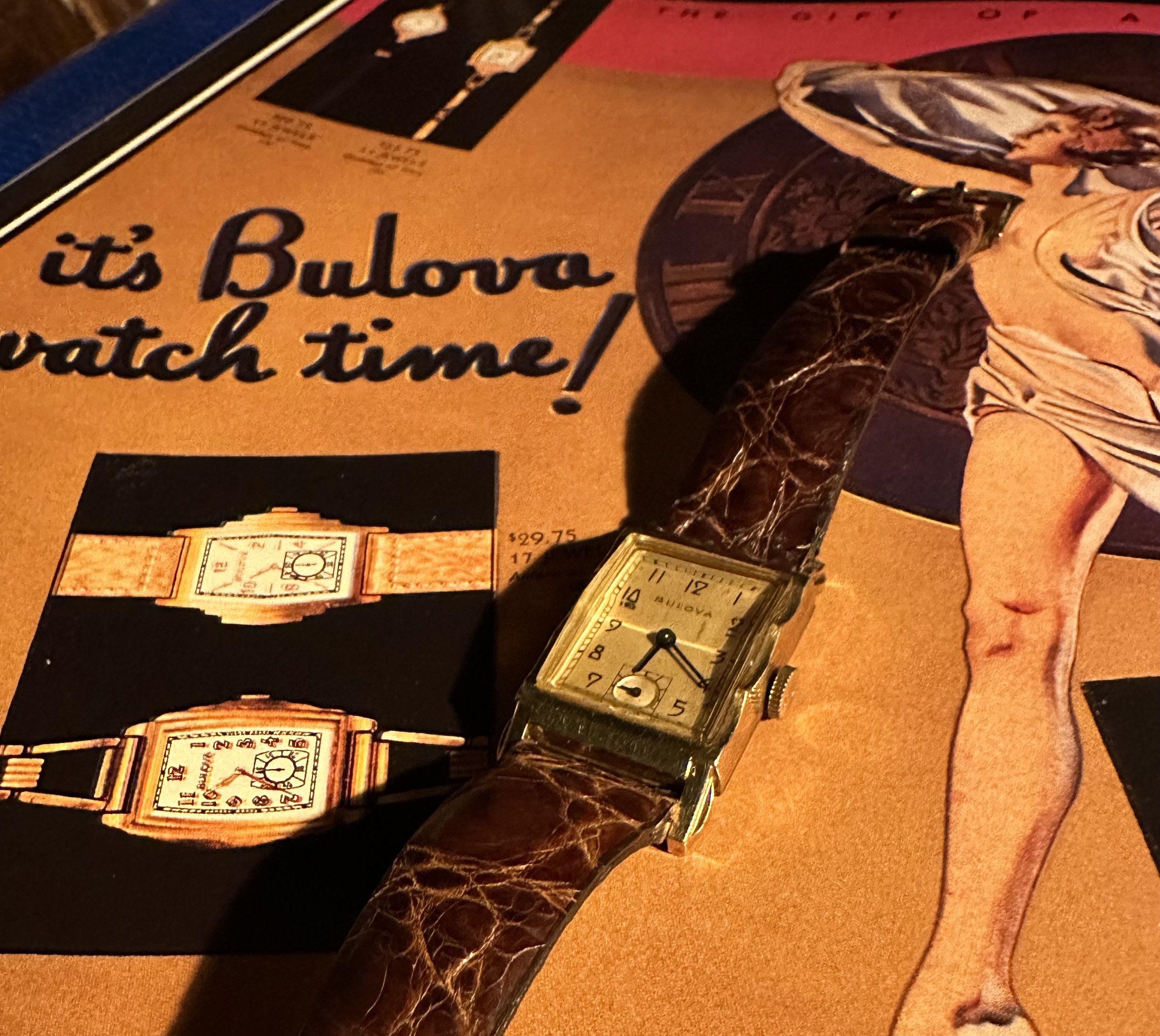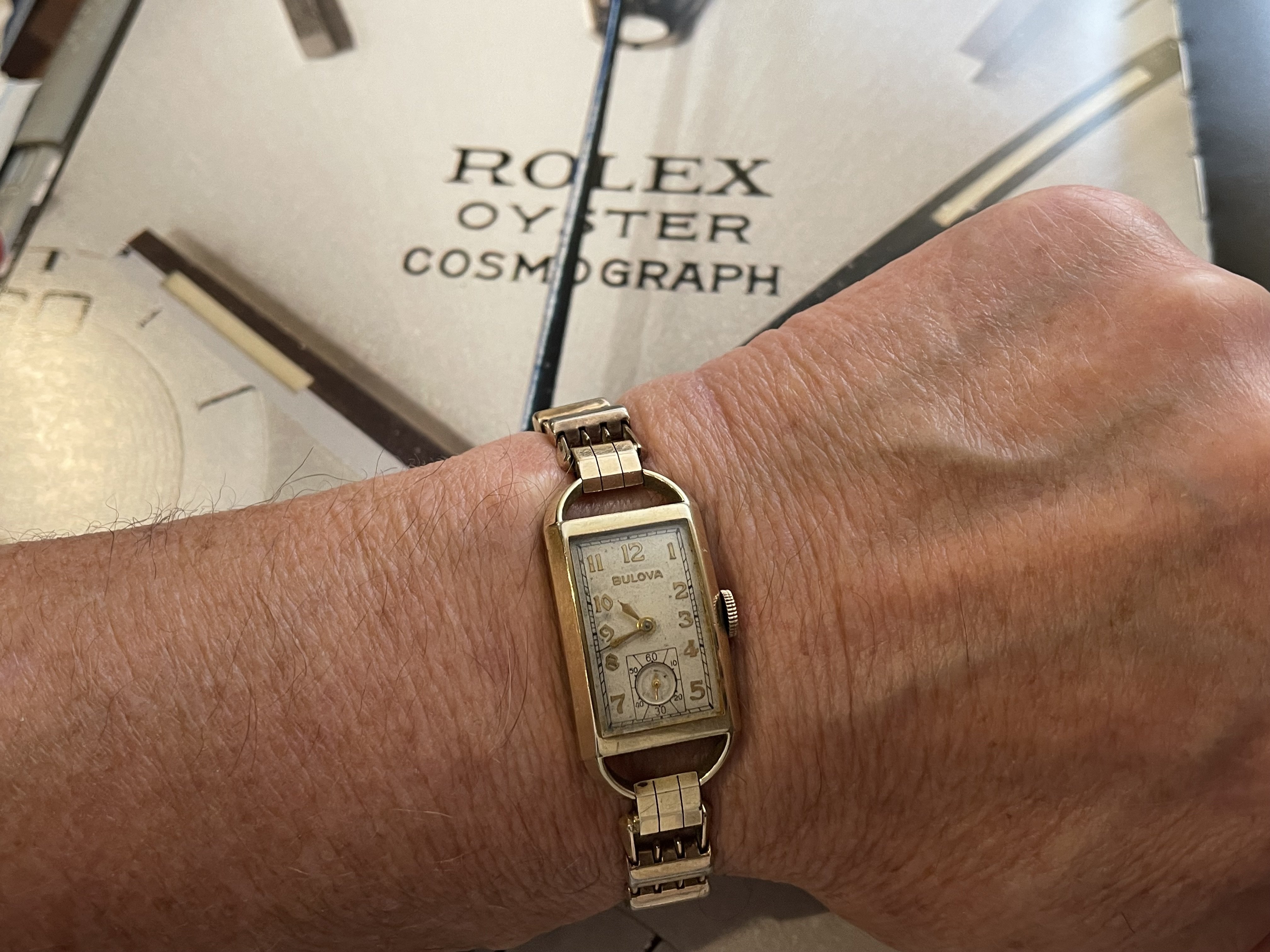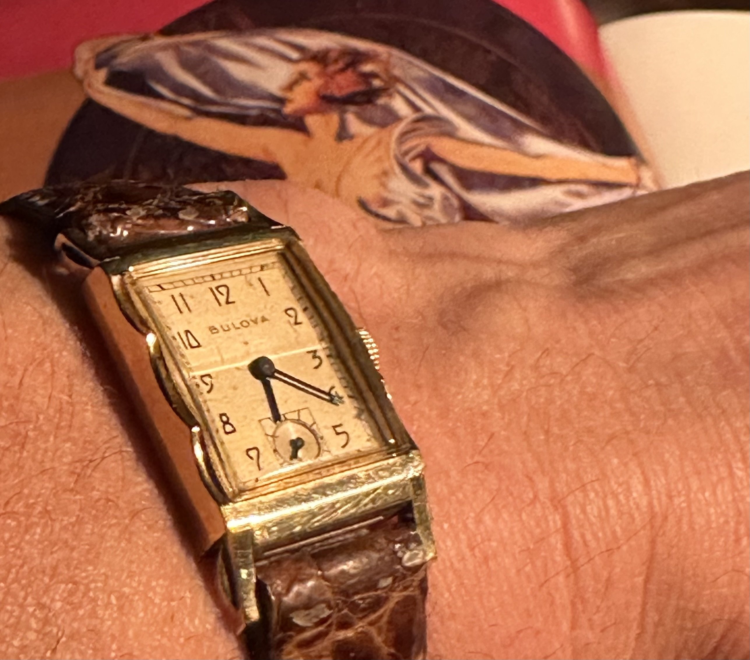 1939 Bulova American Eagle “A”….bought it for my wife, and was surprised to find the bracelet adjust to accommodate my fencepost sized wrist.