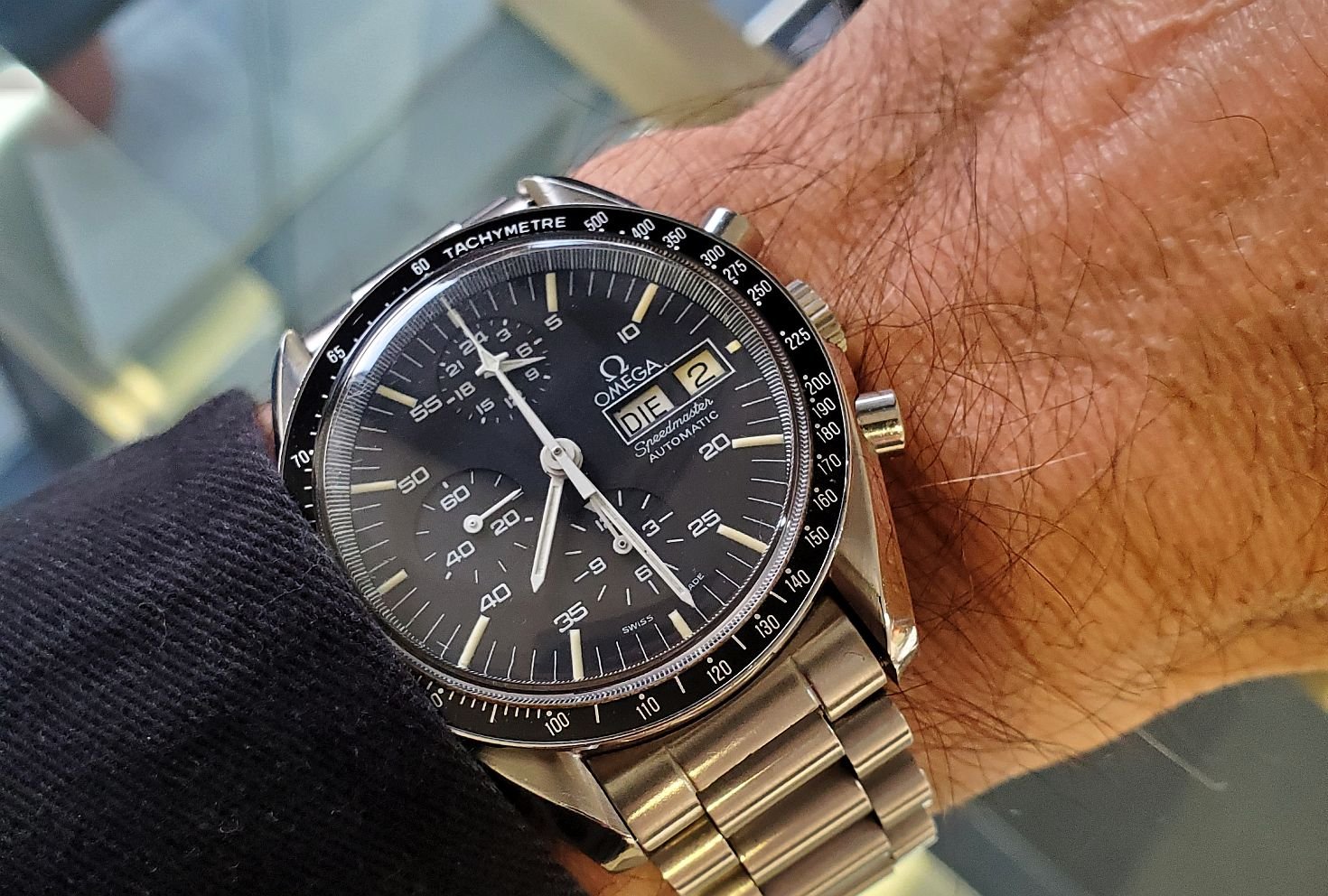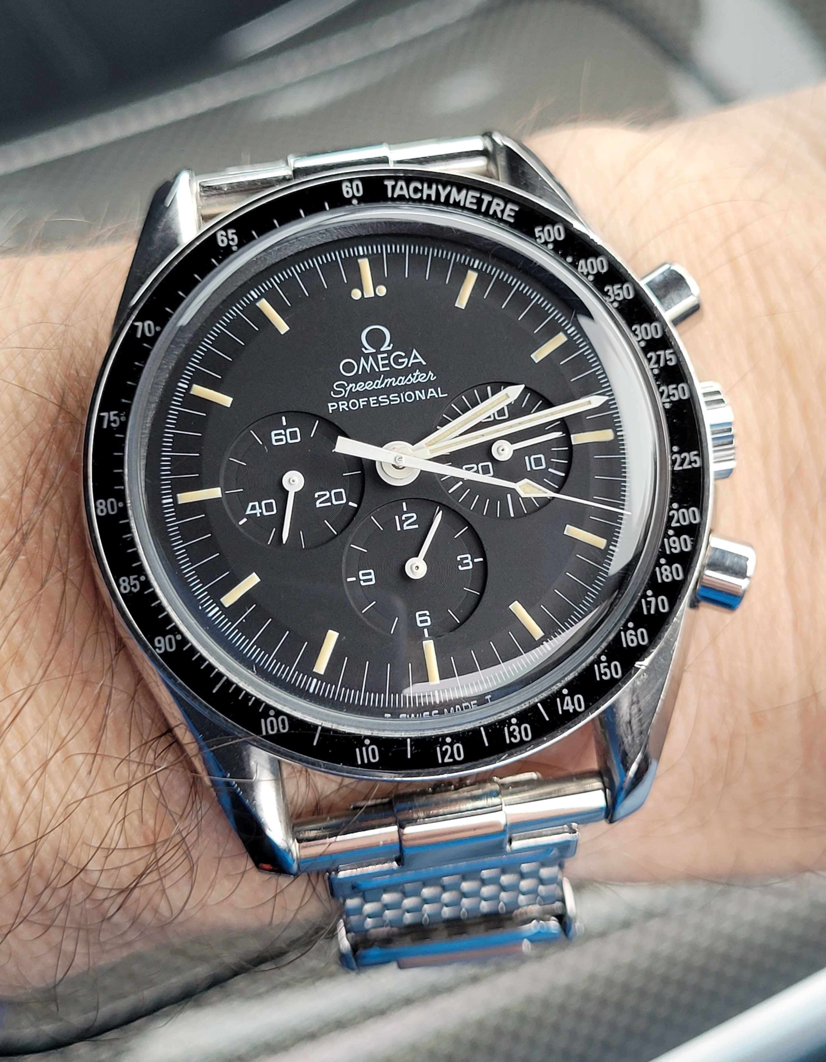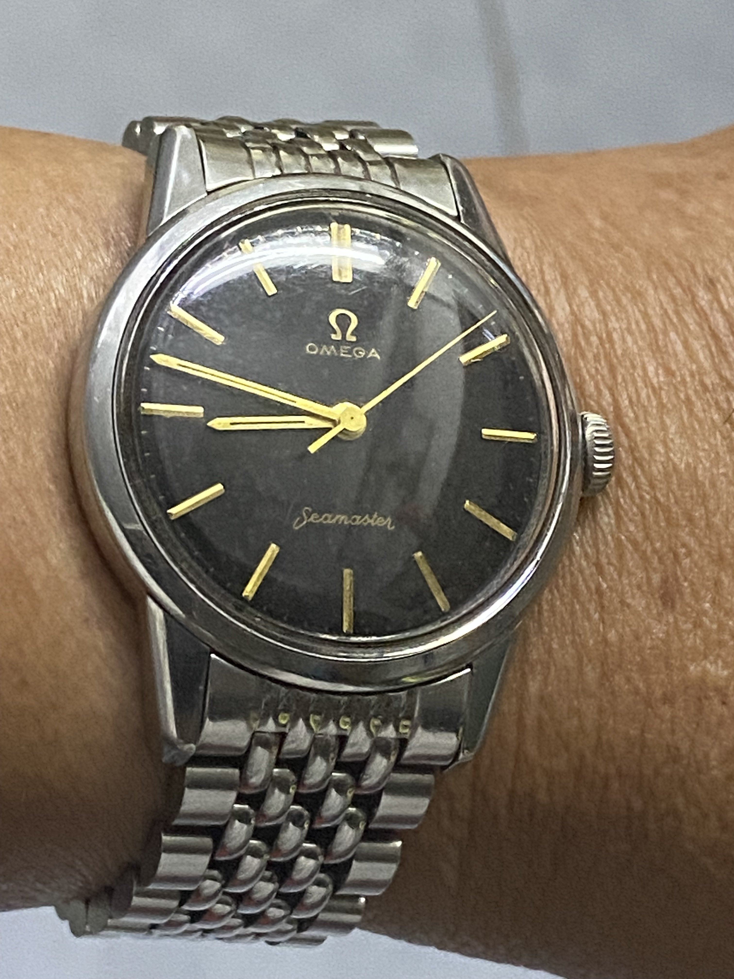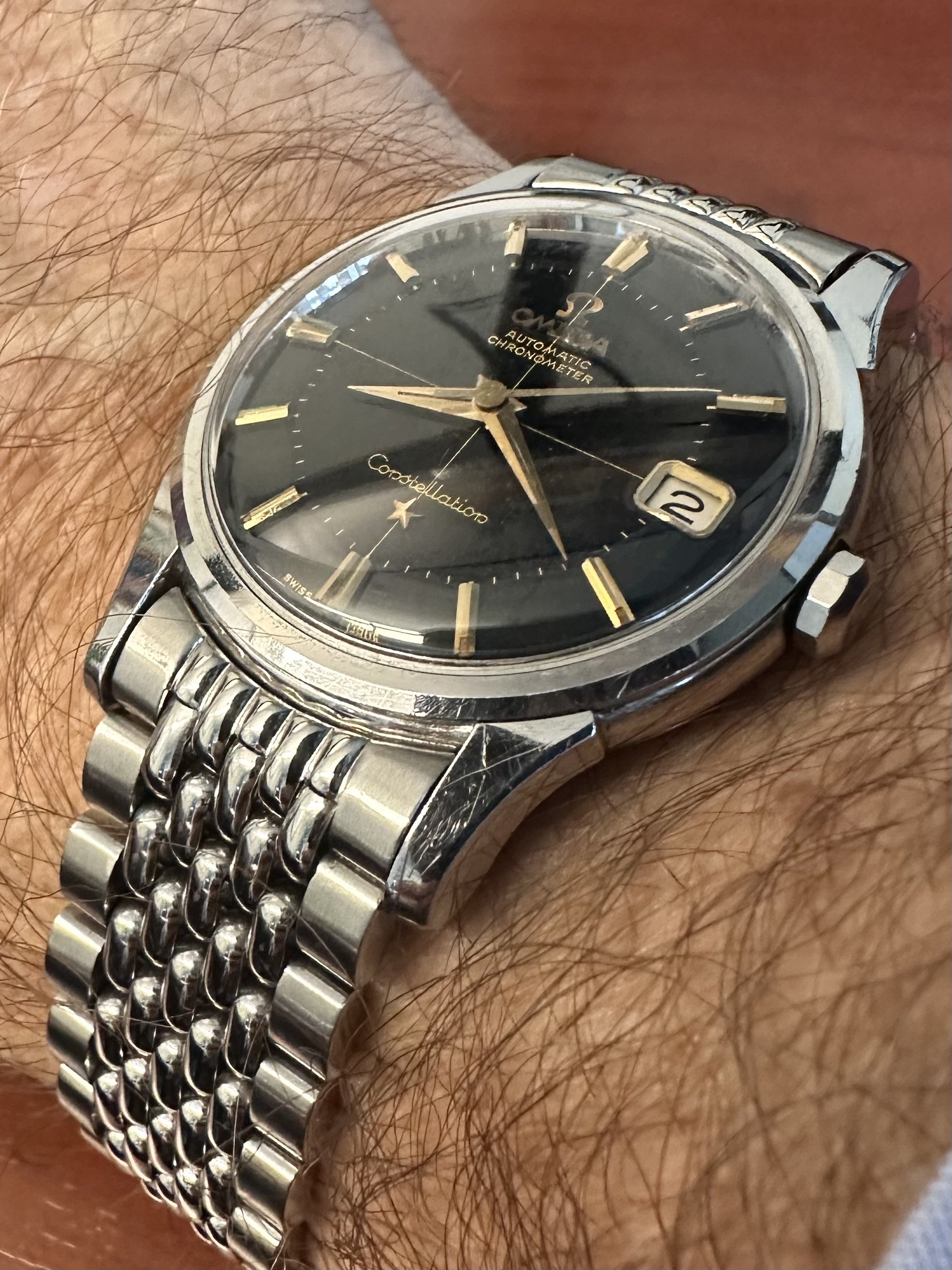 Good day and happy New Year all. First day back at work after the holiday and wearing my Constellation 14393 with an original unrefinished black pie pan dial. Which reminds me that I’m still looking for an unrefinished black dial pie pan Constellation with arrowhead markers. Anybody have one that they would like to sell? 😀