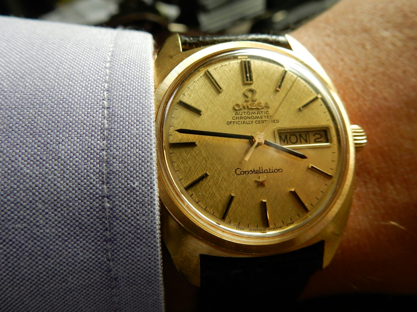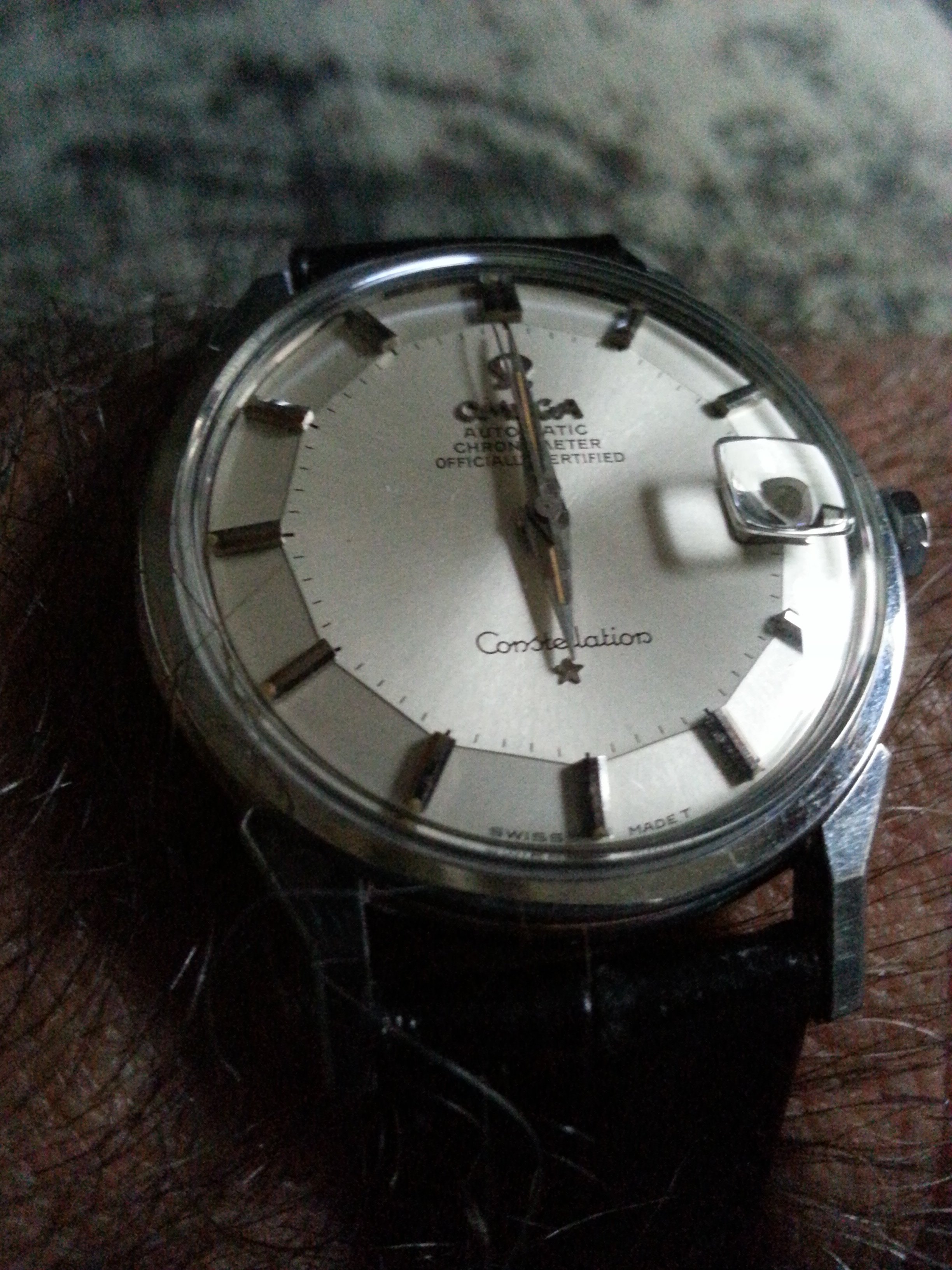 Sad story, A number of yesrs ago, I owned a nice Omega Constellation with the same "pie-pan" dial as yours. A brother-in-law was bemoaning the fact he didn't have a watch. I gave him the Omega! A year or two later, he left the watch in his car, in plain sight, and was playing baseball! Guess what! The watch was worth more than the ratty Mazda RX 7 he was driving! Someone, somewhere, is likely enjoying this watch today!