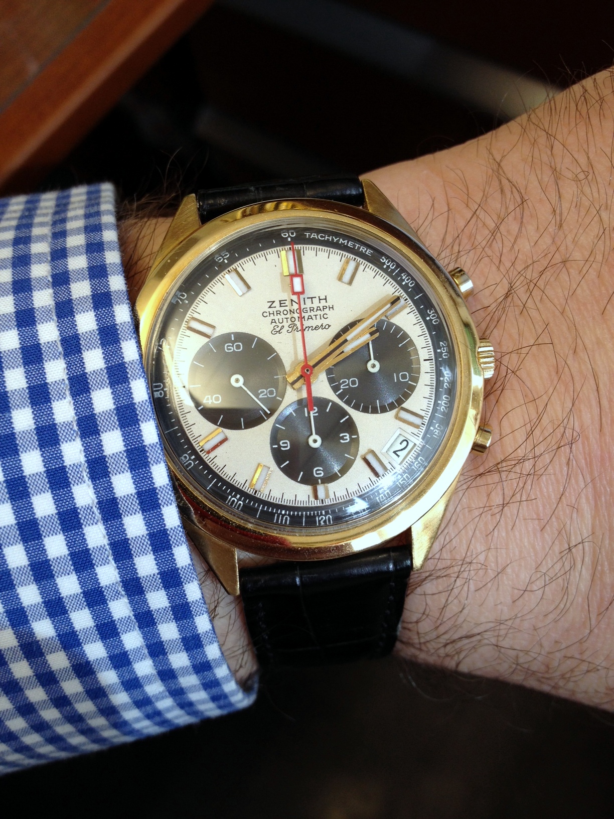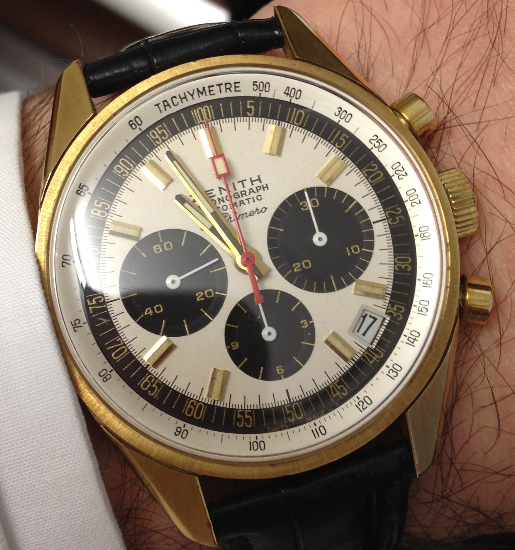 Would this be the G381 round case 18K gold El Primero (with machined subdials)? Very nice!