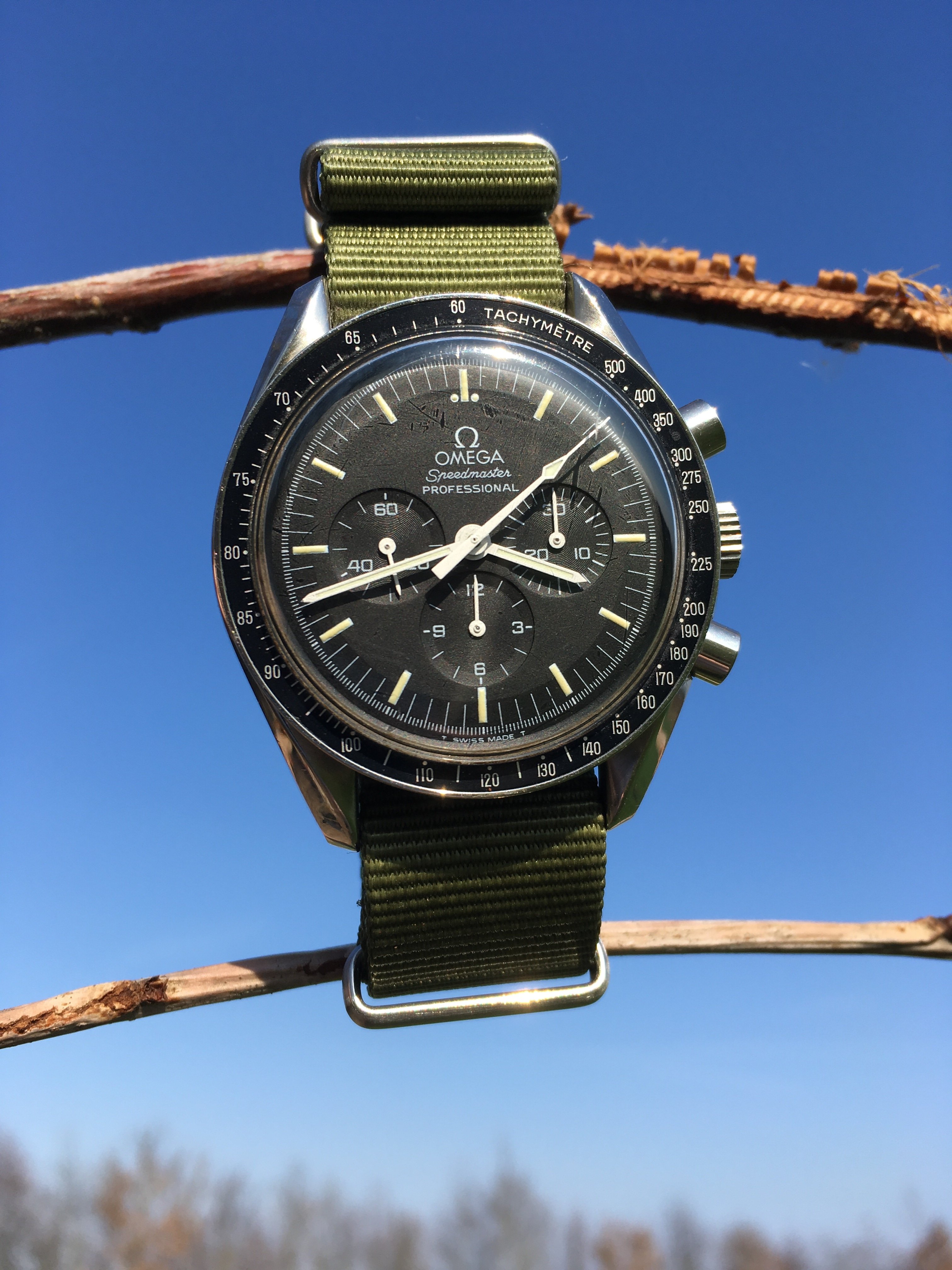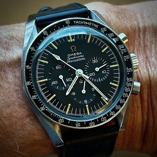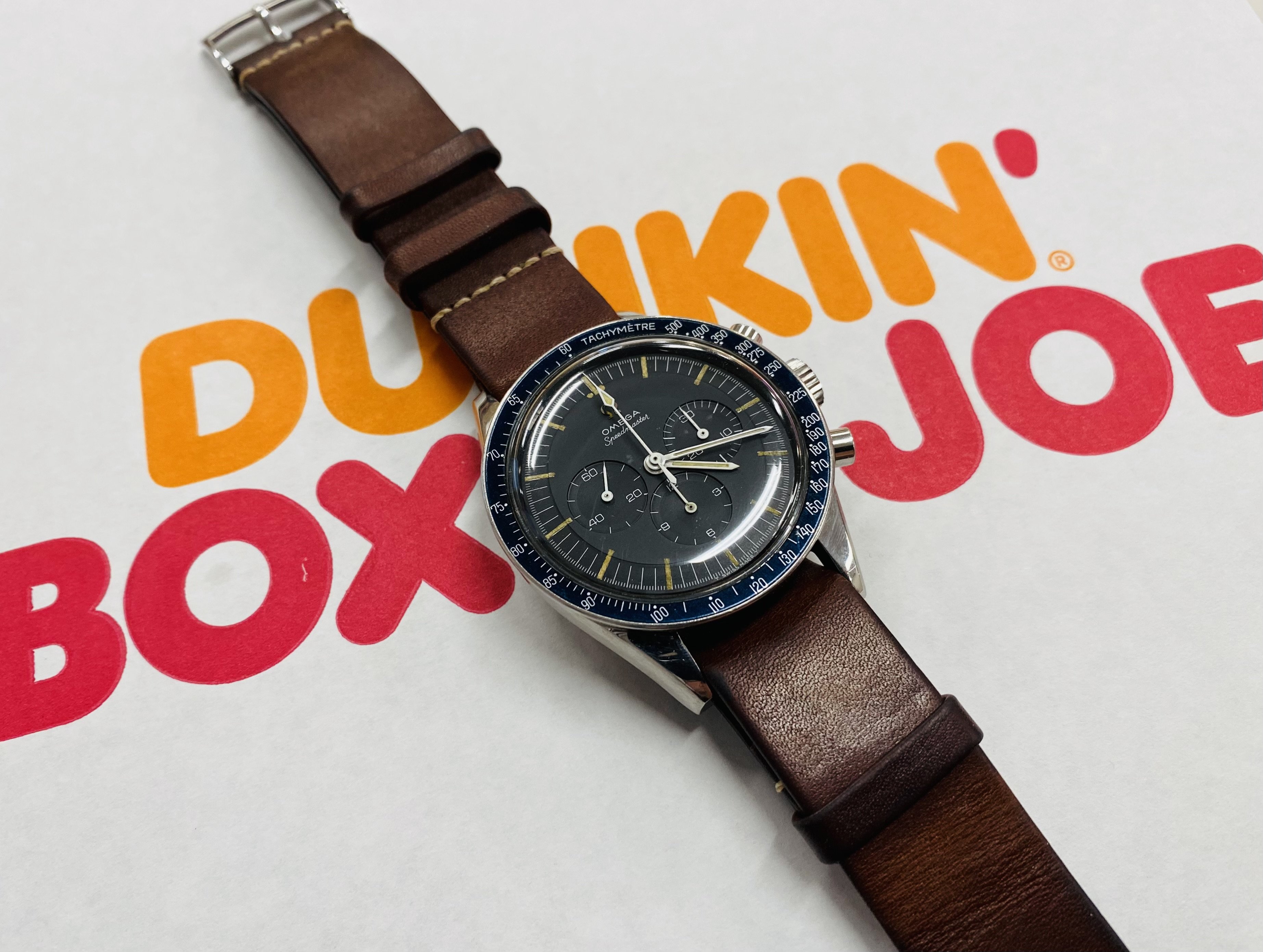 Posts 6,581 Likes 78,211 Mad Dog ·Jan 9, 2024 Still Speedy Tuesday…and still my birth year -64 Echo Whiskey…but with a switcheroo to a 19mm Omega Novonappa NATO for a trip to Dunkin’…