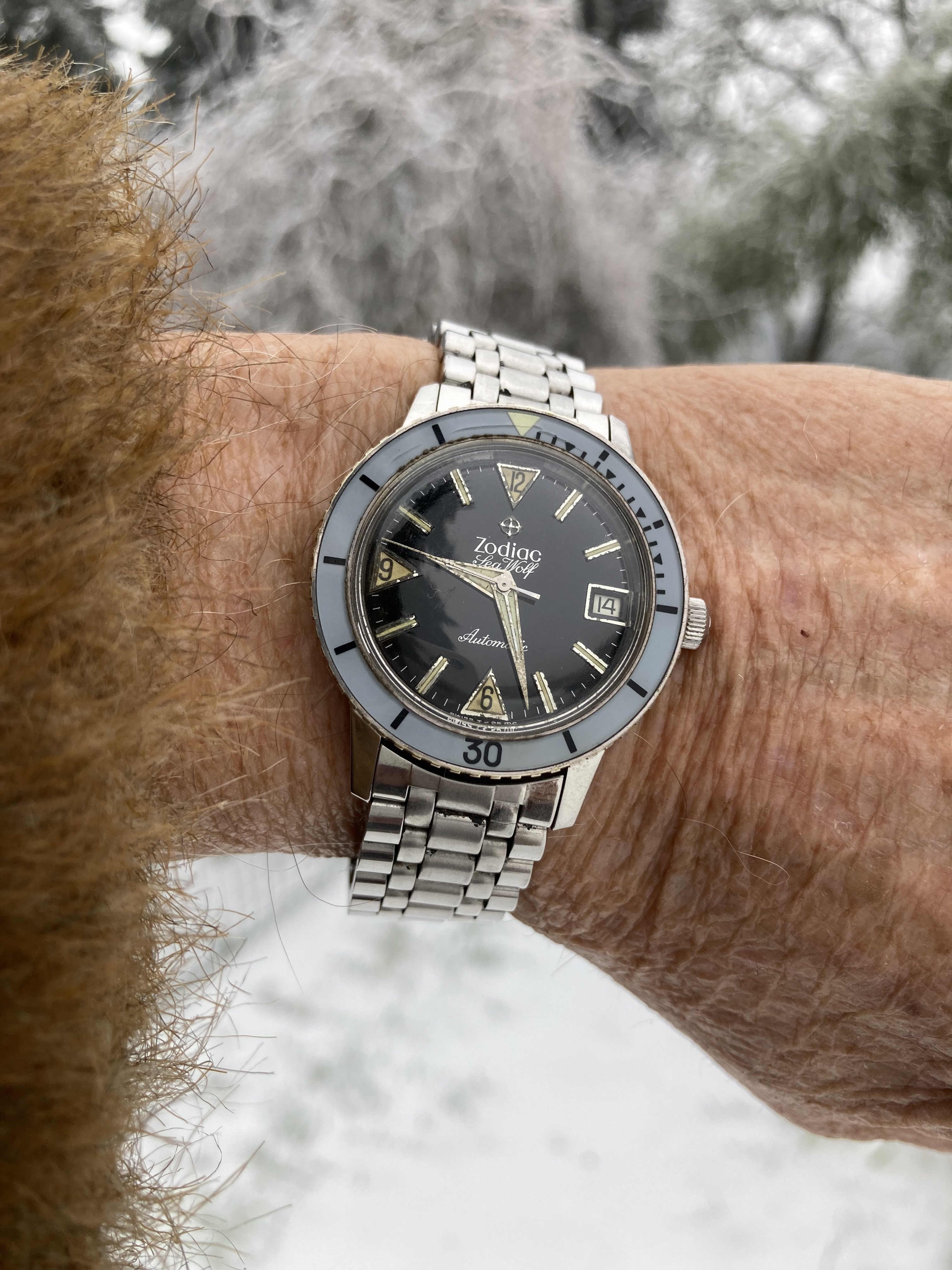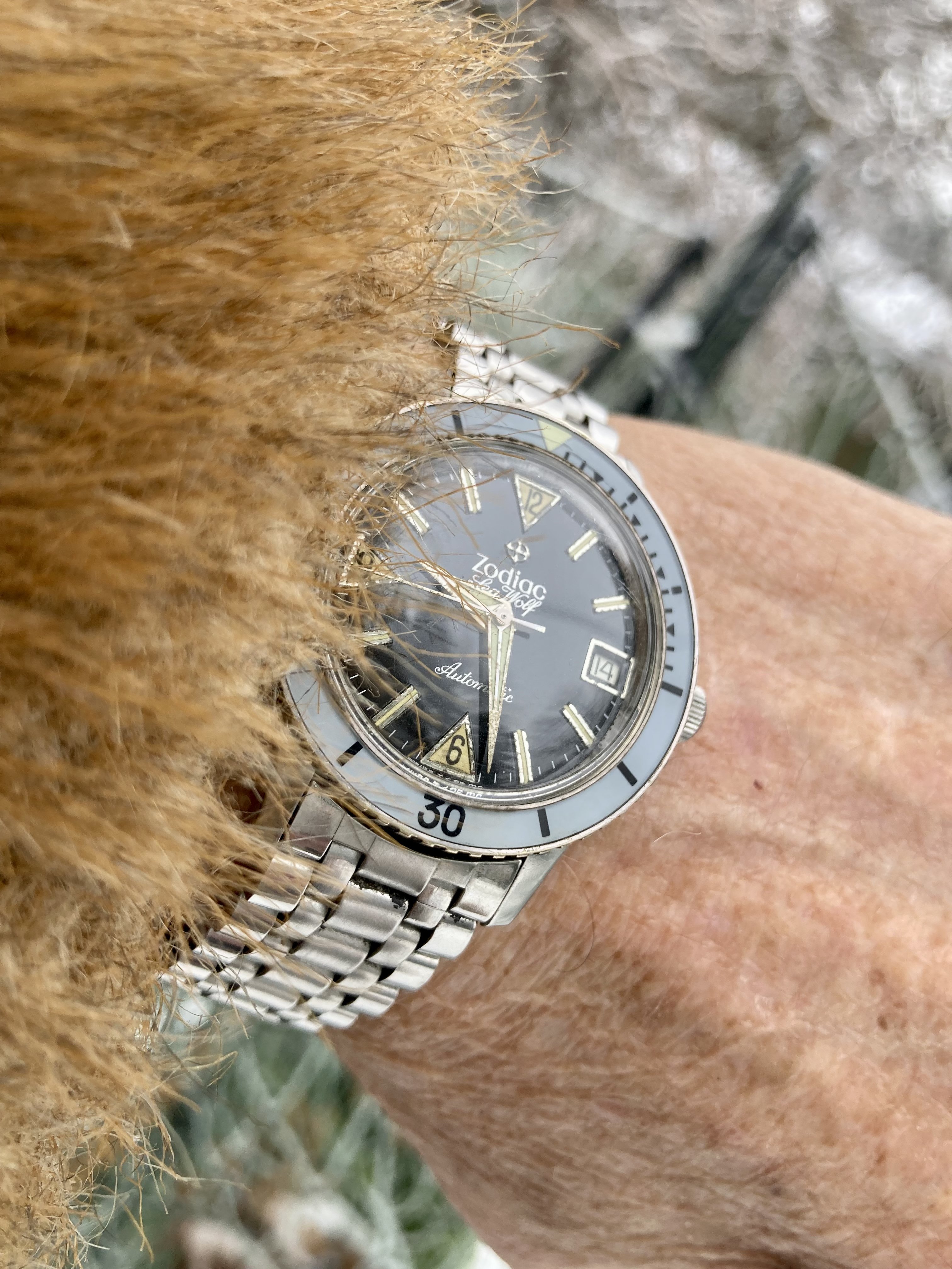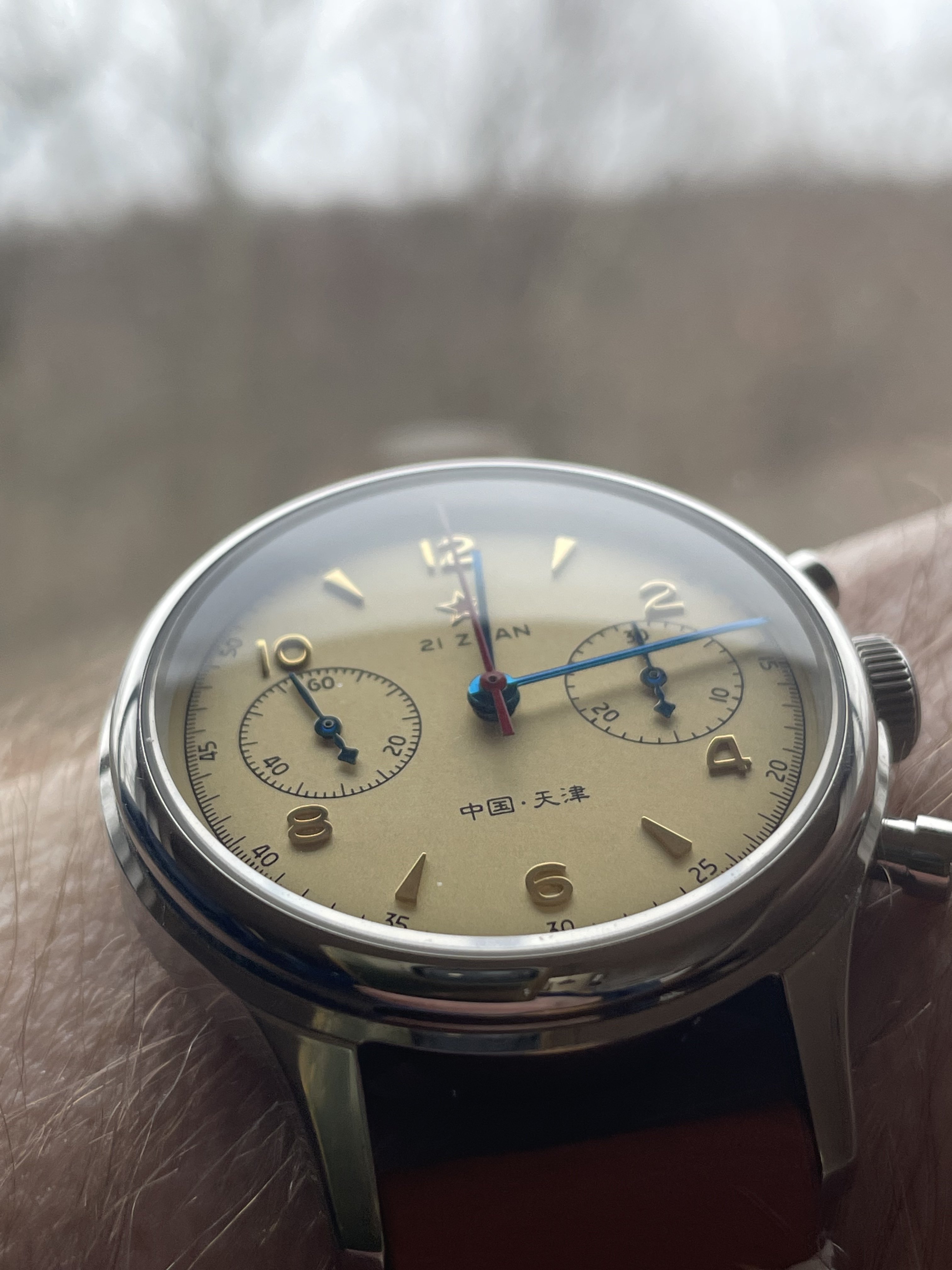 I hate having to put the date and time on this watch, it's a real pain in….., but once I do it, wow! It's a beauty, these hands and the red letters are incredible.