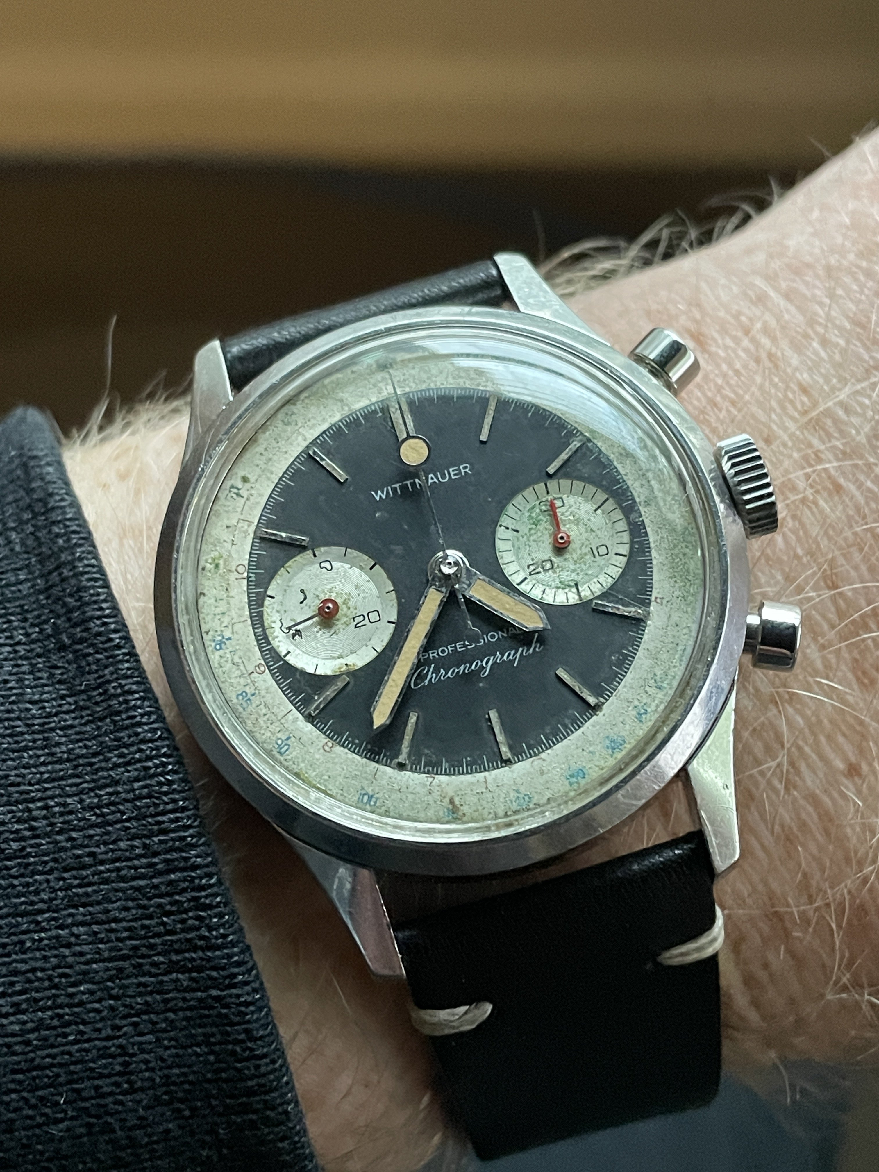 Back from the spa freshly and finally fitted NOS chronograph seconds hand. The original lume had degraded pretty bad on the hour and minute hands, so I elected to have them relumed to match. I鈥檓 pretty happy with it but mostly just happy to have it back on the wrist.