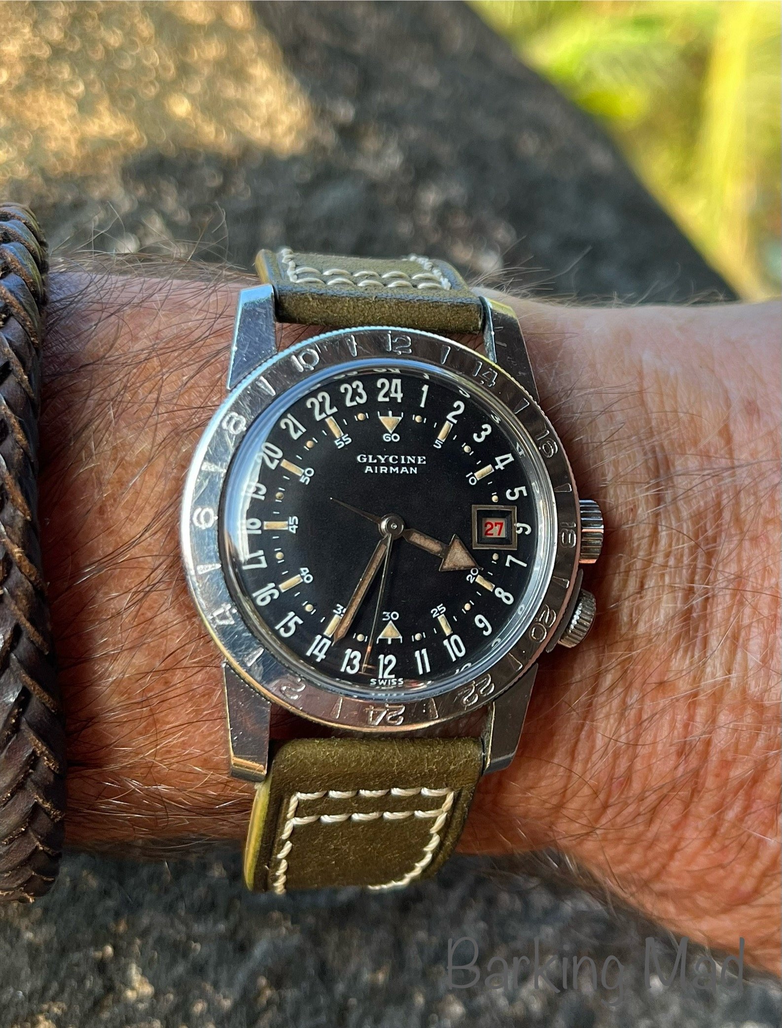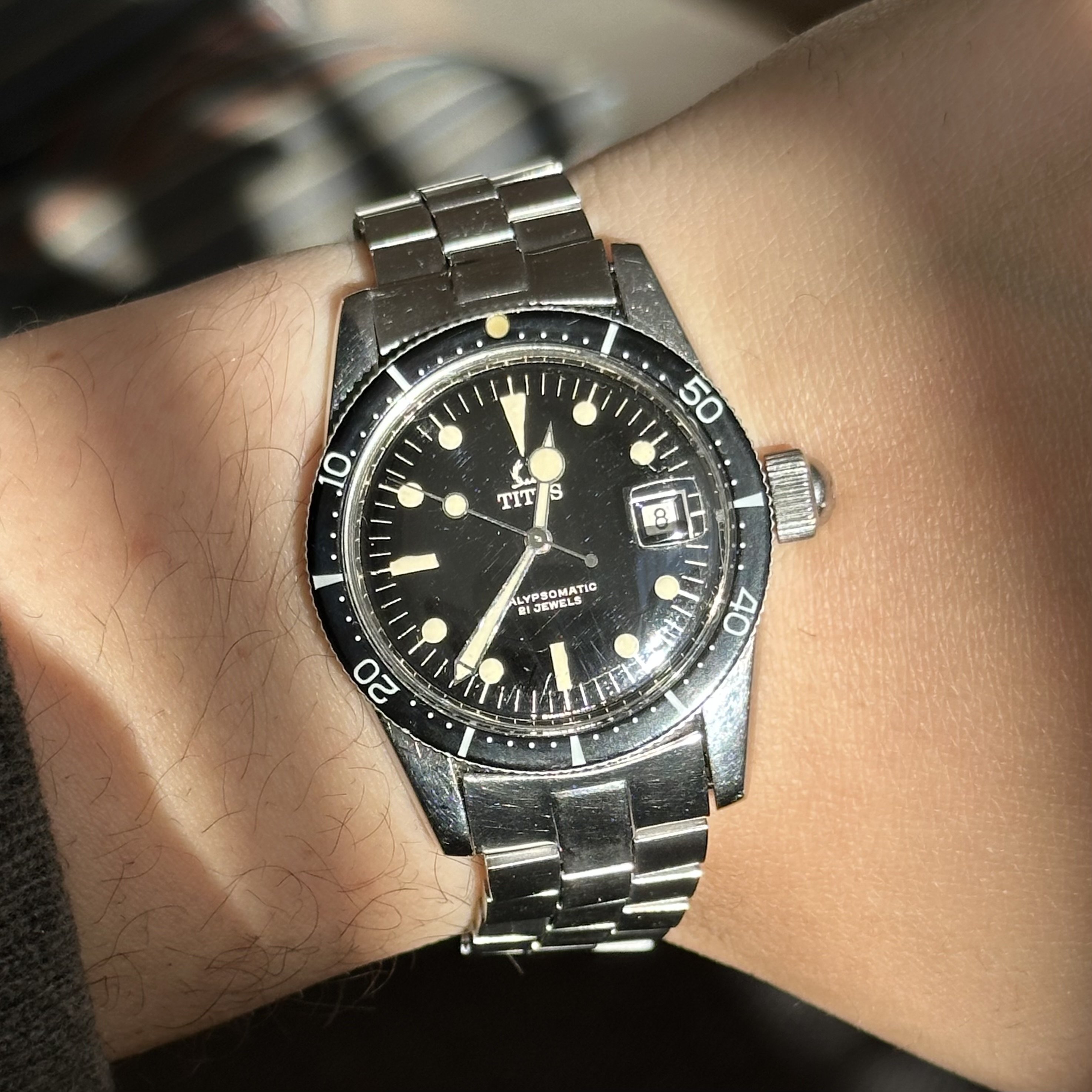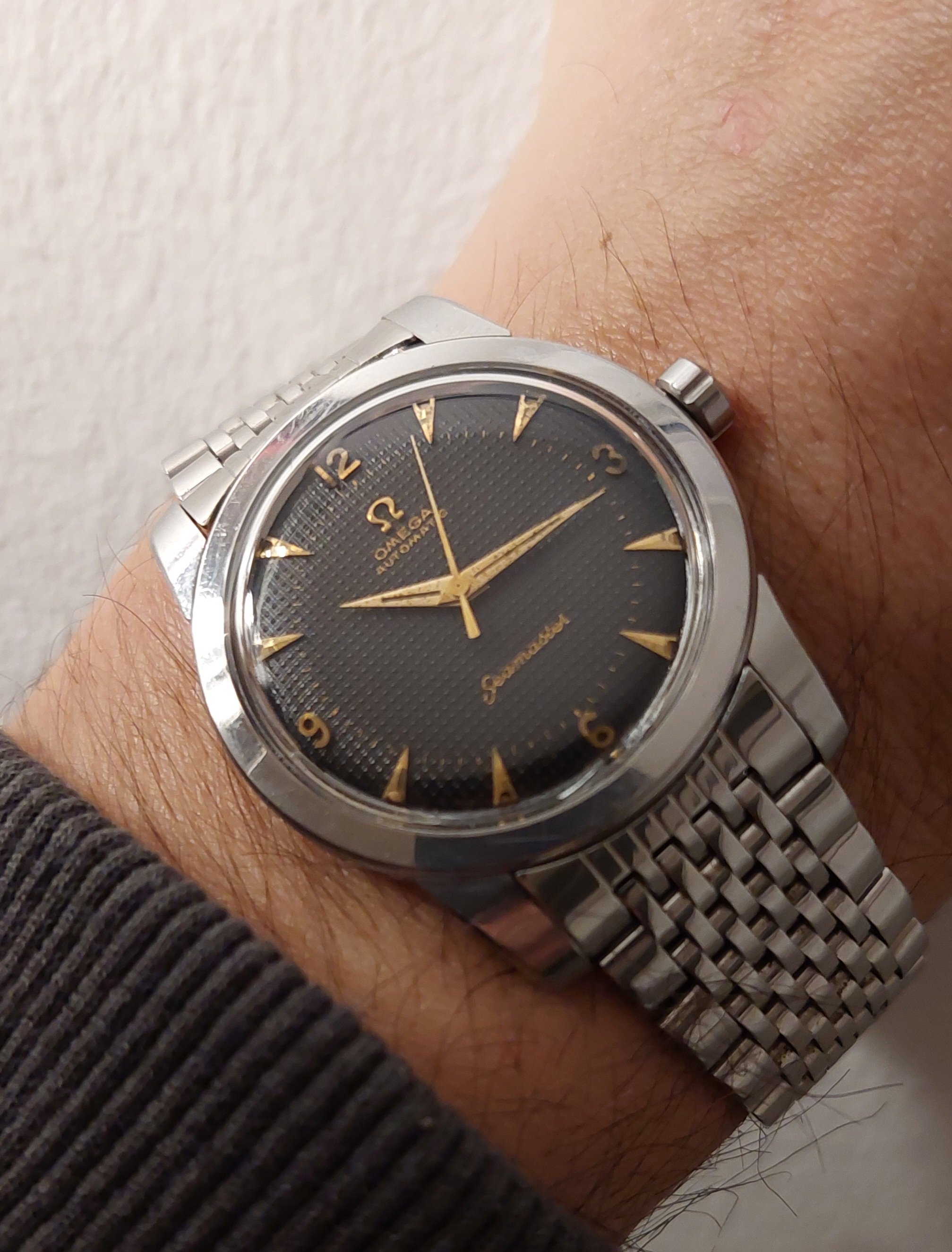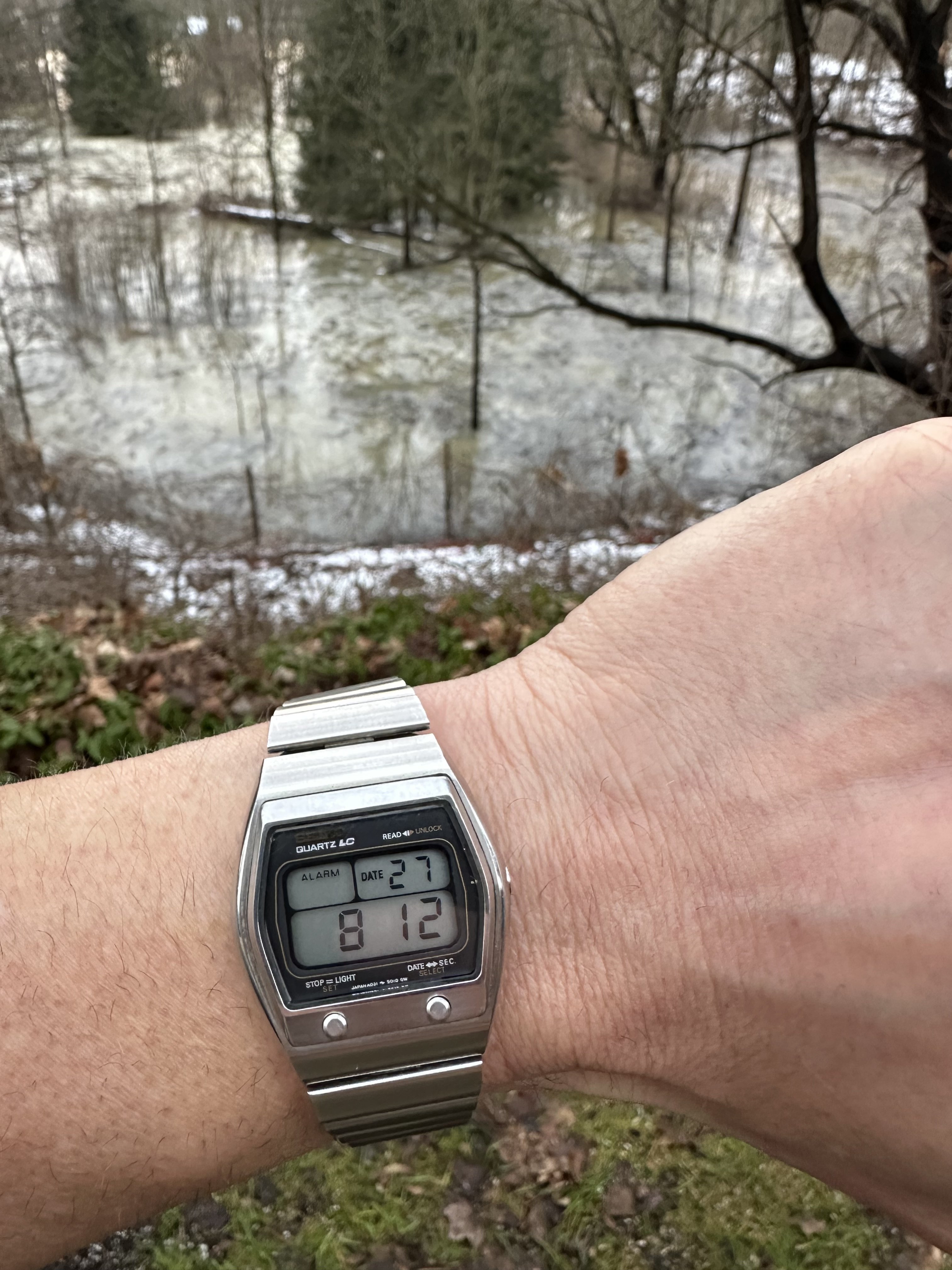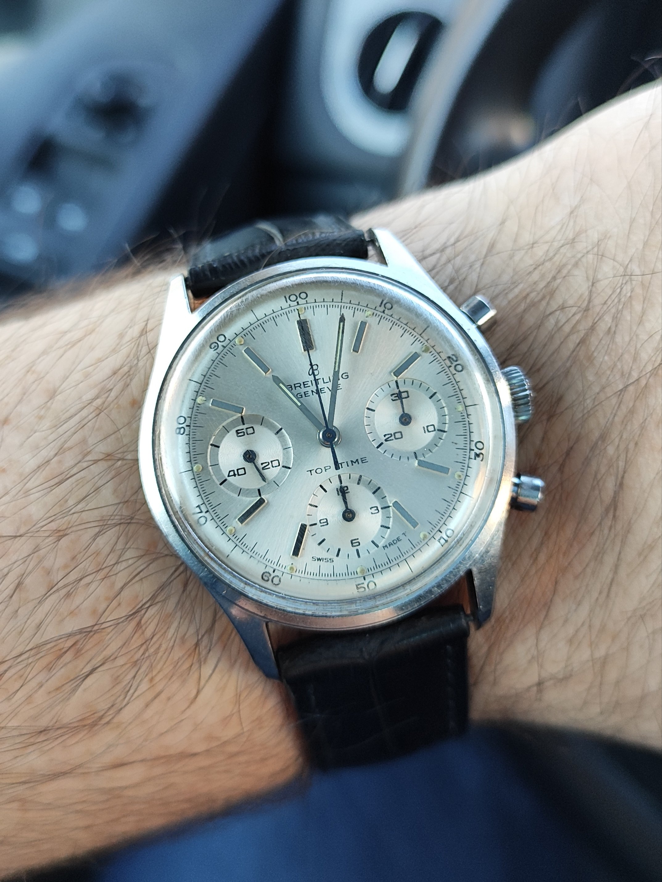 Stepping out this evening, time to change attire, and while I’m at it, my watch. This is my 60+ year old Bucherer two-register chronograph in its gold filled “clamshell” case. I’ve had this watch for ten years, but it has needed servicing, so I have seldom worn it because it was an atrocious timekeeper. I serviced the Landeron calibre 48 movement a year ago, so now it gets worn on occasion.
