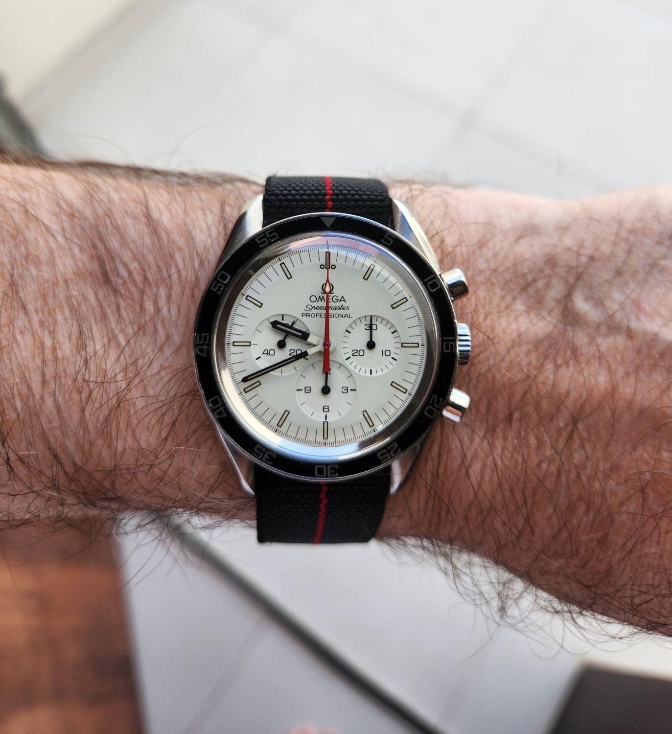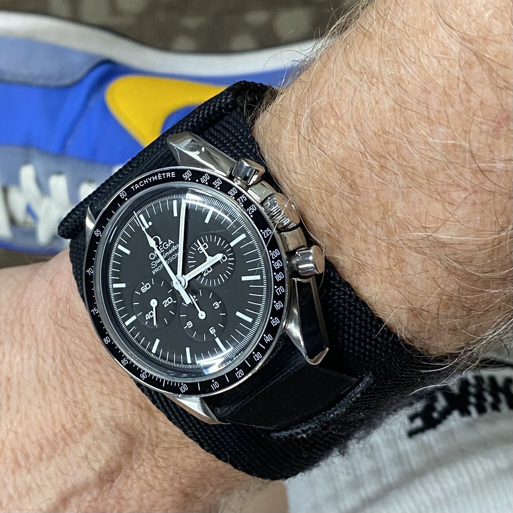 Switcheroo from double dog vintage Speedmasters for church to double dog modern Speedmasters for the gym today…1861 and 3861 respectively…both on Rothco protective bands. NOTE: Length of workout will be recorded with the 1861 and numbers of sets will be recorded with the 3861. I have technologies and I’m still on vacation…