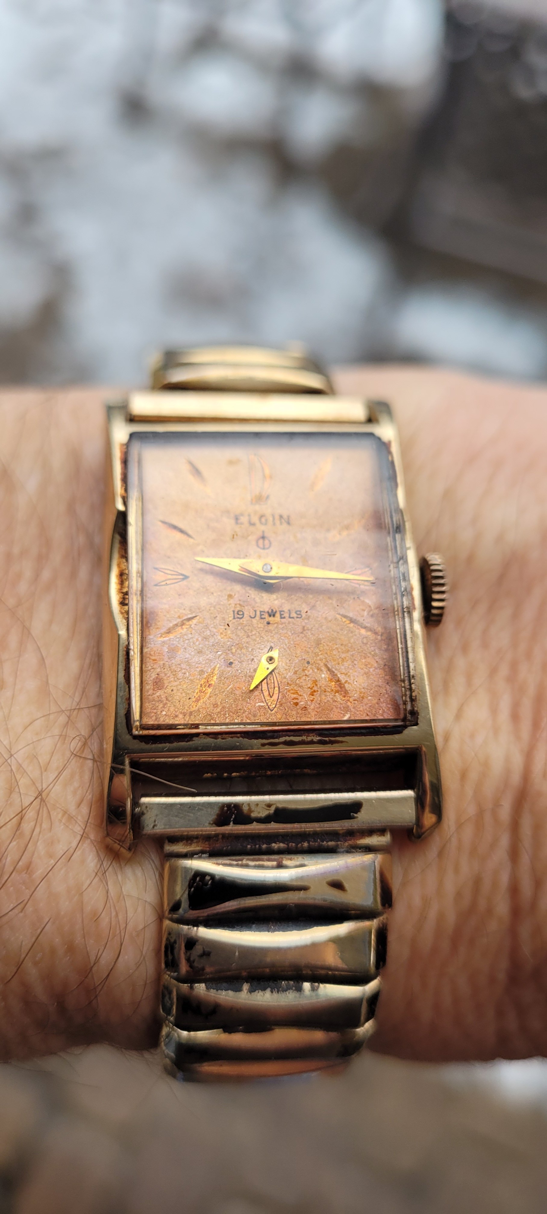 Posts 128 Likes 394 rexquando65 ·Feb 5, 2024 rexquando65 Grandpa's Elgin tank Sweet patina I believe.