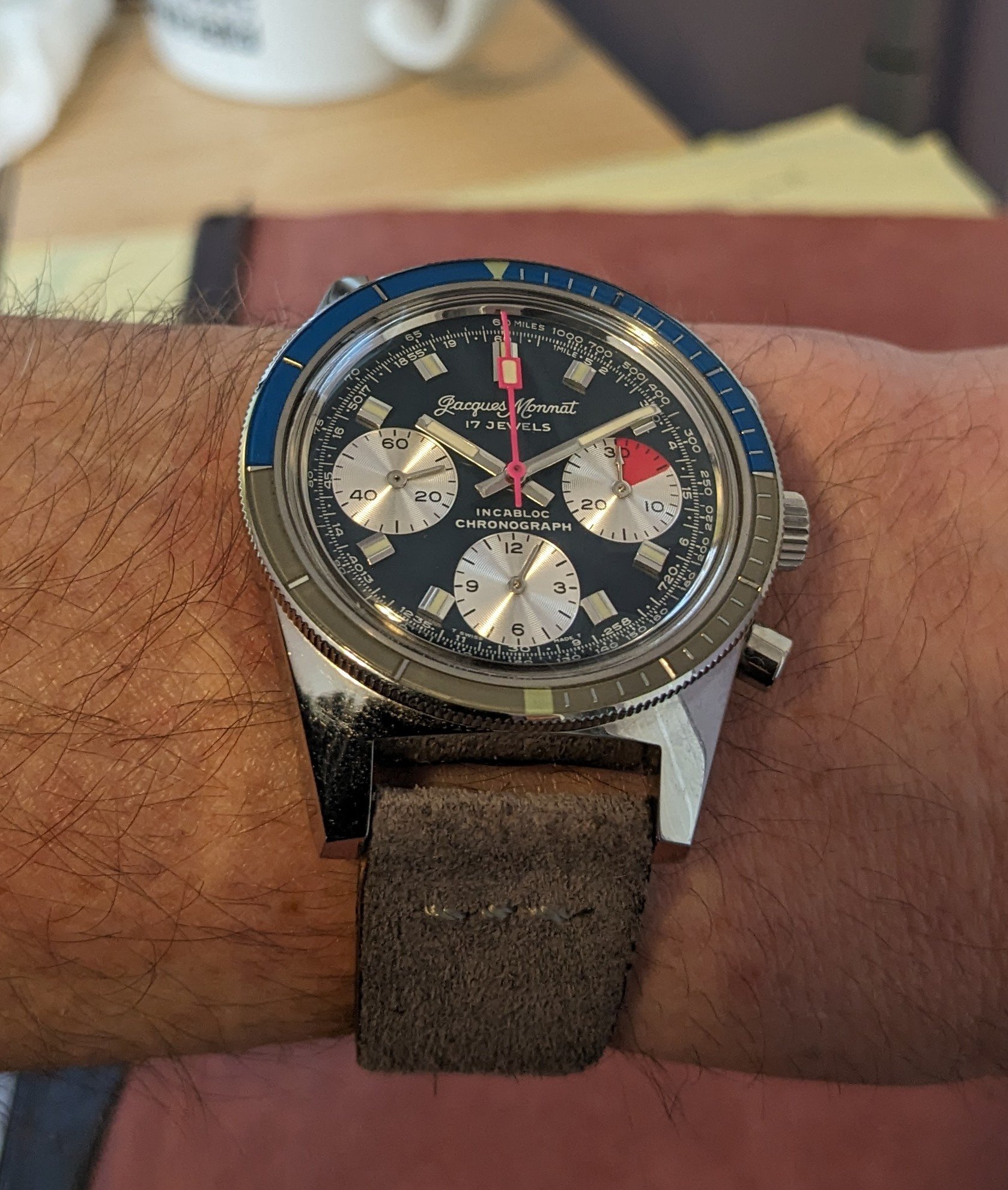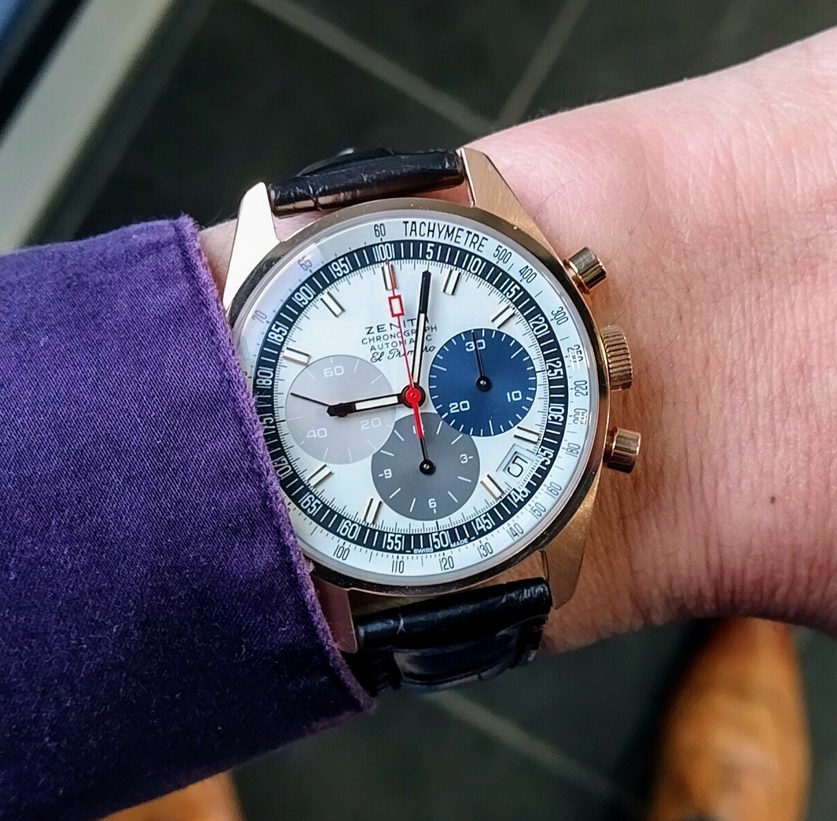 Posts 128 Likes 394 rexquando65 ·Feb 5, 2024 That's nice. Here's my sweet baby. I know chrono hand is too old for a late 70's dial, but I love it.