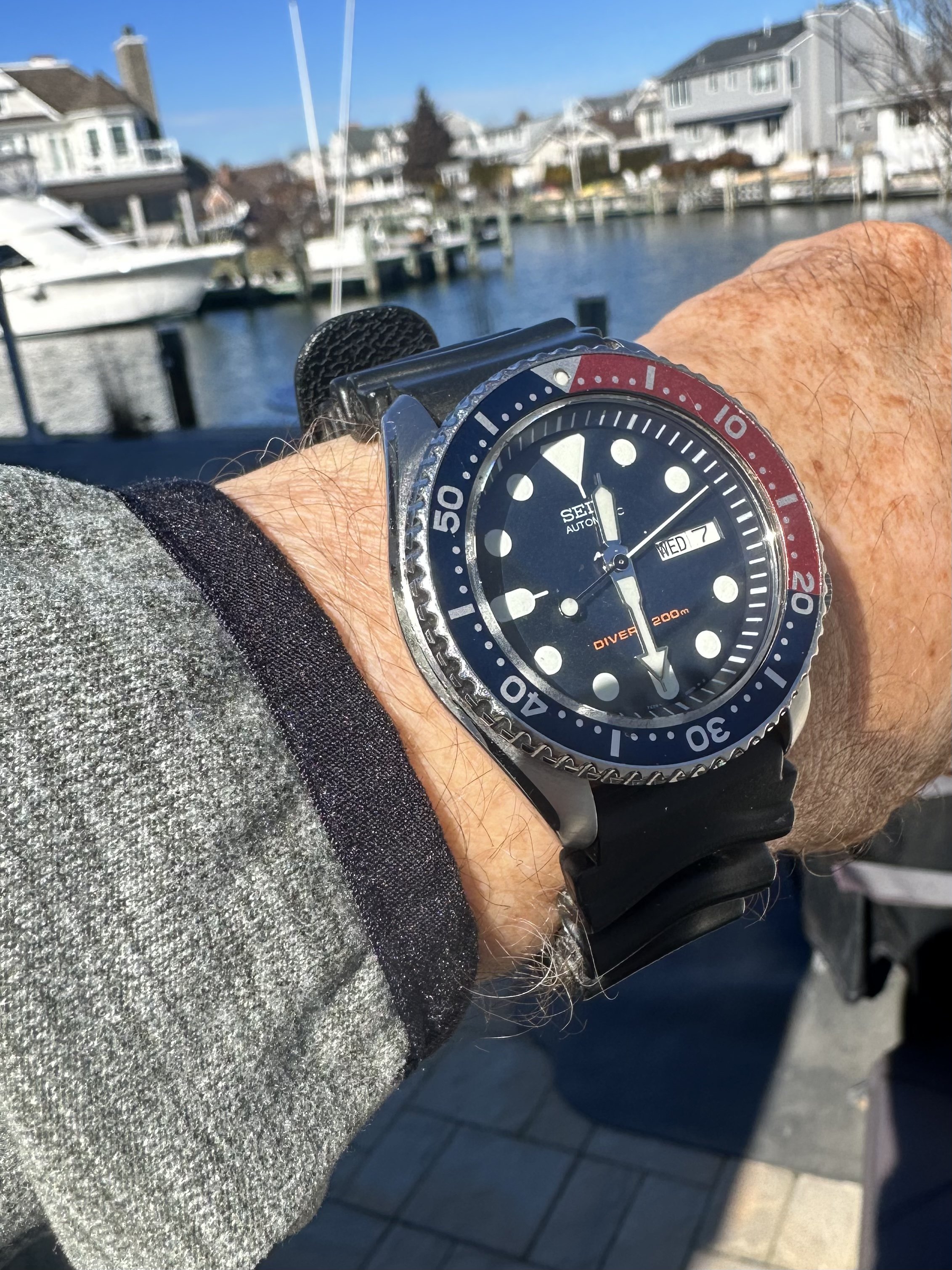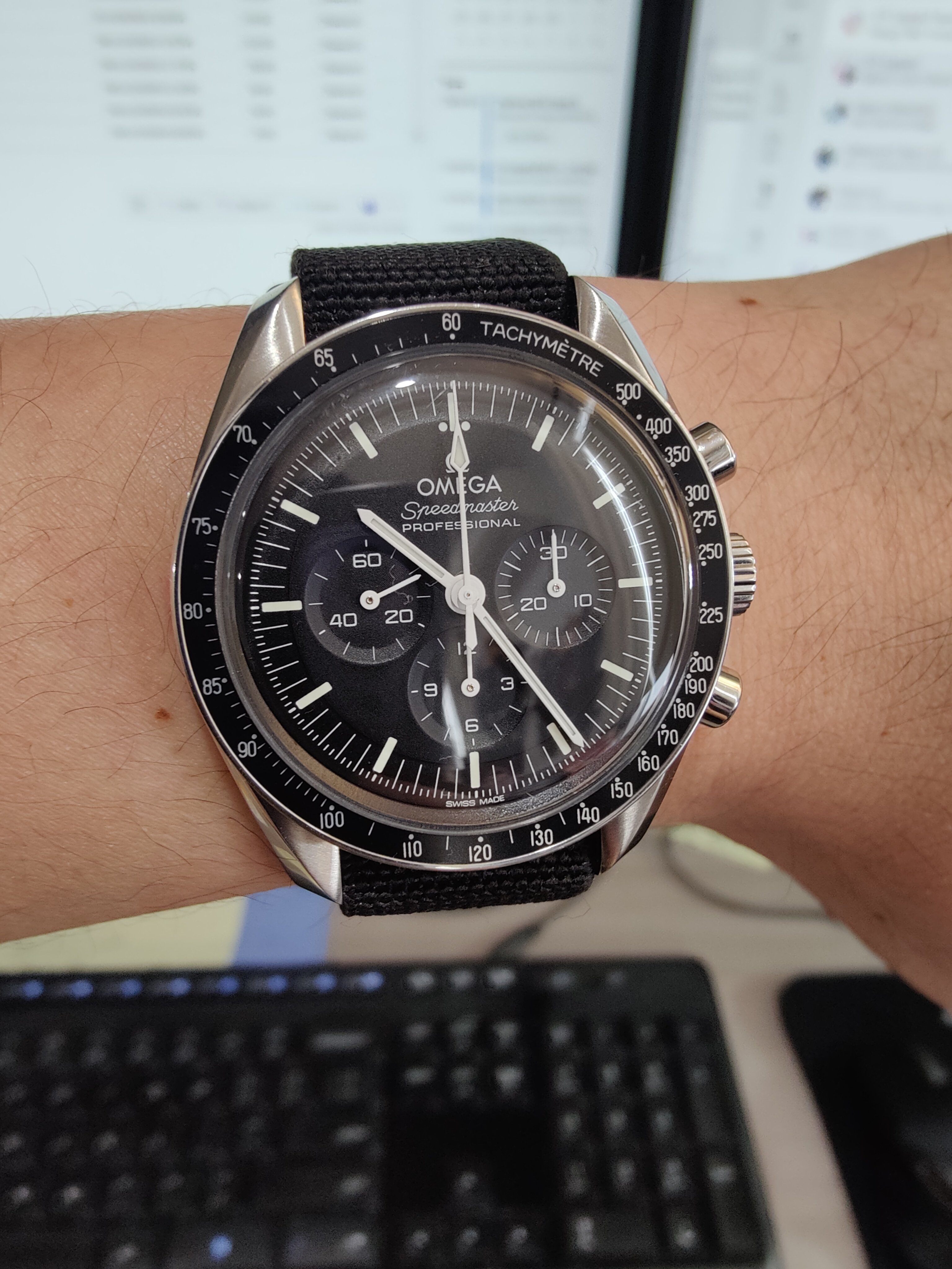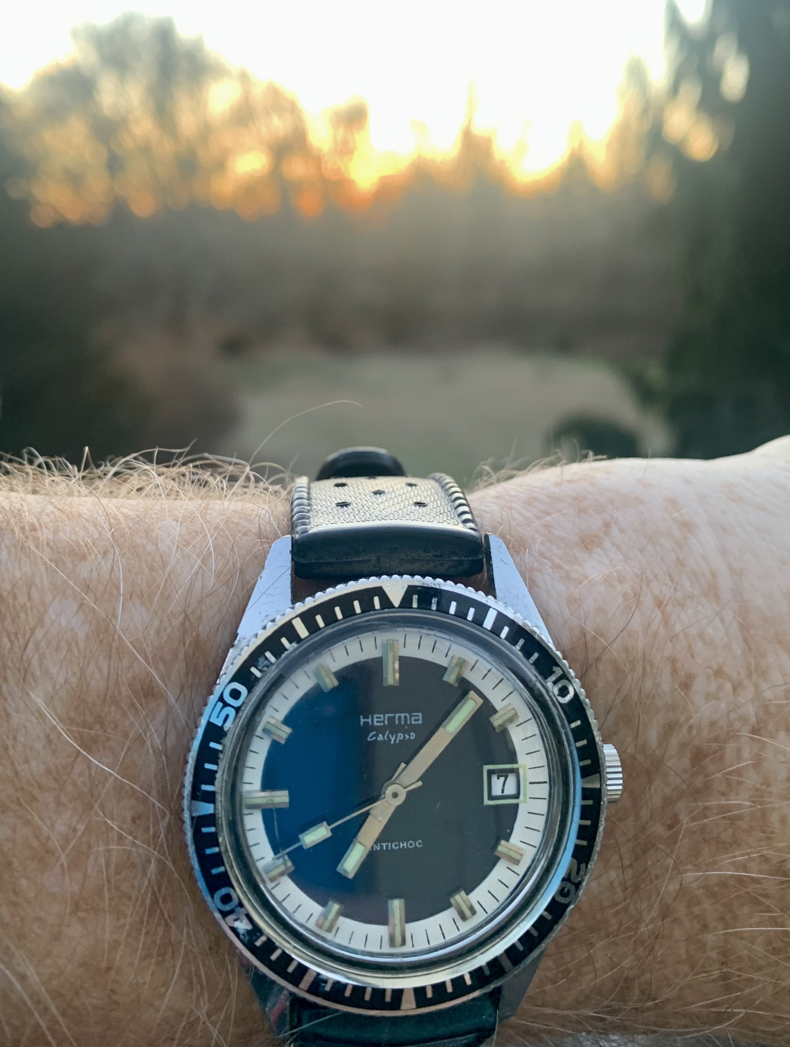 Not actually wearing it...yet. I'm seriously considering leaving this crystal on it, but I did order one just in case. This is called a type O, 1968. The same year OF's official pilot, Mad Dog started drinking DD coffee.