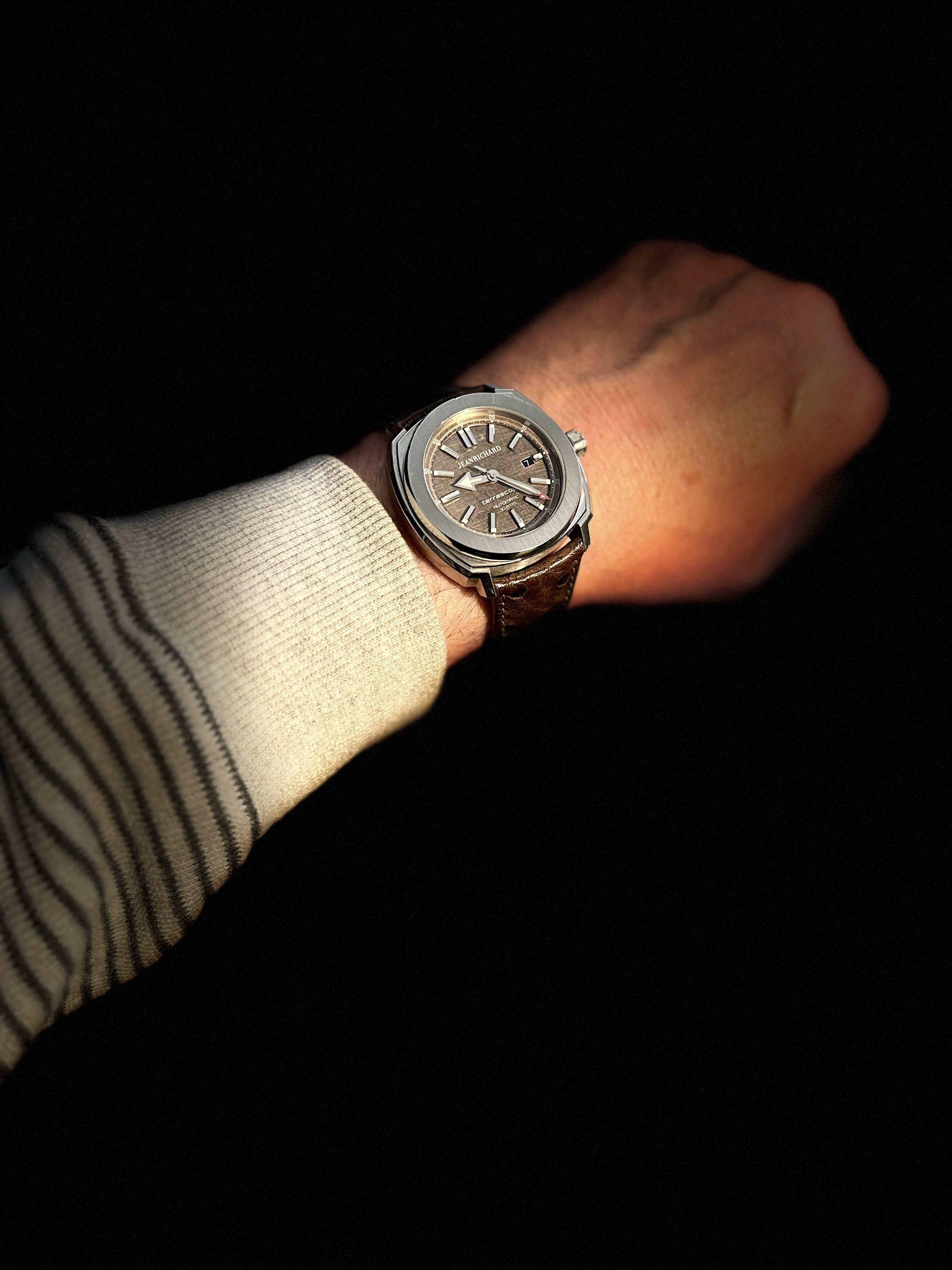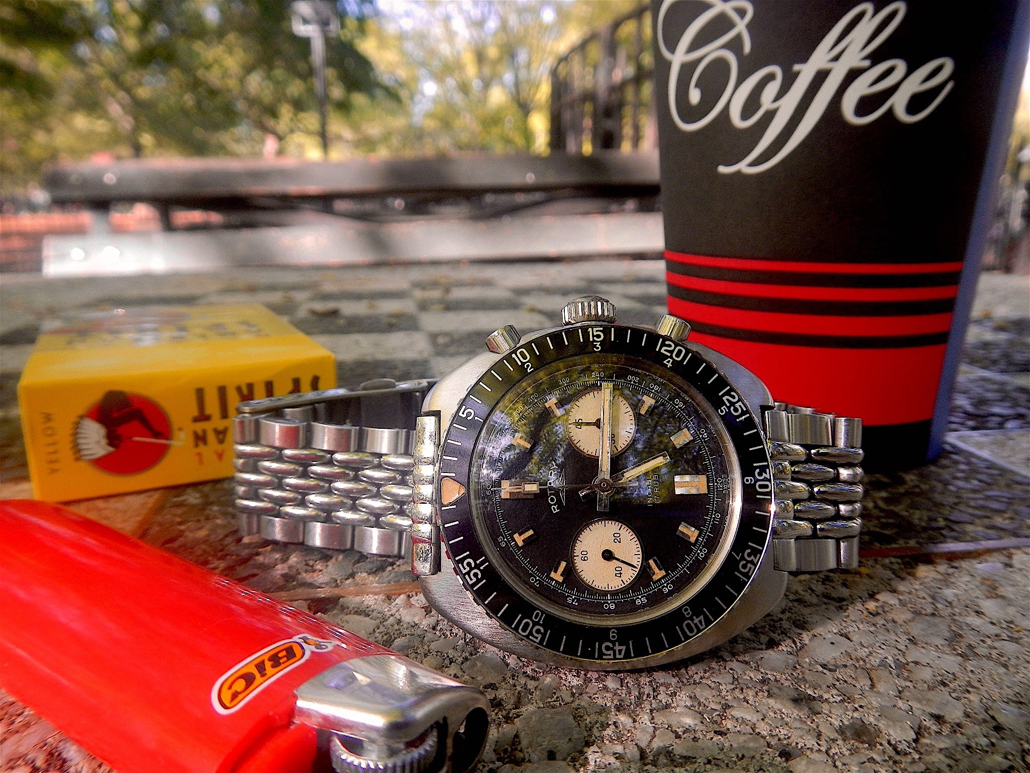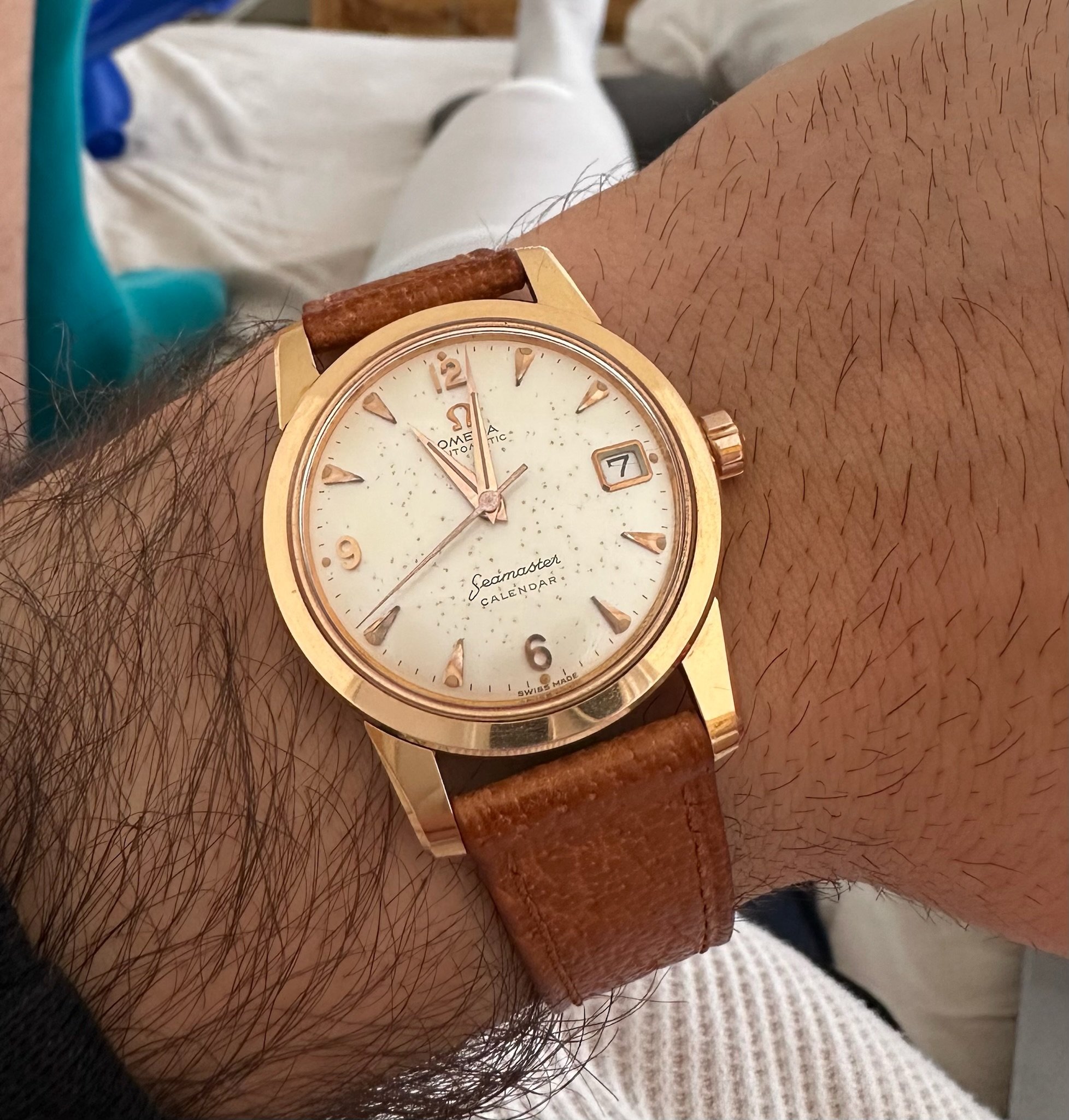 Not actually wearing it...yet. I'm seriously considering leaving this crystal on it, but I did order one just in case. This is called a type O, 1968. The same year OF's official pilot, Mad Dog started drinking DD coffee.