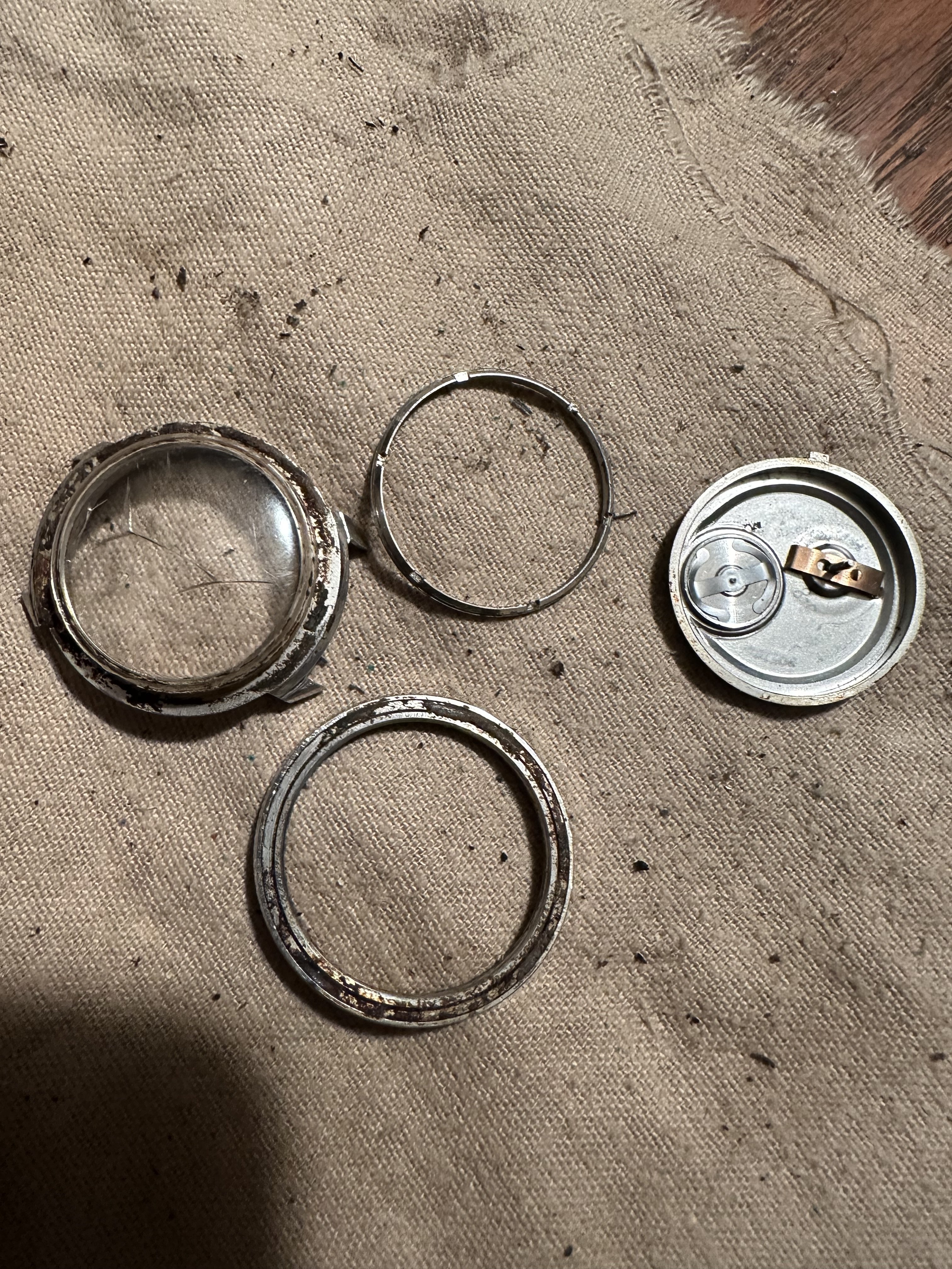 That was a dirty watch. This was my first Astronaut. The crystal and bezel are just friction fitted...and not terribly tight. It can't have any real water proof-ness. You can't ask for an easy crystal to replace.