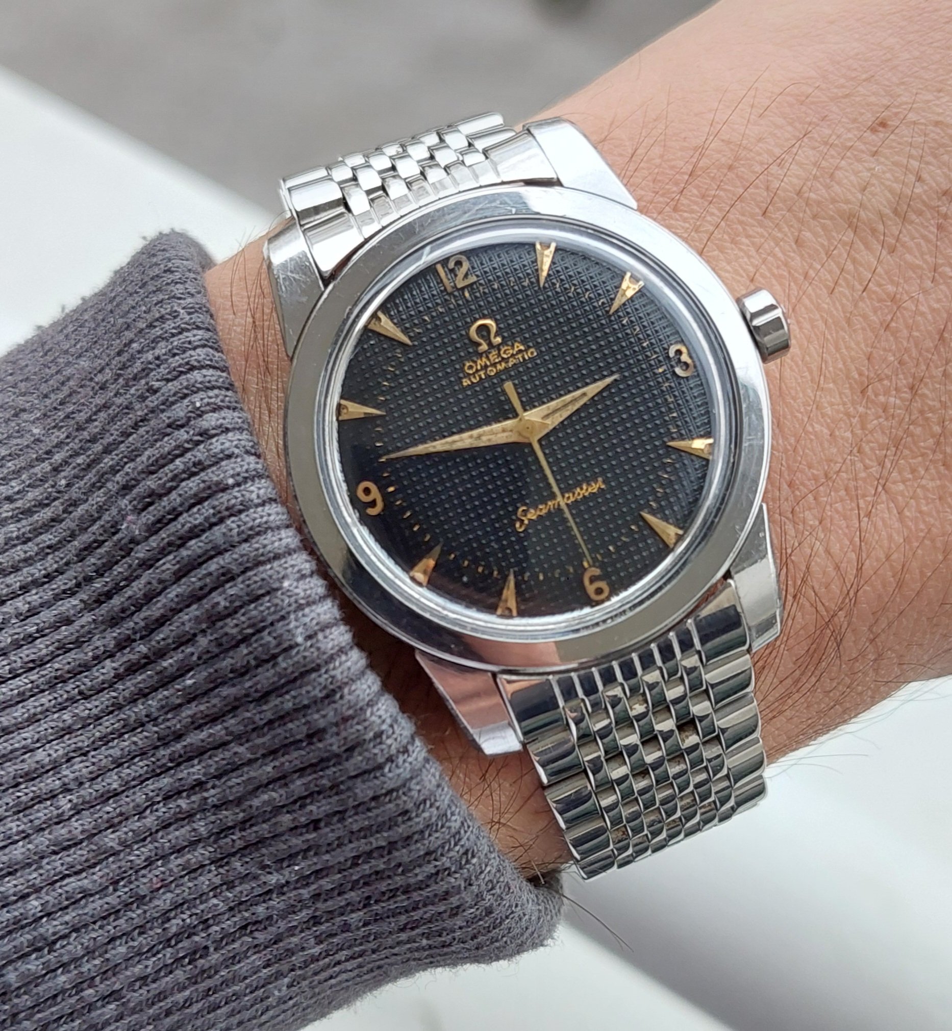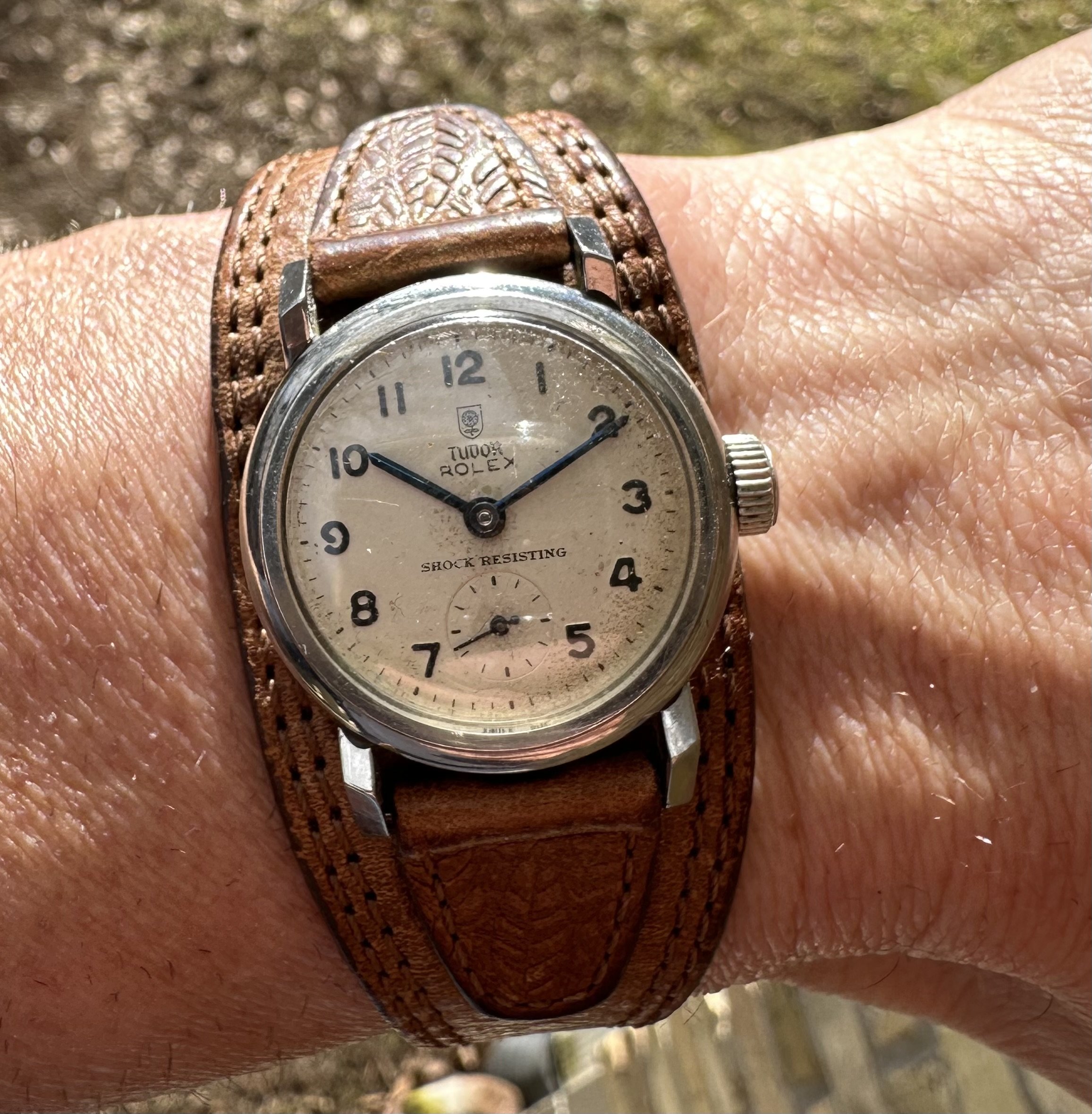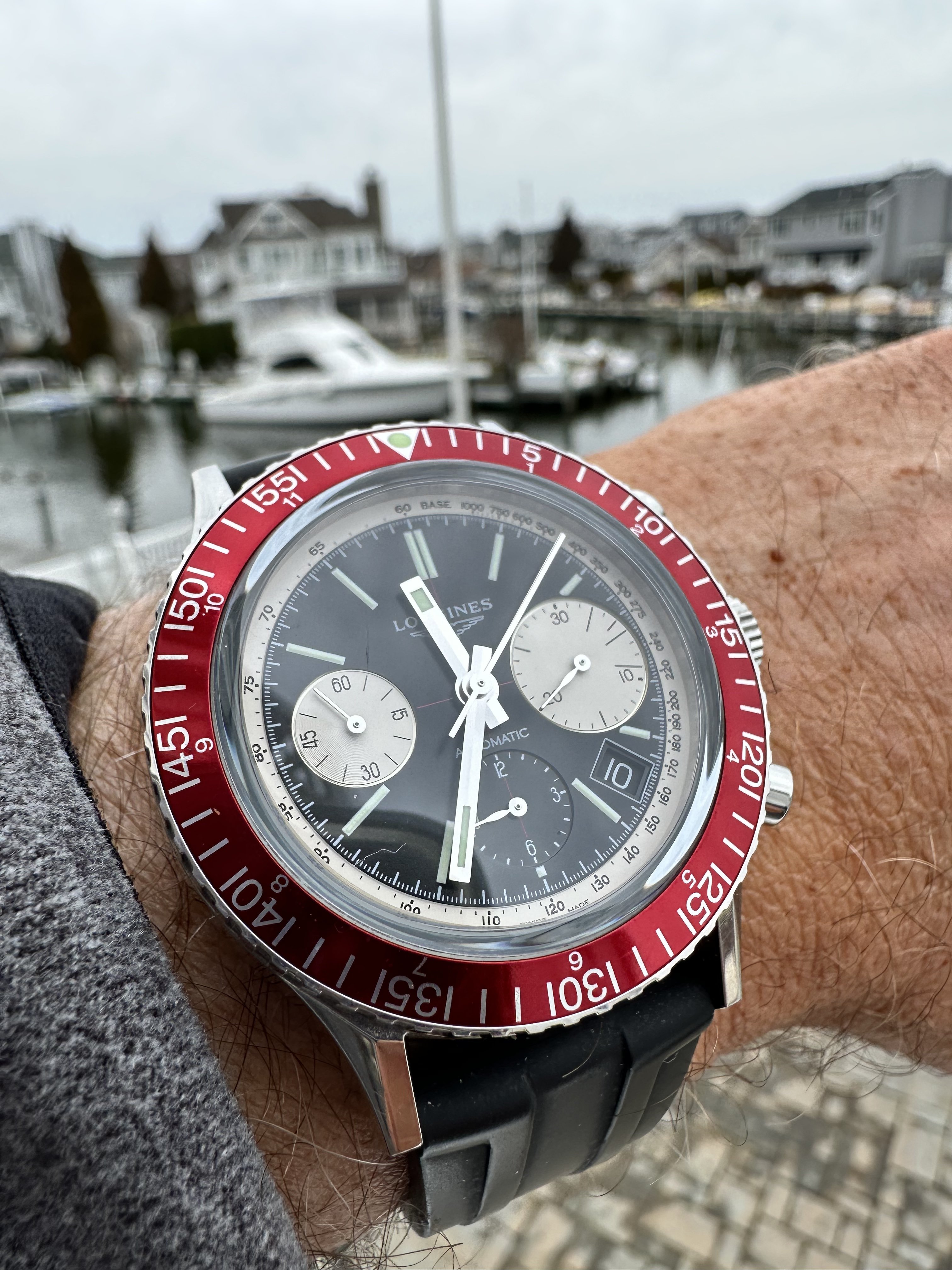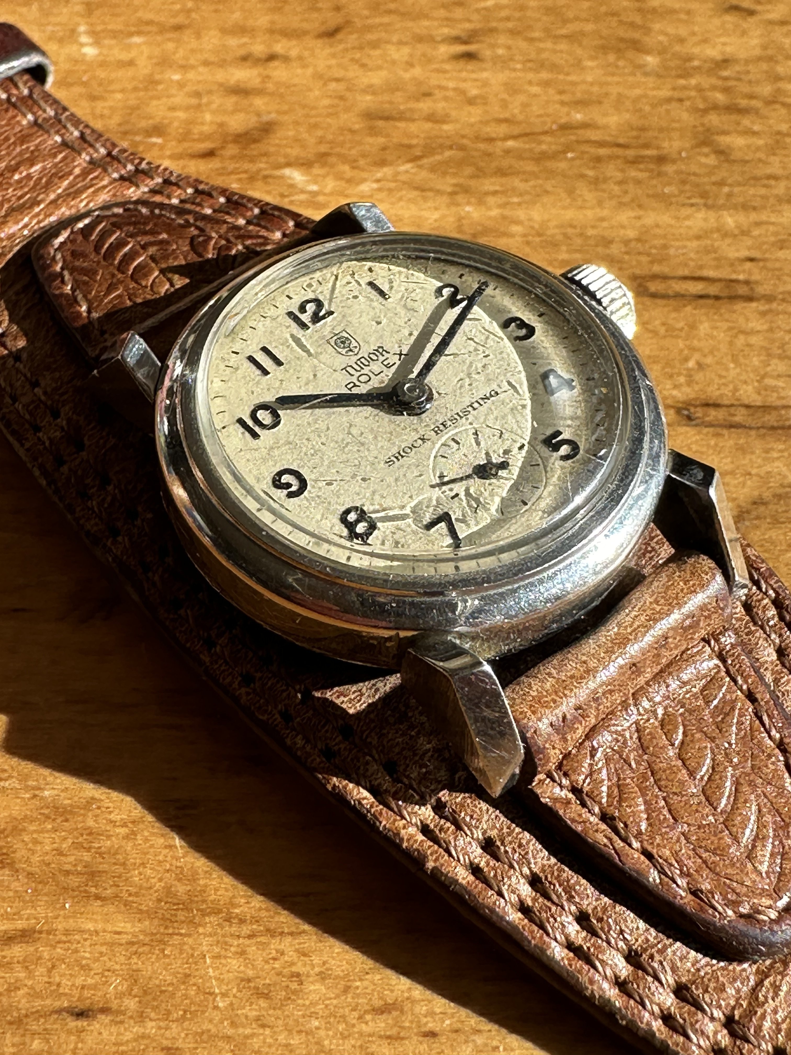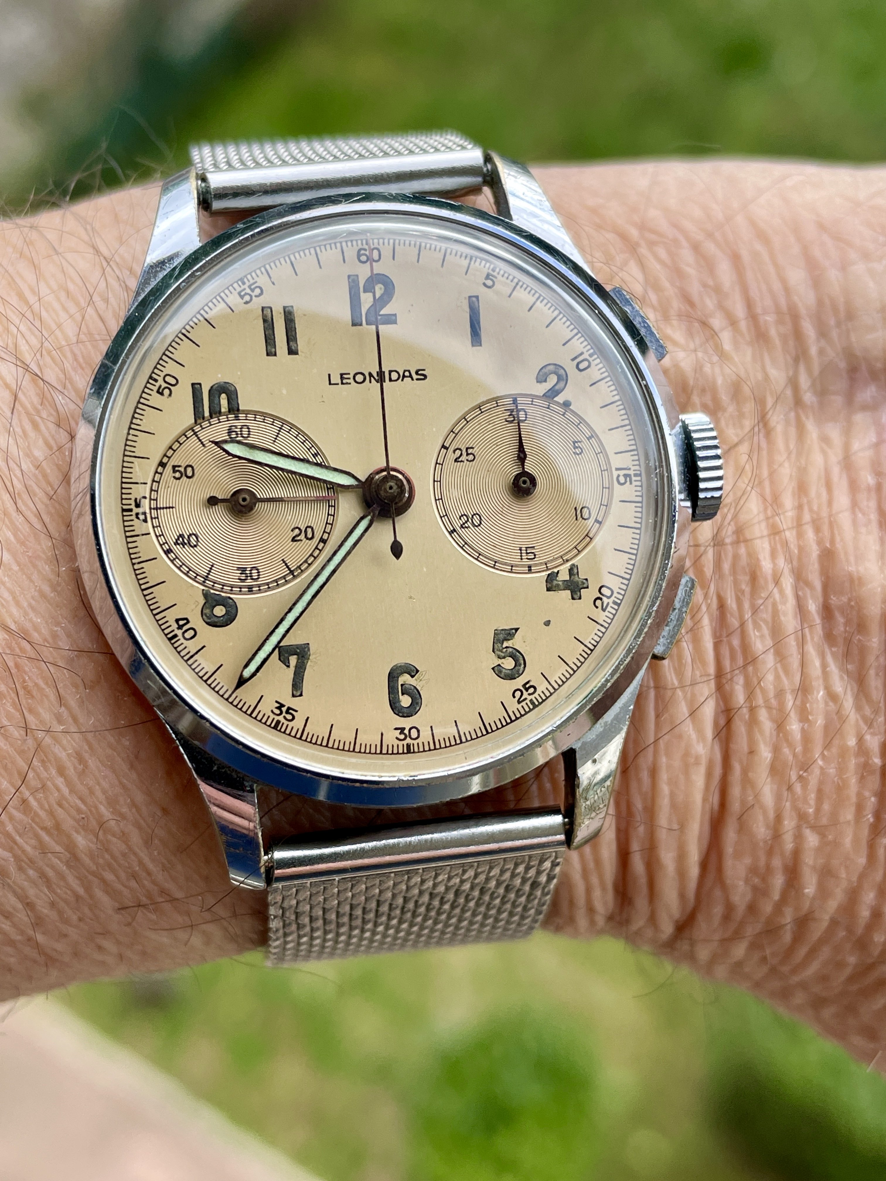 This Elgin jumbo chronographer was included at no charge in a recent deal. It had a broken pusher, so it’s pusher less until replacements arrive. I had a tough time finding other examples of this Val 7734. Anyone have one? There were at least 3 dial variations.