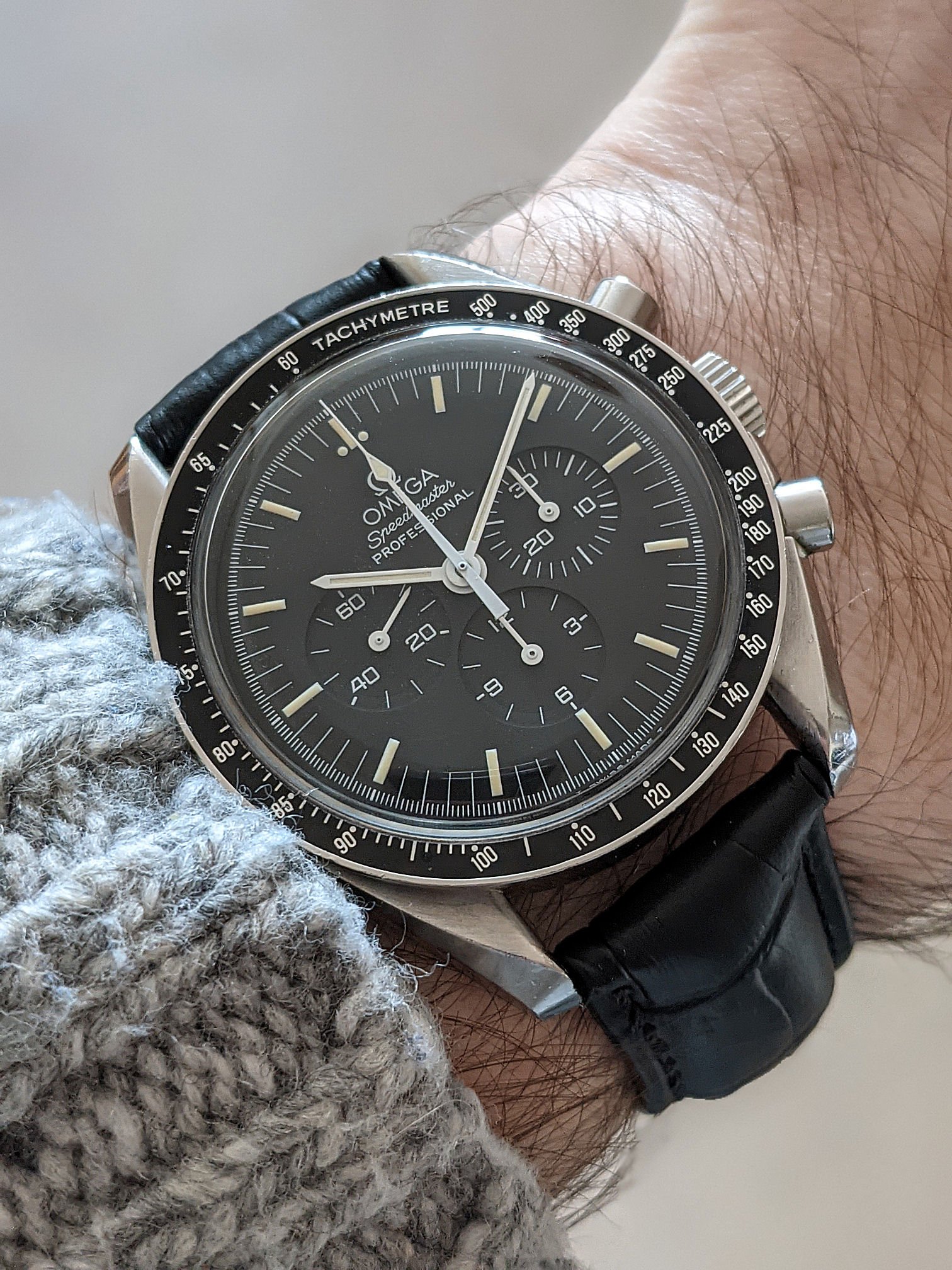 Posts 1,354 Likes 16,206 Fish70 ·Feb 17, 2024 Malthus101 What is that one? 1969 Speedmaster Professional Mark II "racing dial" ref 145.014