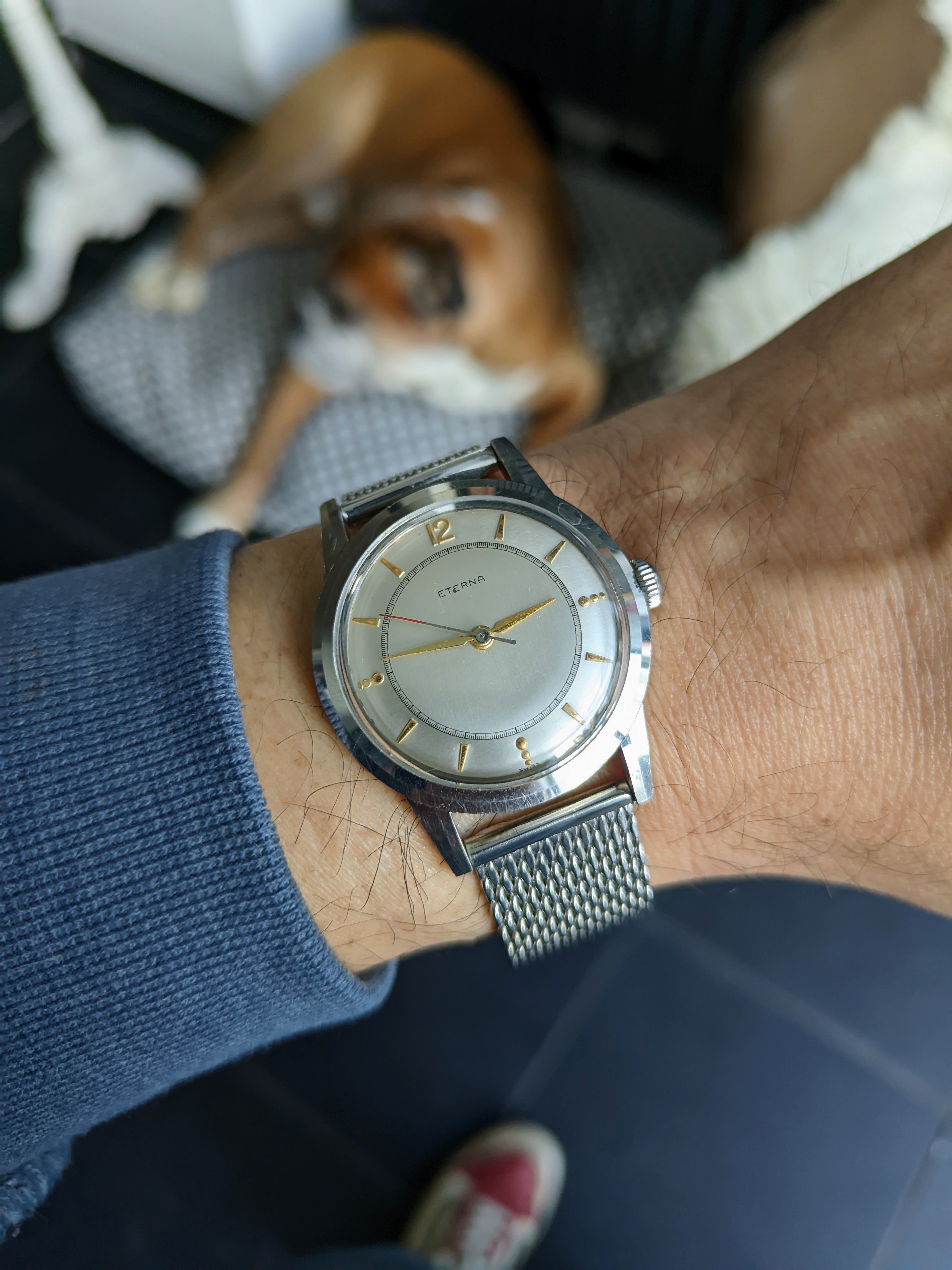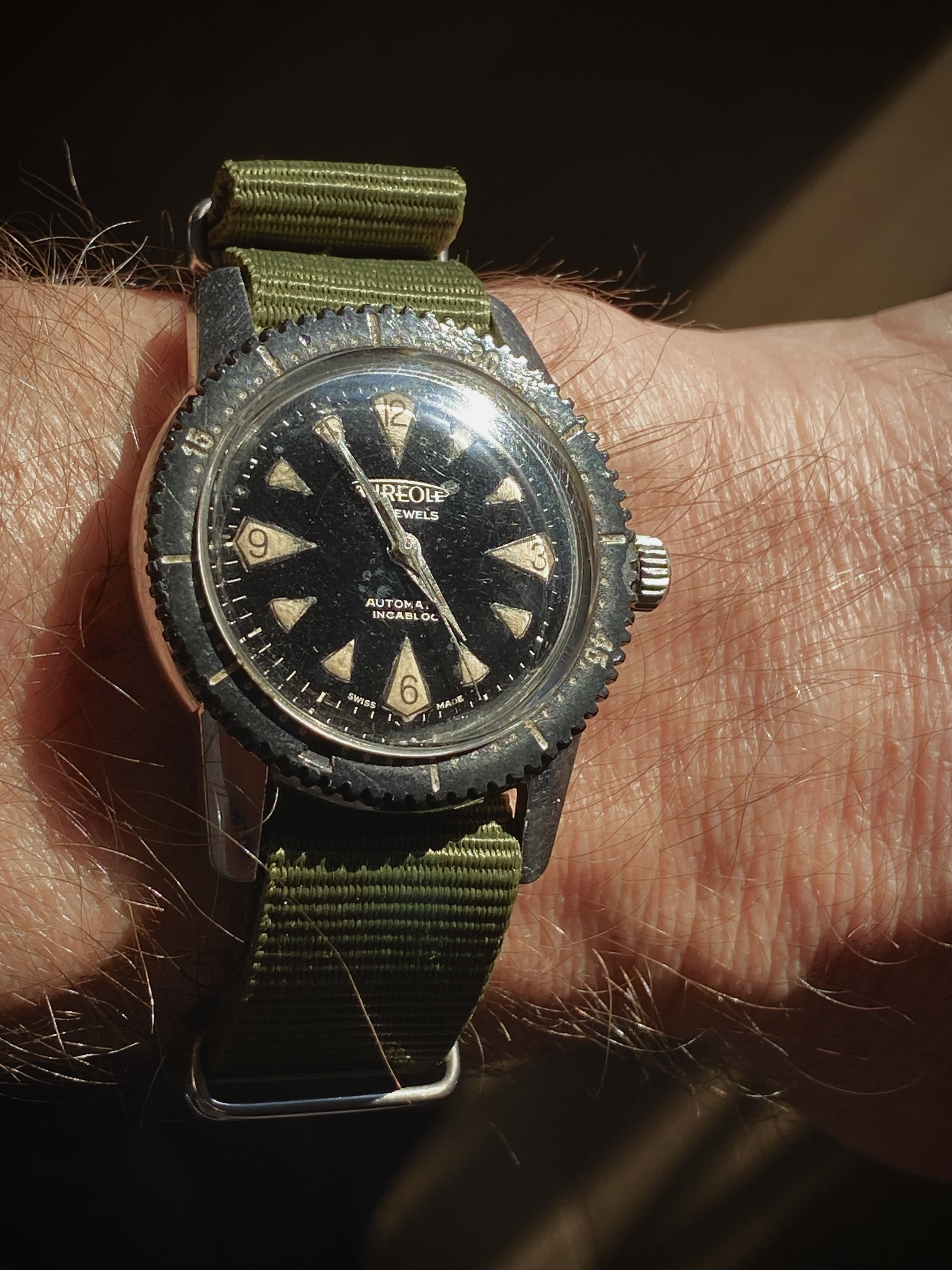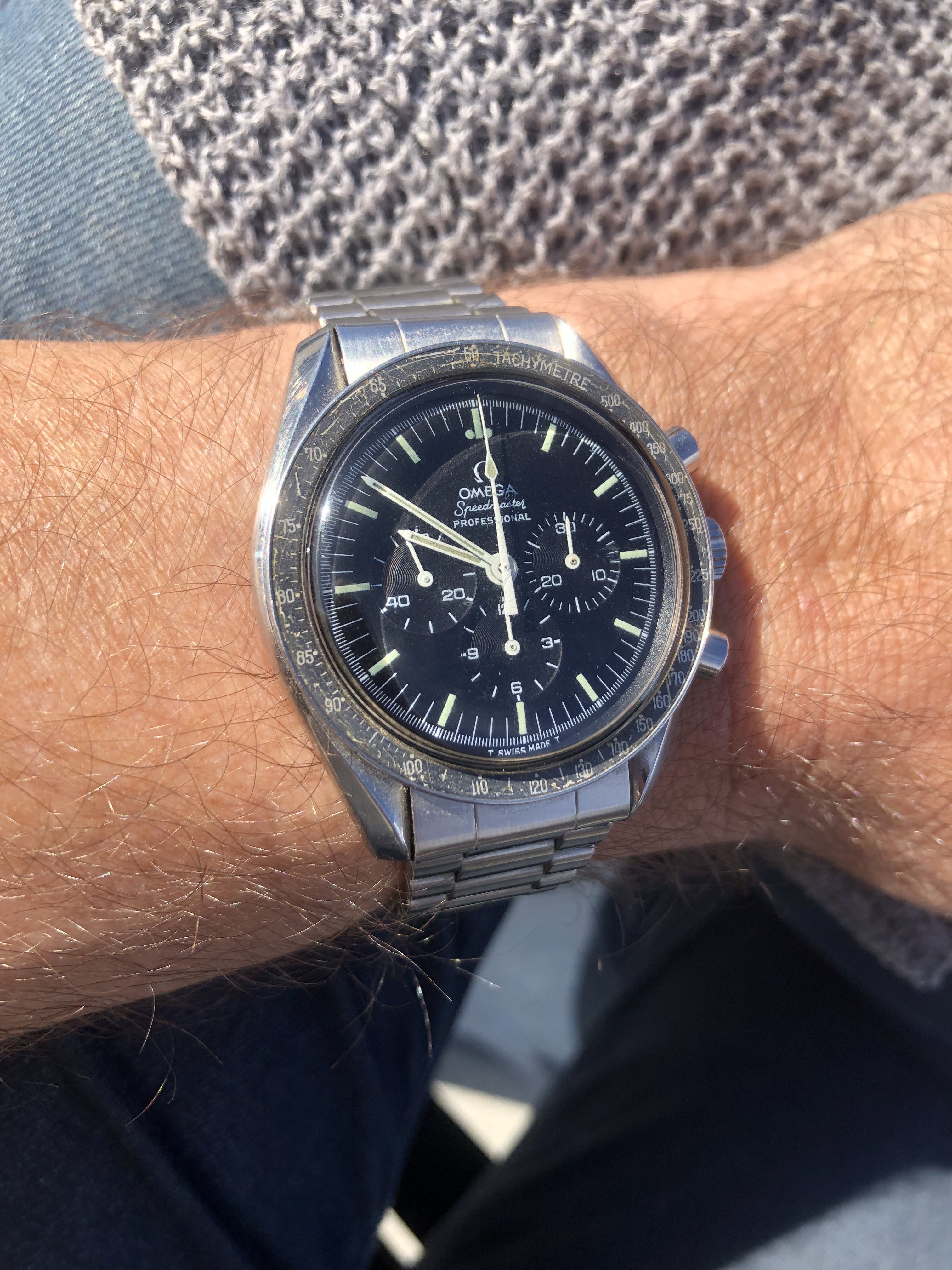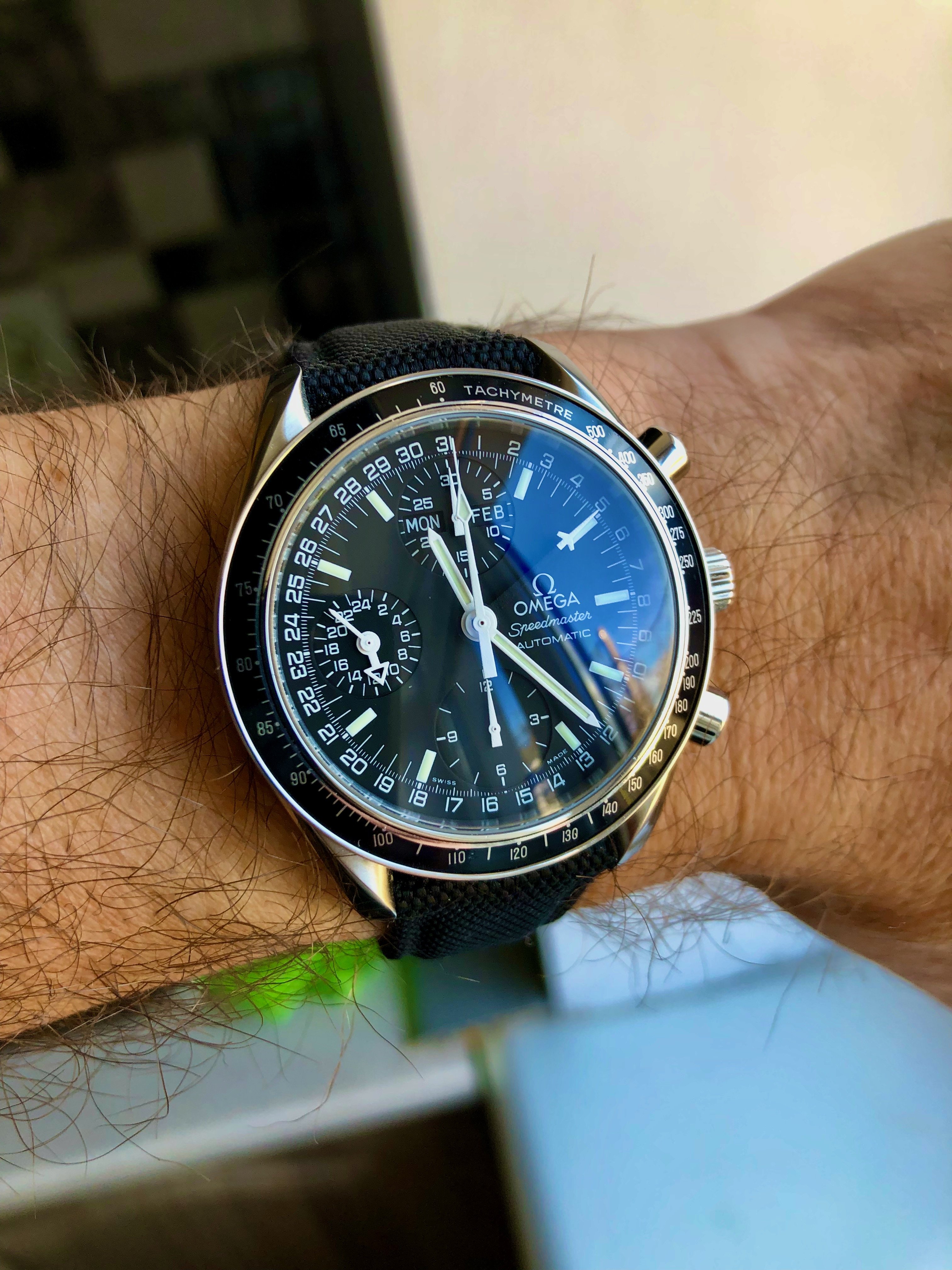 Speedy Day Date from 1998. It's never boring - will it run today +1 s/d or -10 s/d? Will the dial suck or will it be beautiful today in the current weather? Will the lume be amazing when walking into the shadows on a bright day or will it suck at night? Will be the bracelet cool today or will the sailcloth need to dress it down? Will the day of the month hand cover info on the dial today or not? 3520.50 is not a watch - it's a relationship 😉.