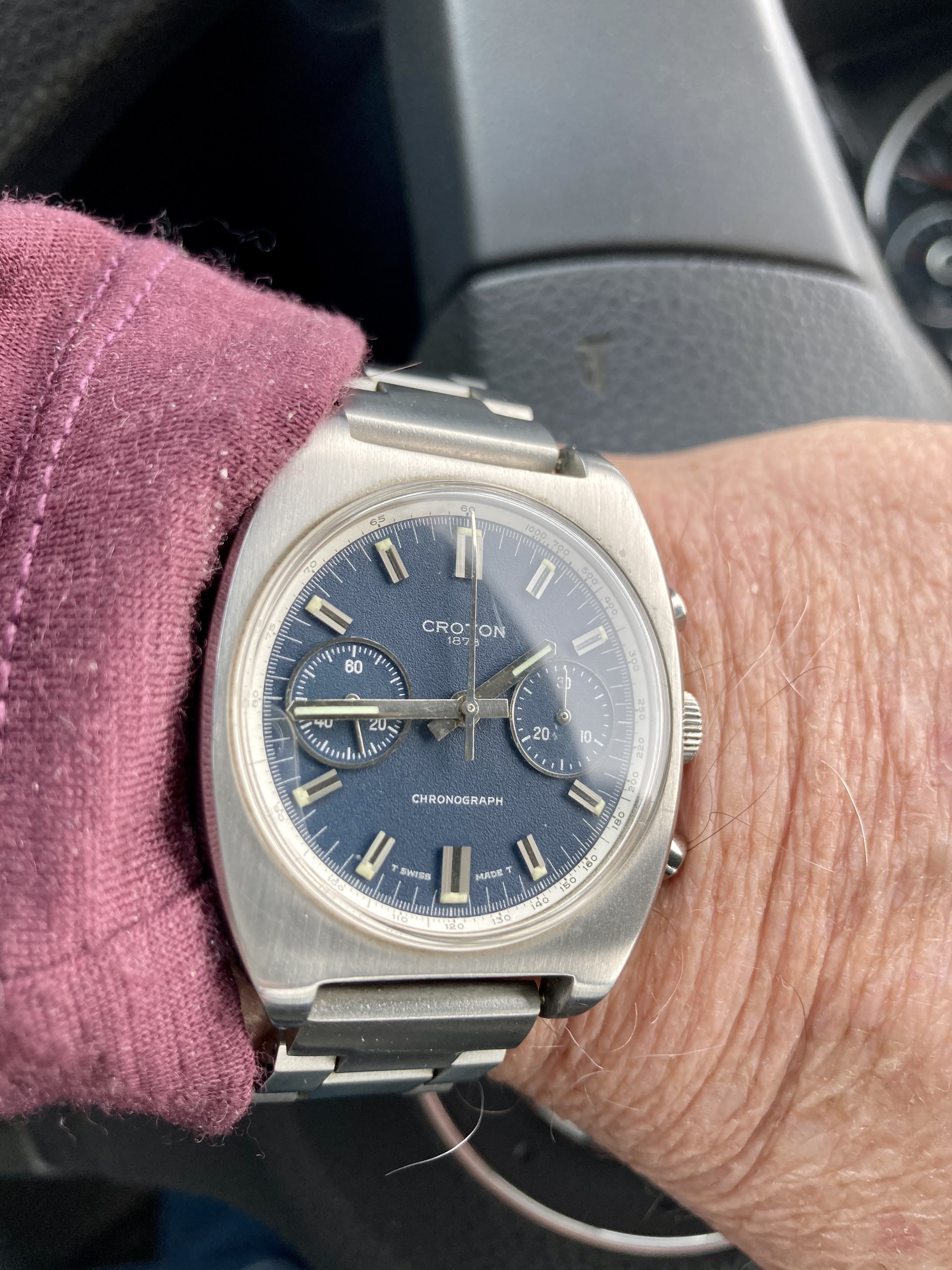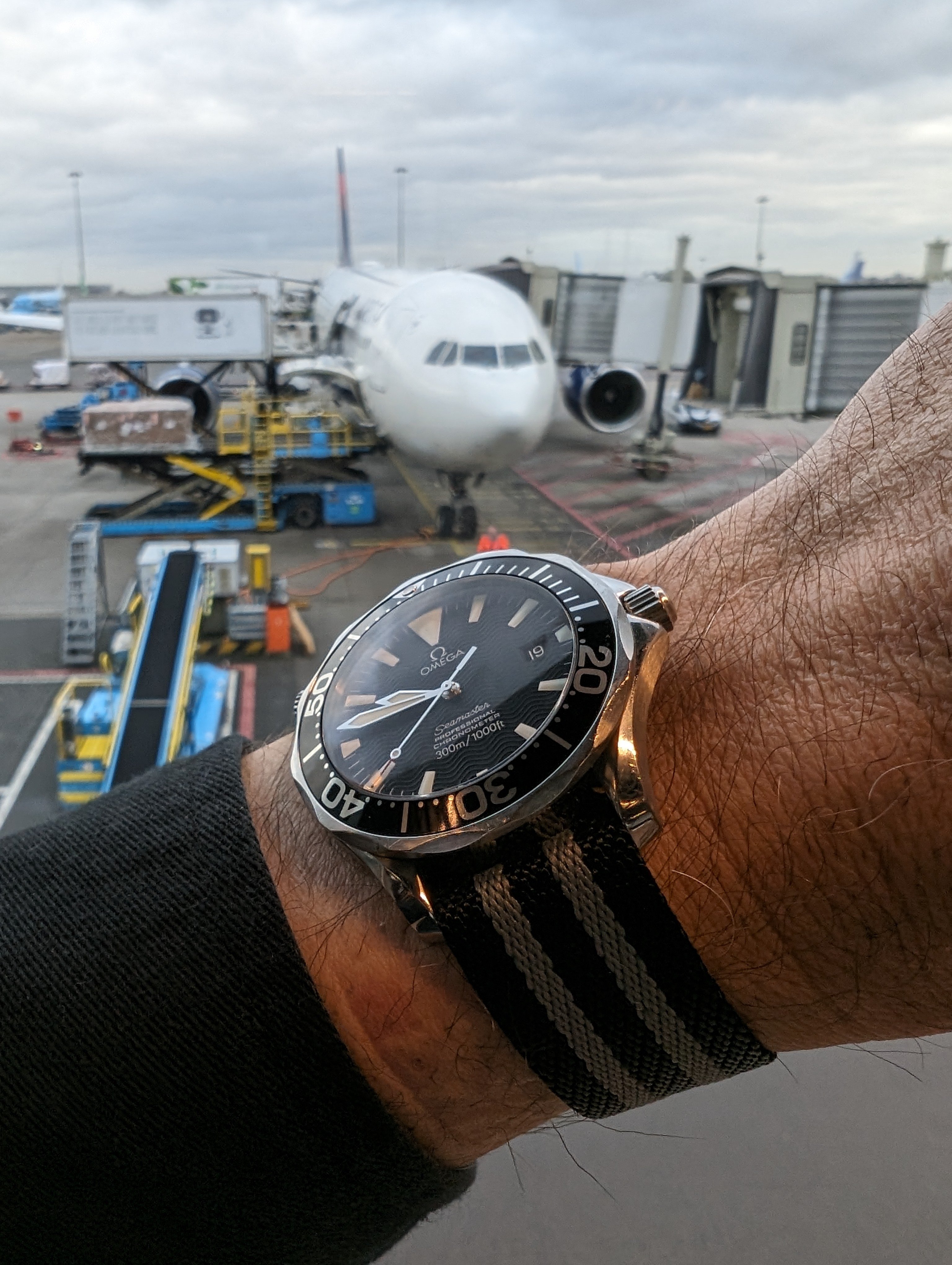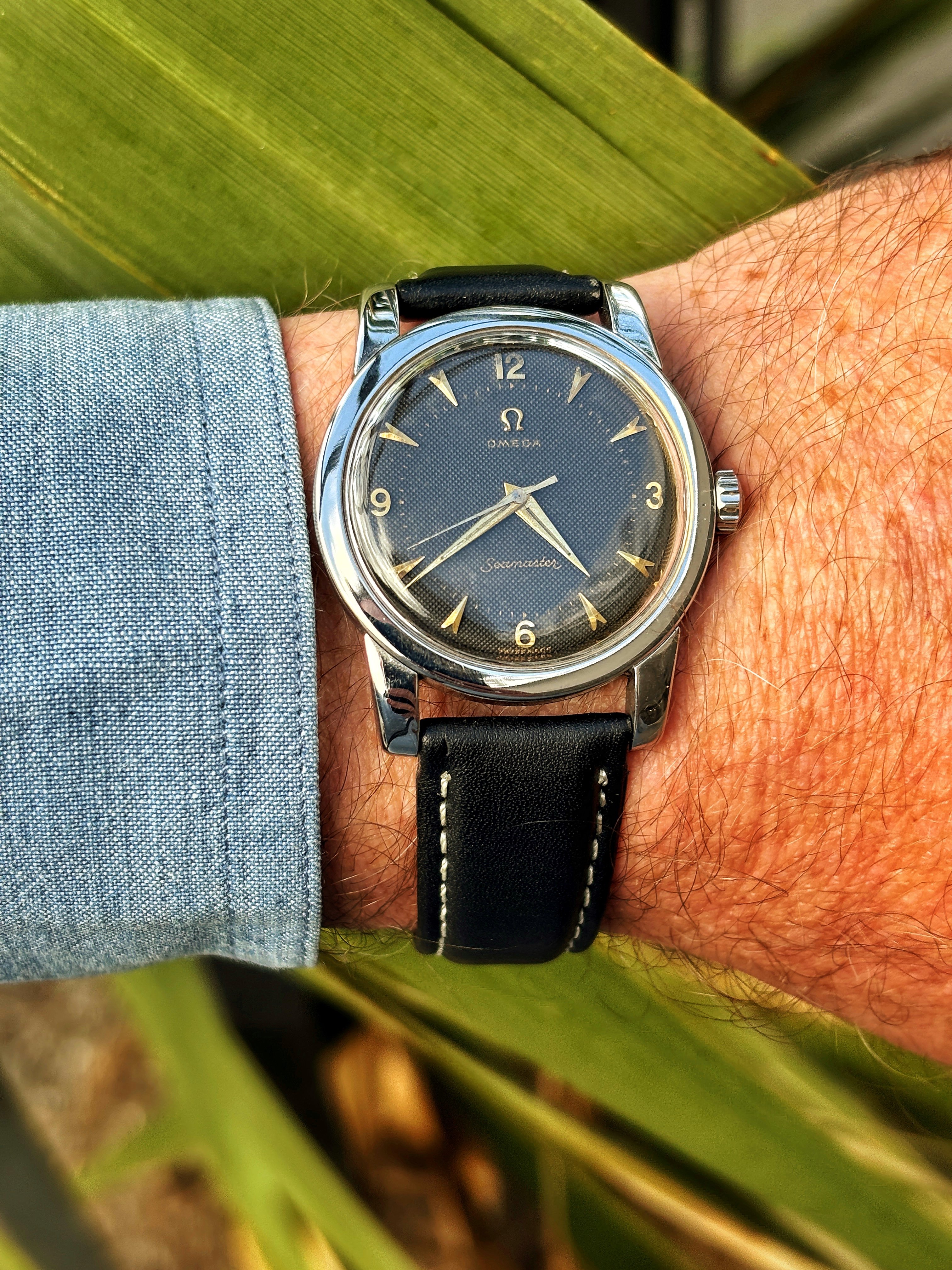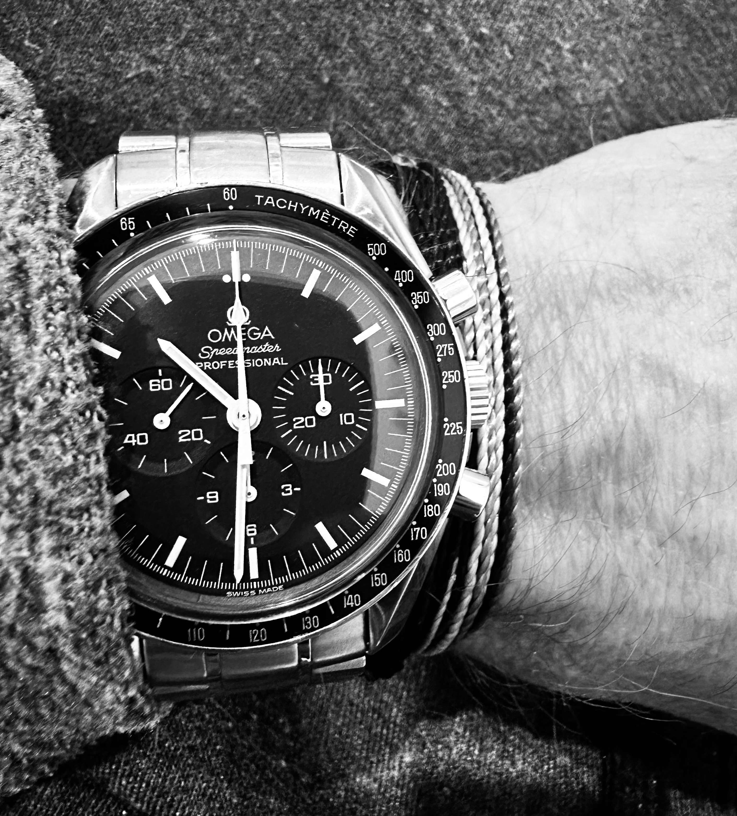 Speedy Day Date from 1998. It's never boring - will it run today +1 s/d or -10 s/d? Will the dial suck or will it be beautiful today in the current weather? Will the lume be amazing when walking into the shadows on a bright day or will it suck at night? Will be the bracelet cool today or will the sailcloth need to dress it down? Will the day of the month hand cover info on the dial today or not? 3520.50 is not a watch - it's a relationship 😉.