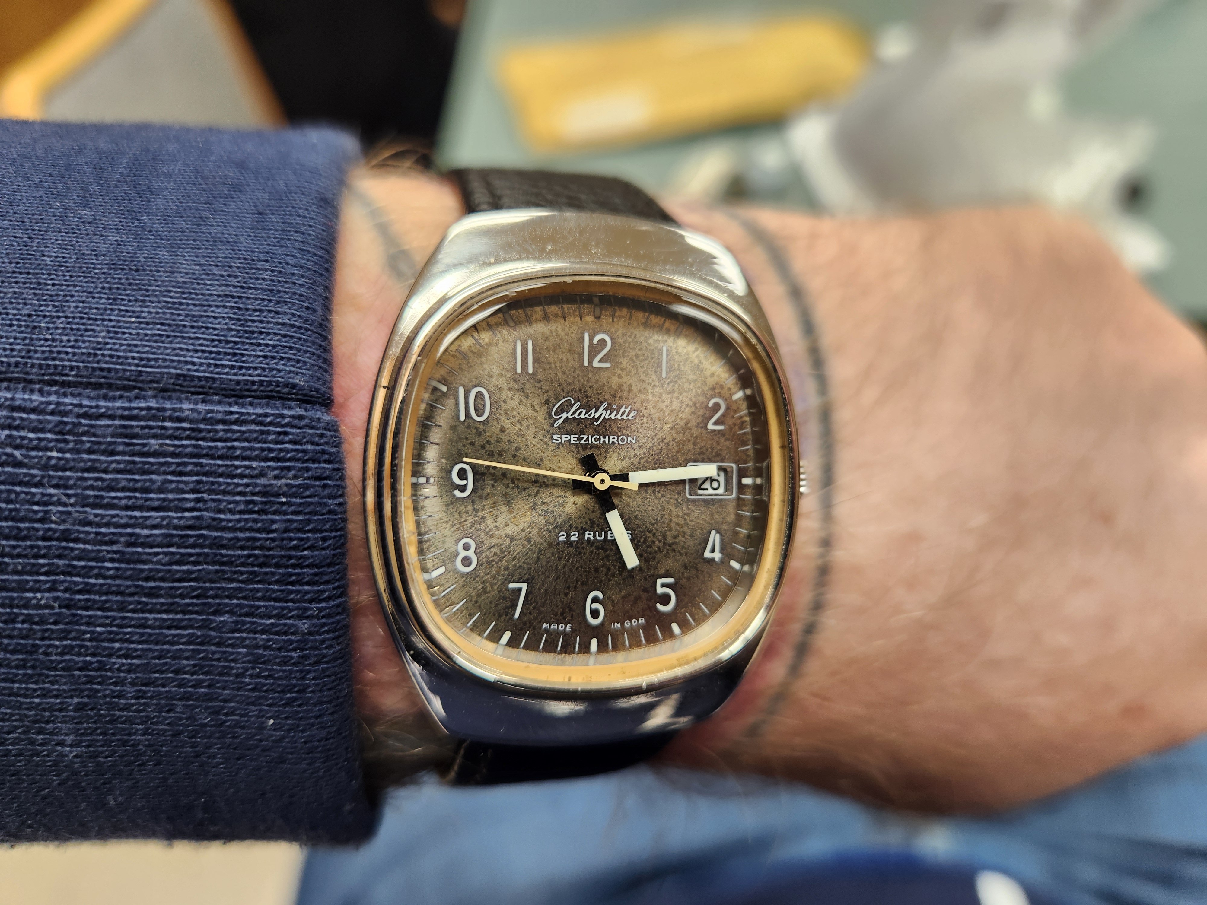 Posts 892 Likes 1,634 Bruce235 ·Feb 22, 2024 samweldspoorly Got a vintage Spezichron today from Hungary! The dial on this thing is wild! Great case design too.