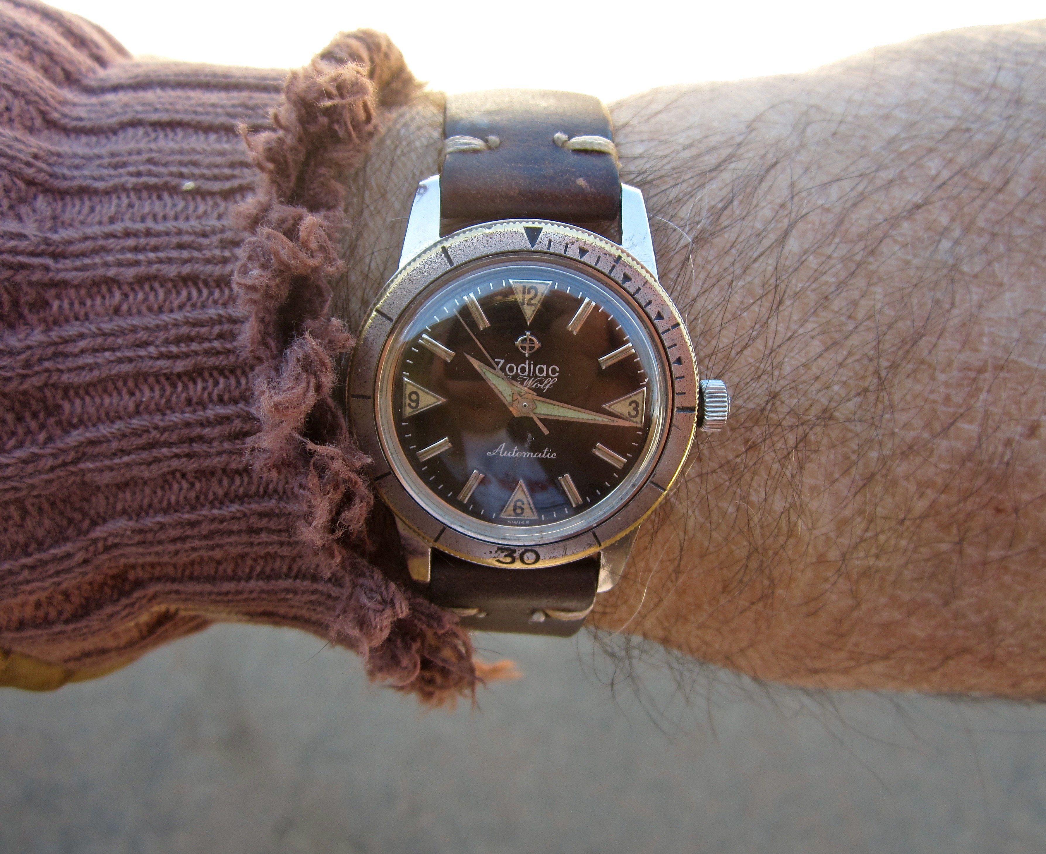 What's the date of manufacture for this lovely Zodiac SW of yours? Since the hands lack the spine I am assuming 1962 or earlier.