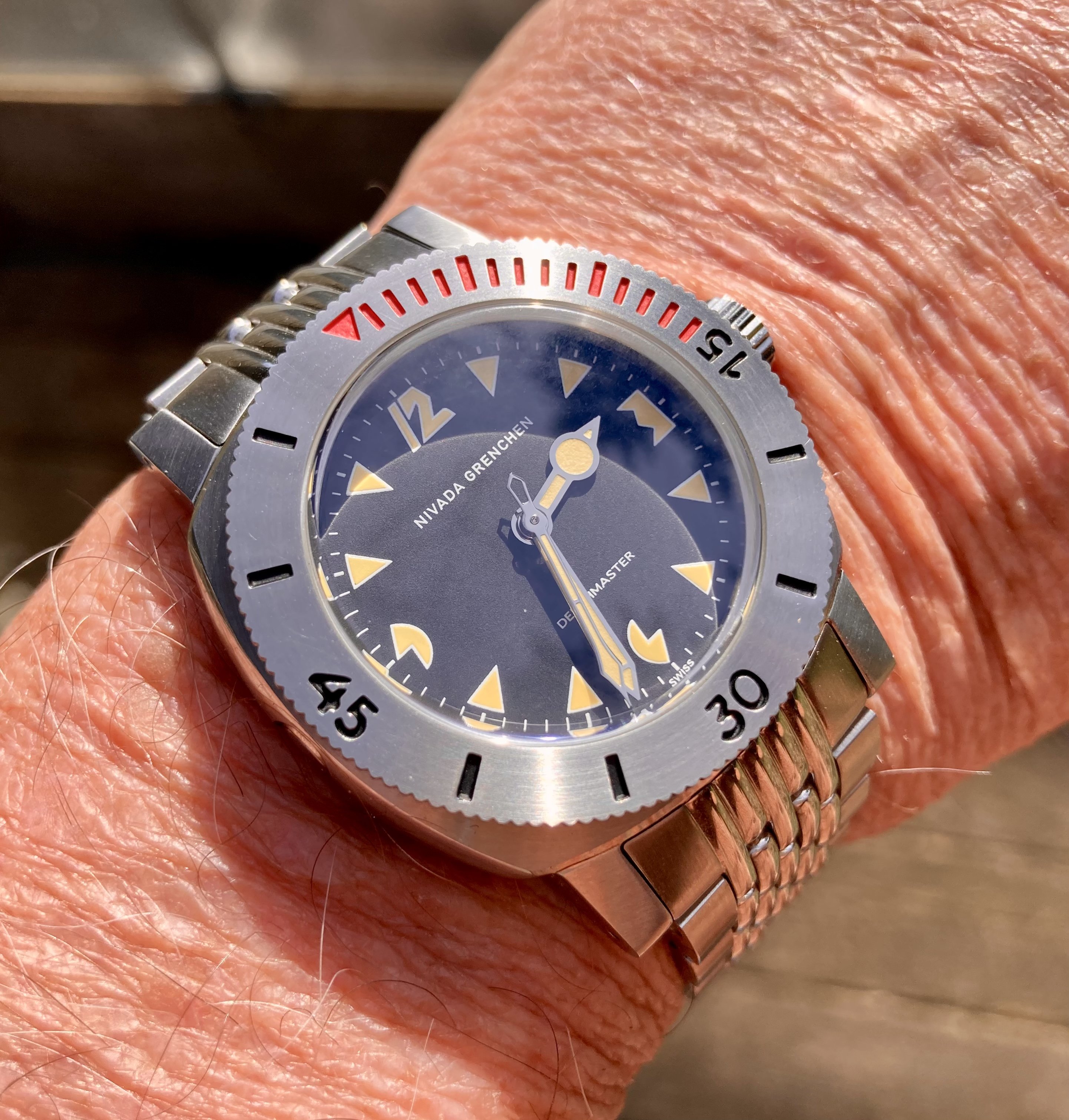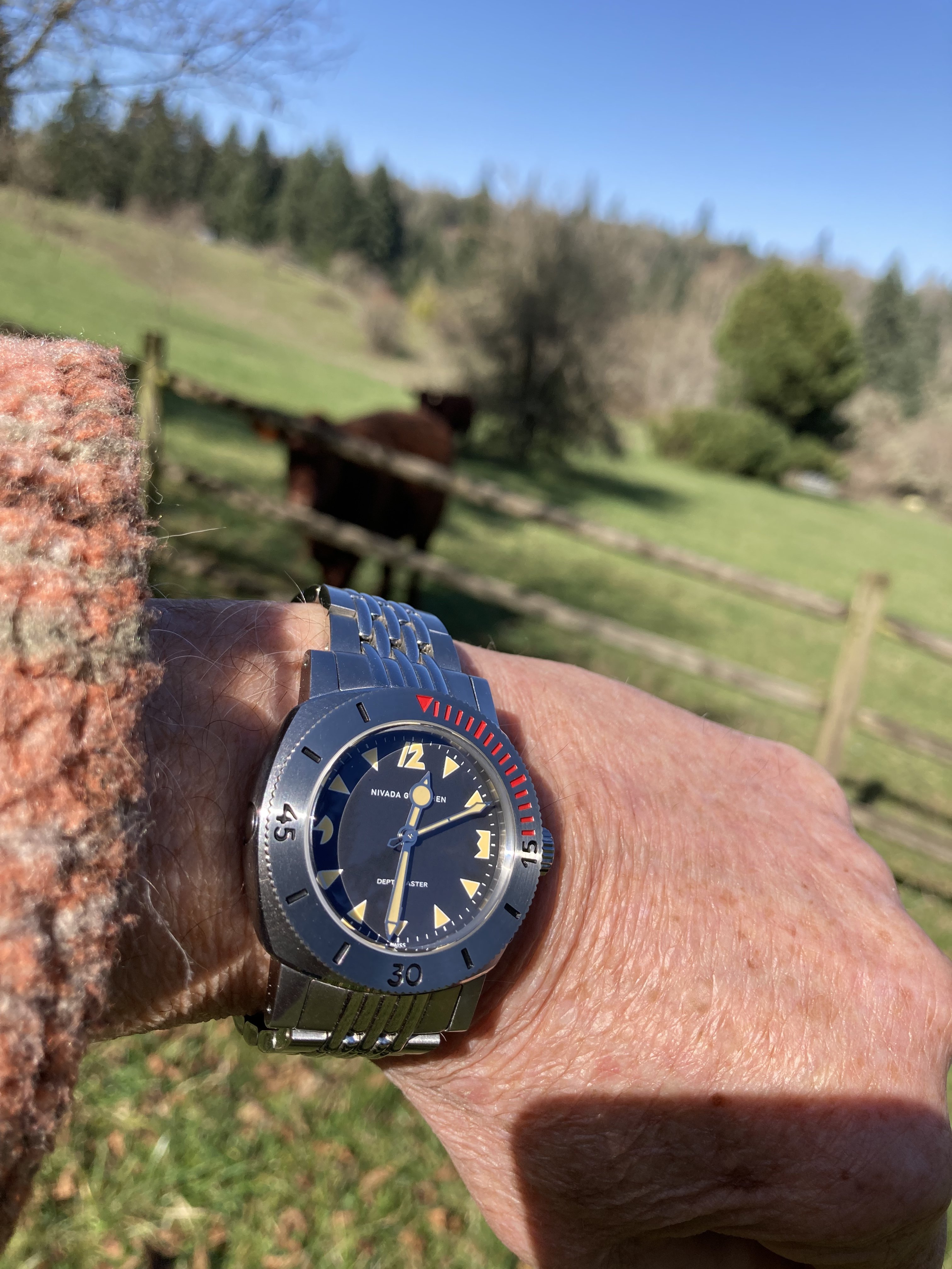 That's a photo from last summer. Sometimes I cheat when I can't get a nice shot. But I did wear it about half the day. And that watch is about to head back to the bank.