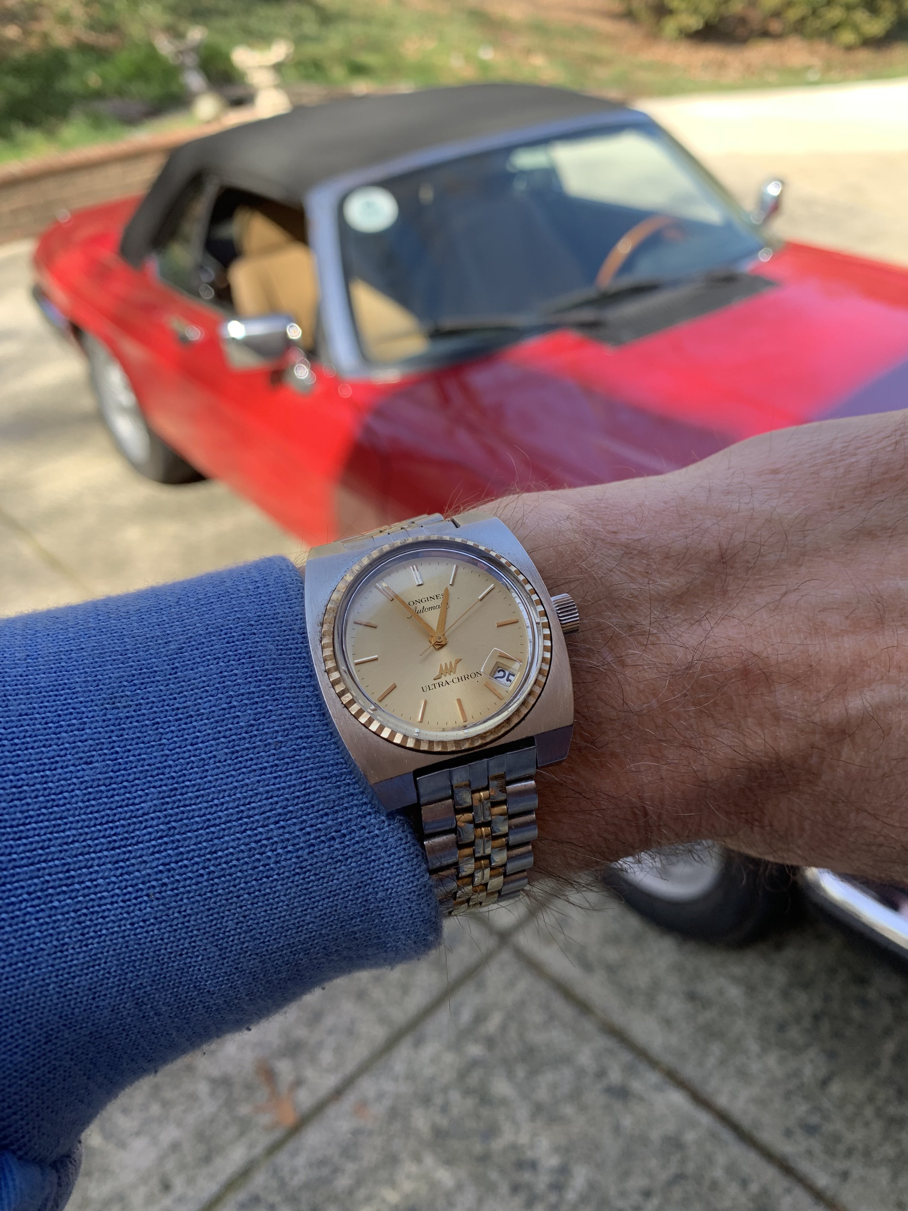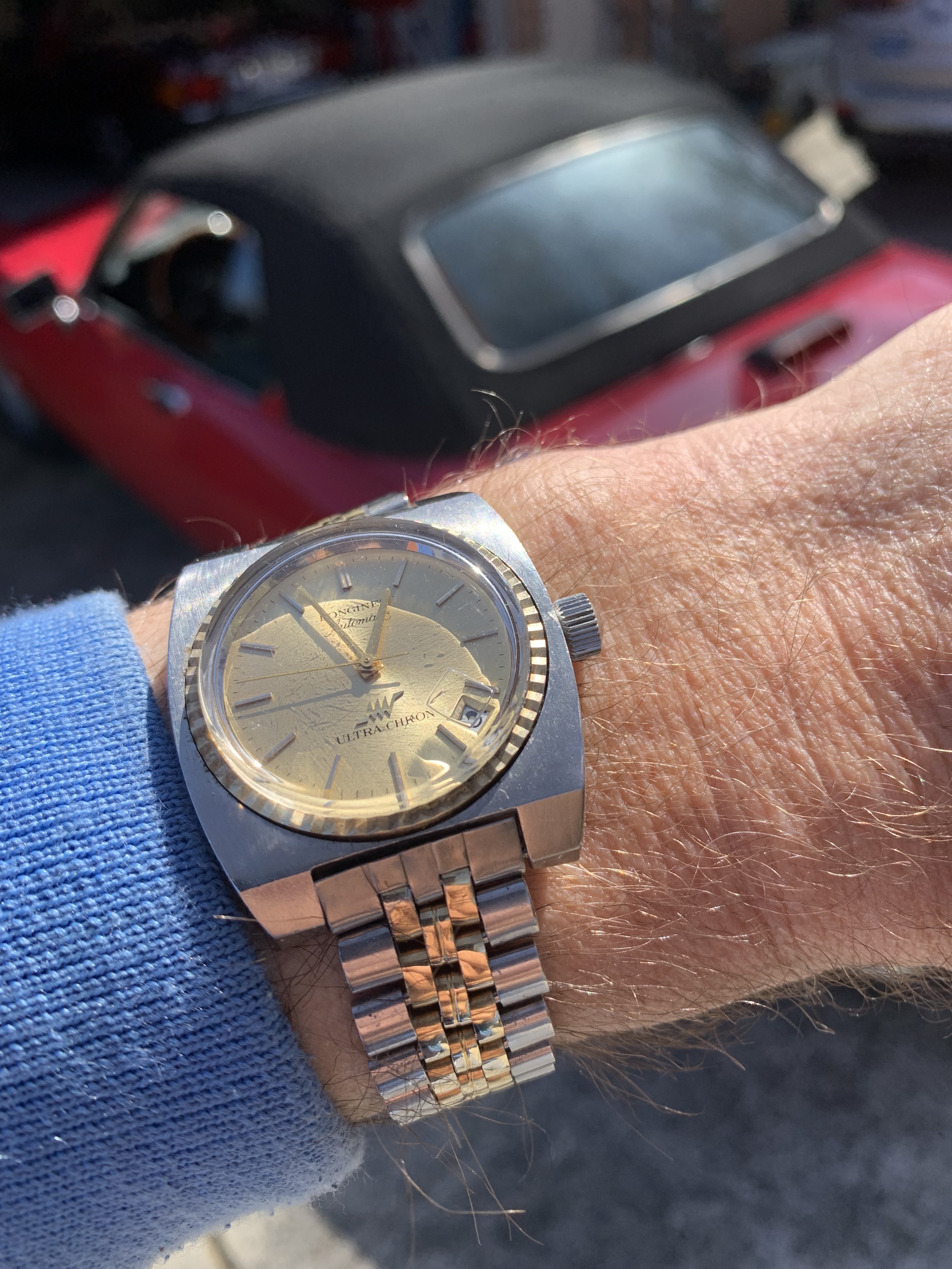Posts 2,160 Likes 24,830 Baz9614 ·Feb 25, 2024 Enjoying my 1966 guilt SM300BT with 1506/16 bracelet and end links 👍