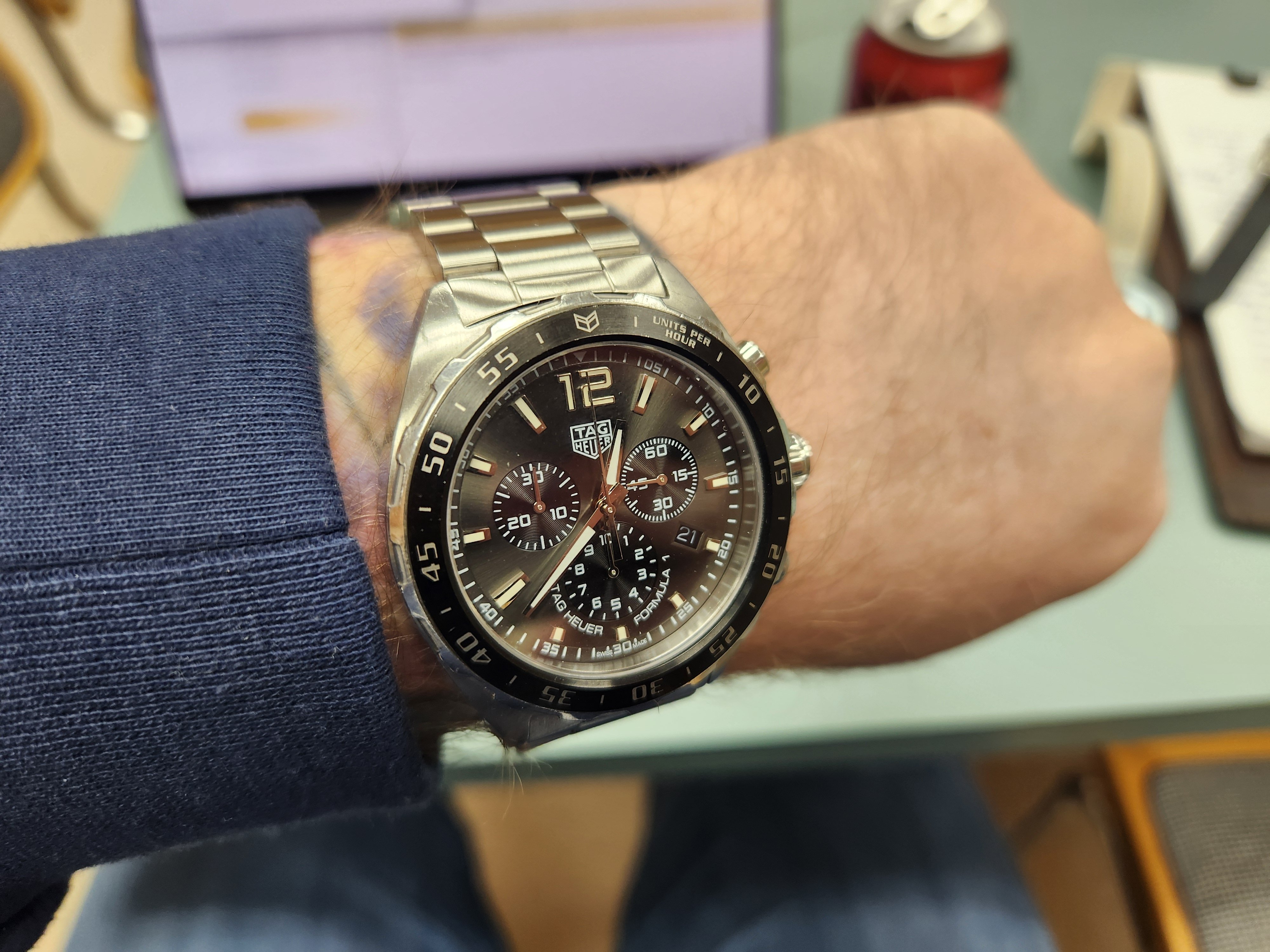 Posts 488 Likes 2,016 samweldspoorly ·Feb 29, 2024 Friends let me try on his TAG Formula 1. Pretty interesting piece. I like the flying .1sec sub dial.