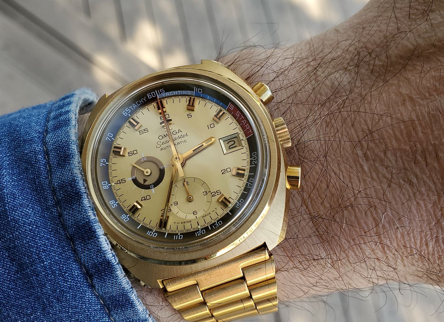 Posts 488 Likes 2,016 samweldspoorly ·Mar 2, 2024 Got to try on a friend's vintage Heuer Autavia. Super cool to see one of these.