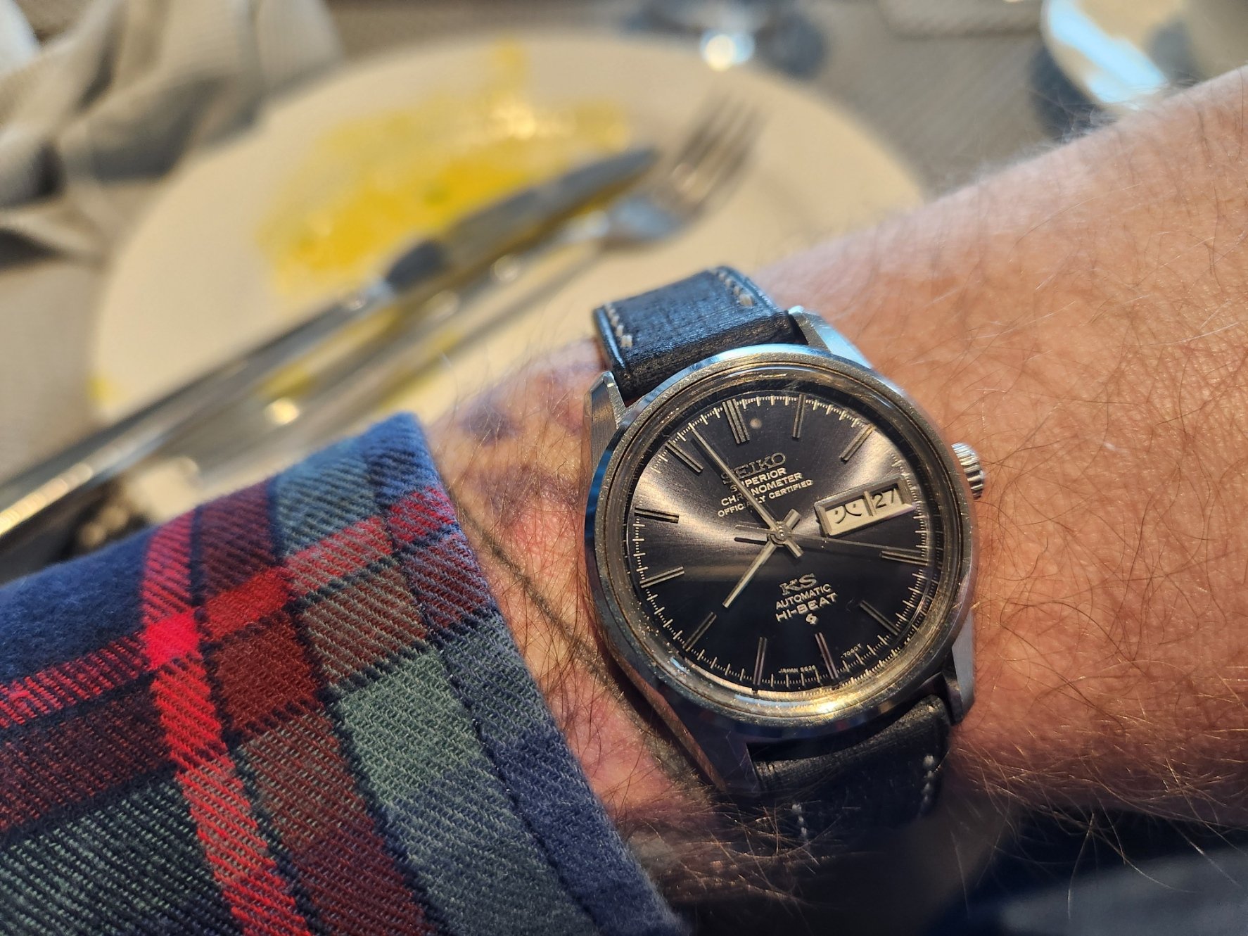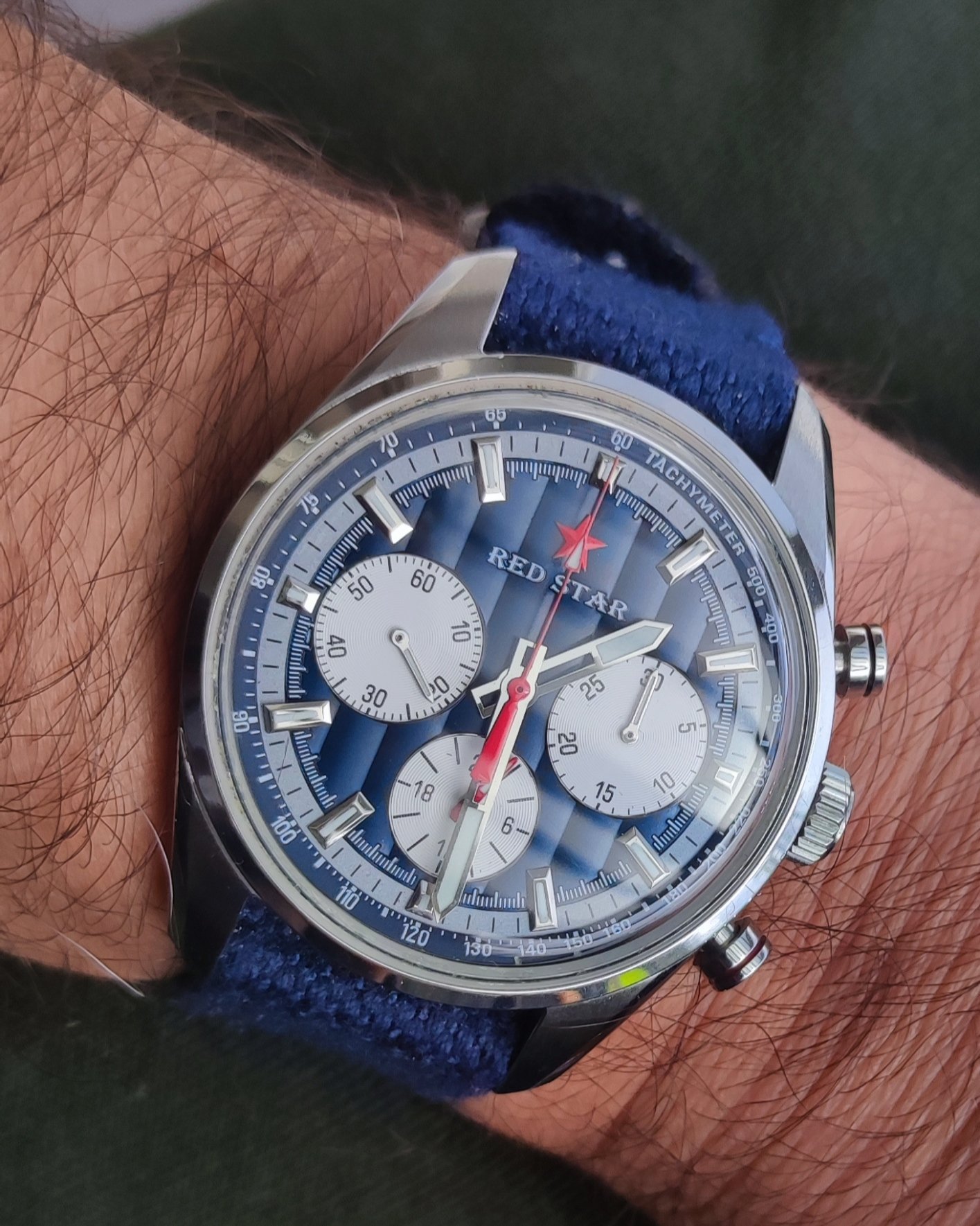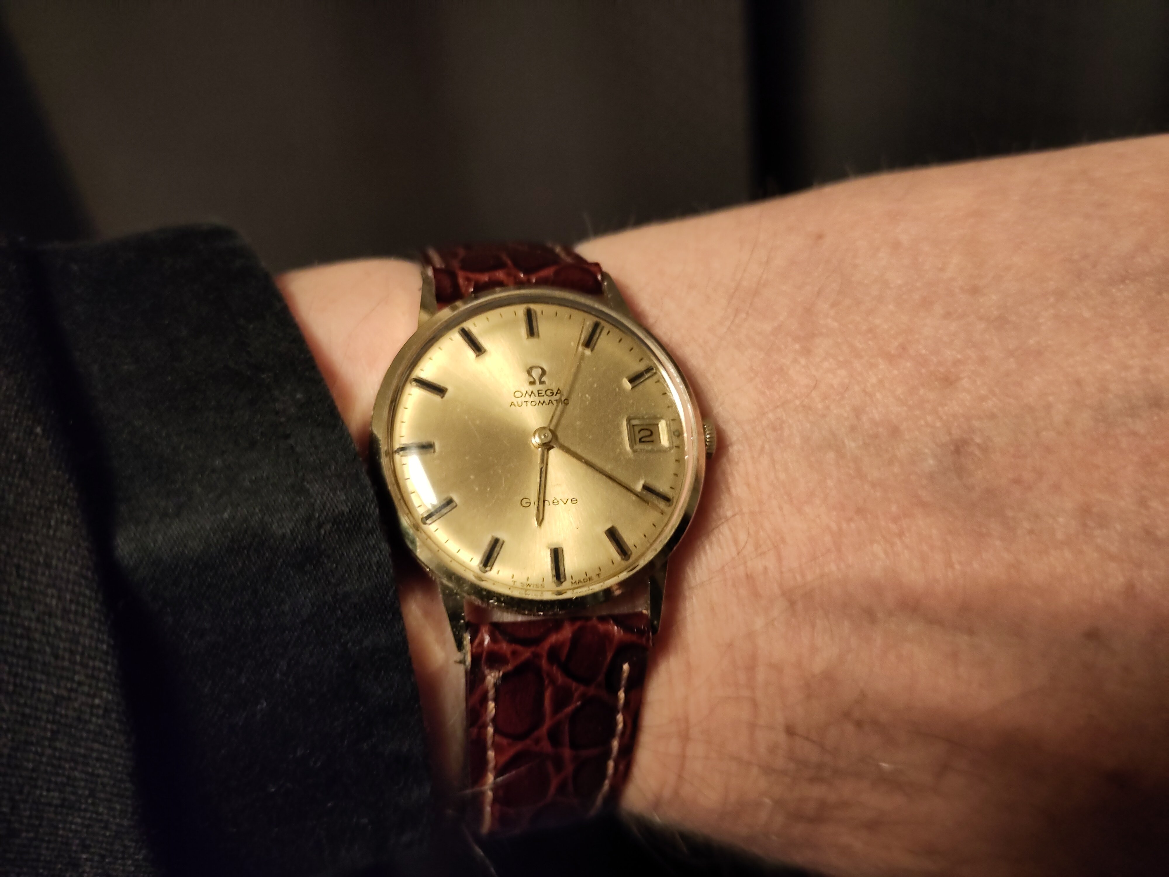 I changed the strap from a Hirsch to a Fluco goat leather strap, which is very comfortable. Have been somewhat disappointed with Hirsch lately, I have some nice ones from them, but recently, they were pretty stiff... Well, goat leather is much softer, but I guess I'll try other Fluco straps in the future.