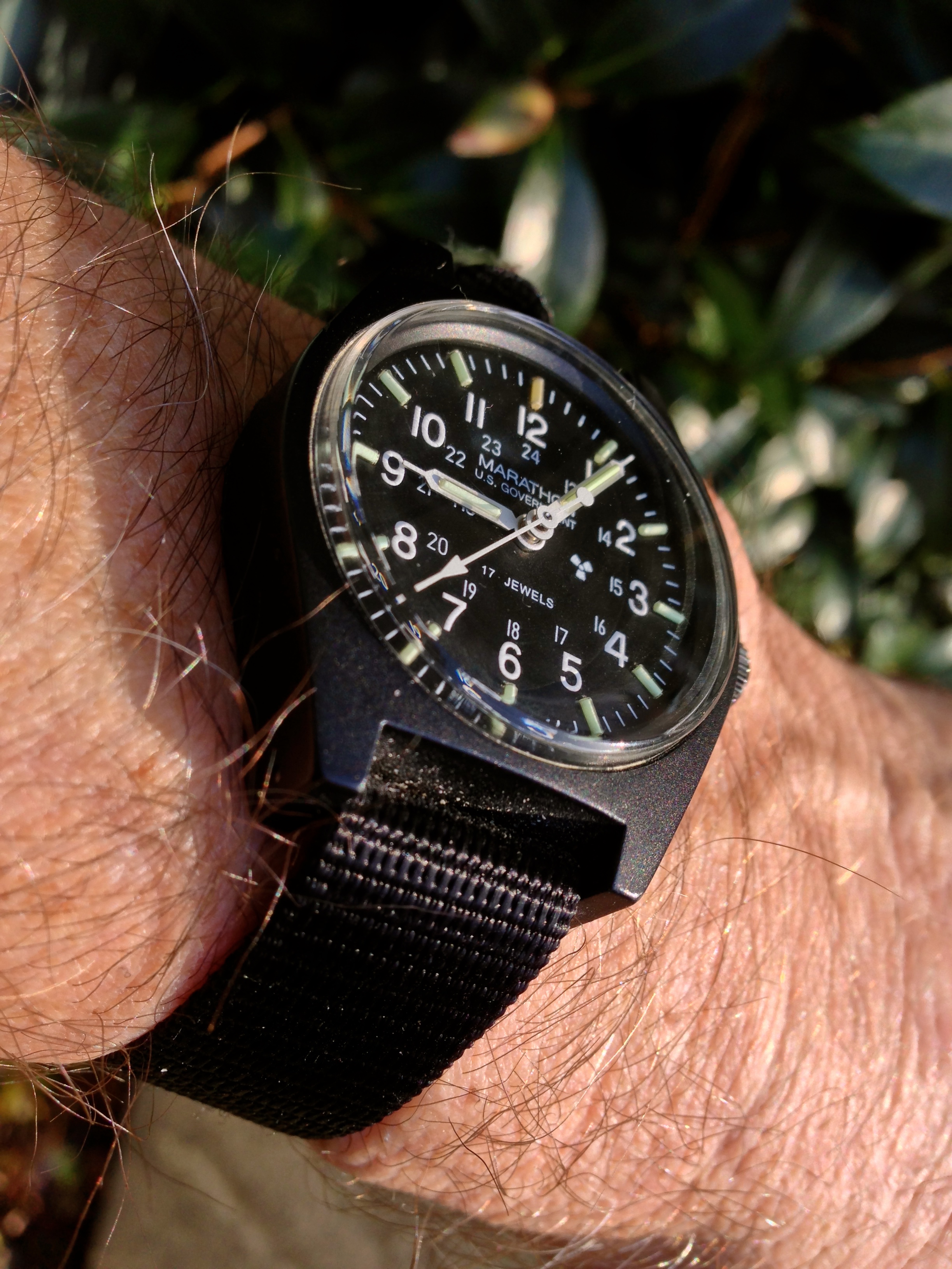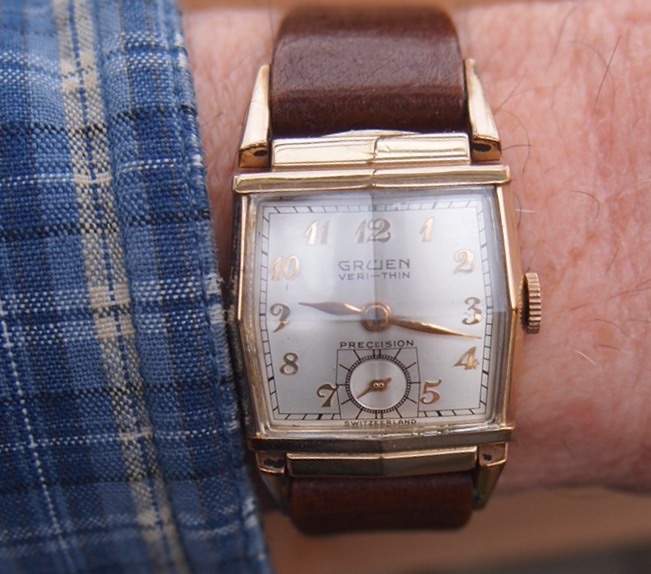 One I seldom wear, a Gruen Veri-Thin "driver's watch" with articulated lugs to permit wear on the edge of the wrist when driving you antique auto with "armstrong steering", three on the floor, and "plan ahead" braking! Too small for my rather large wrist.