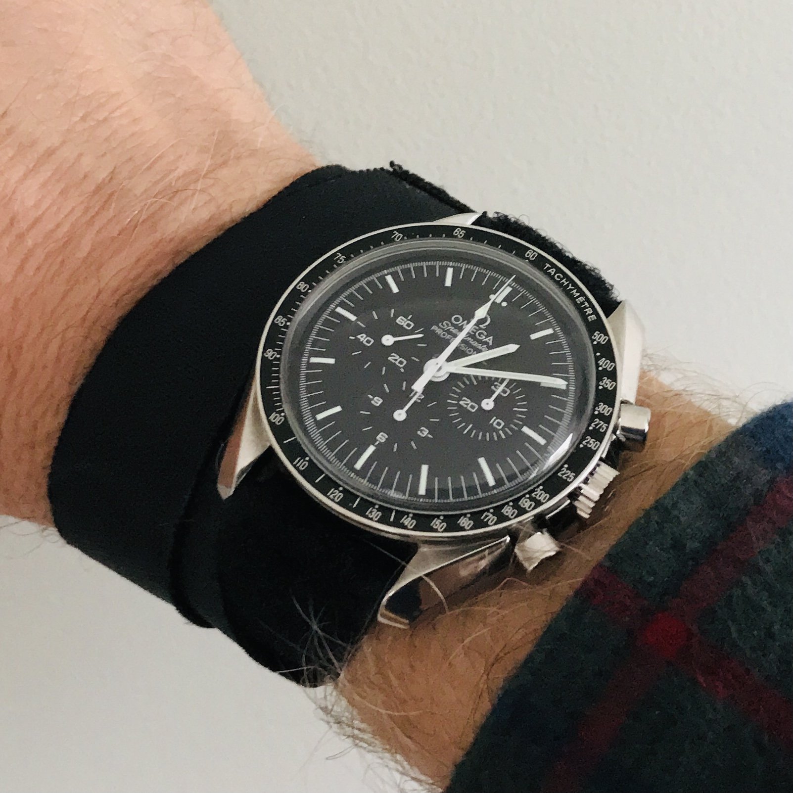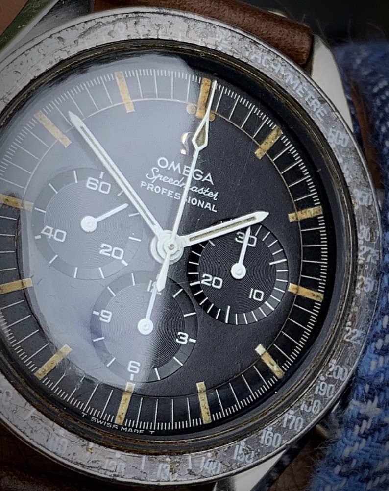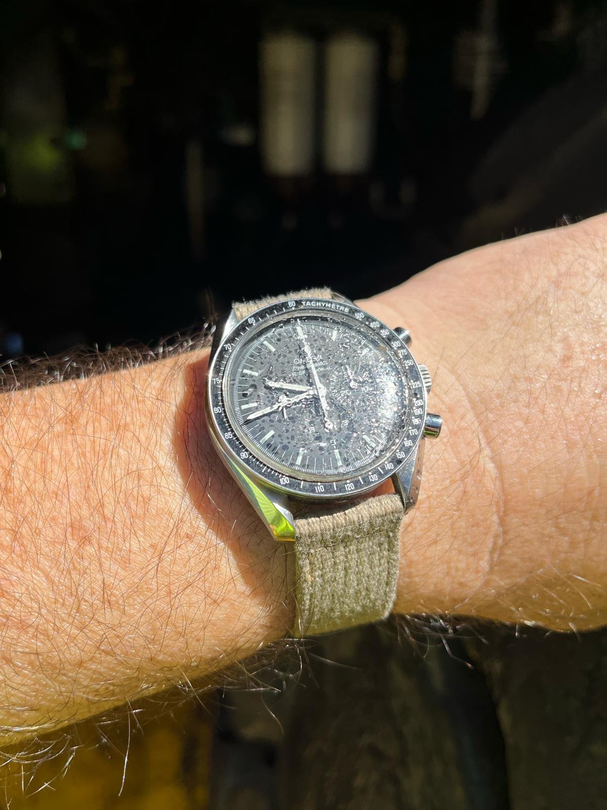 Switcheroo from my vintage Breitling mil nav watch to my 1861 and 3861 on Omega NASA straps…referencing my 1861 presentation box book to get the Aldrin-style right…