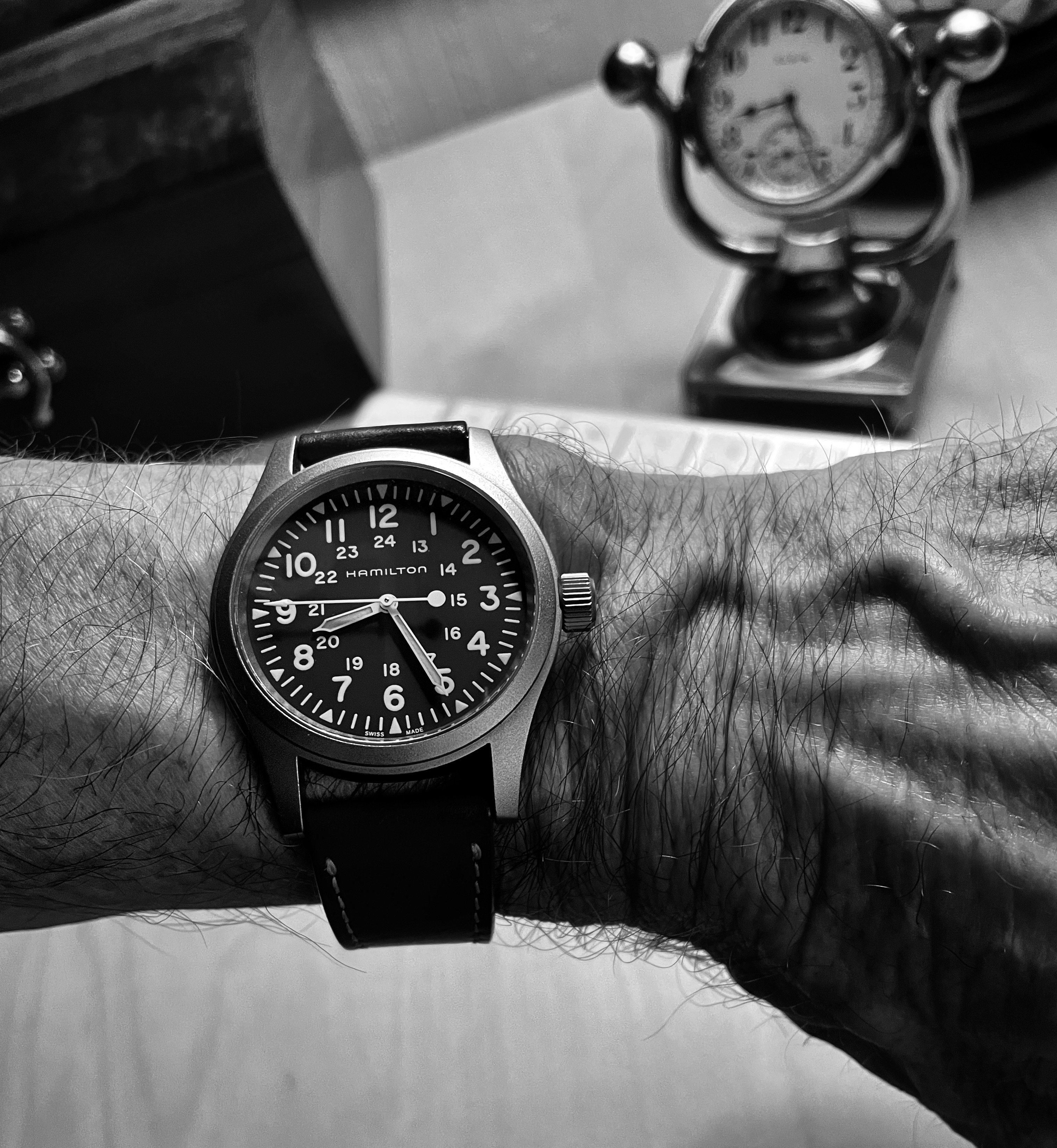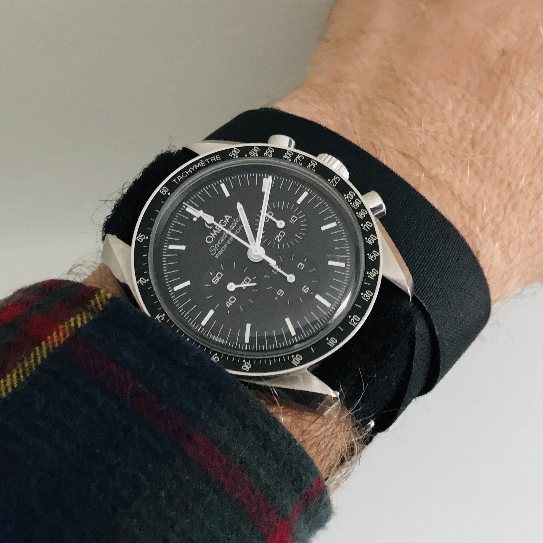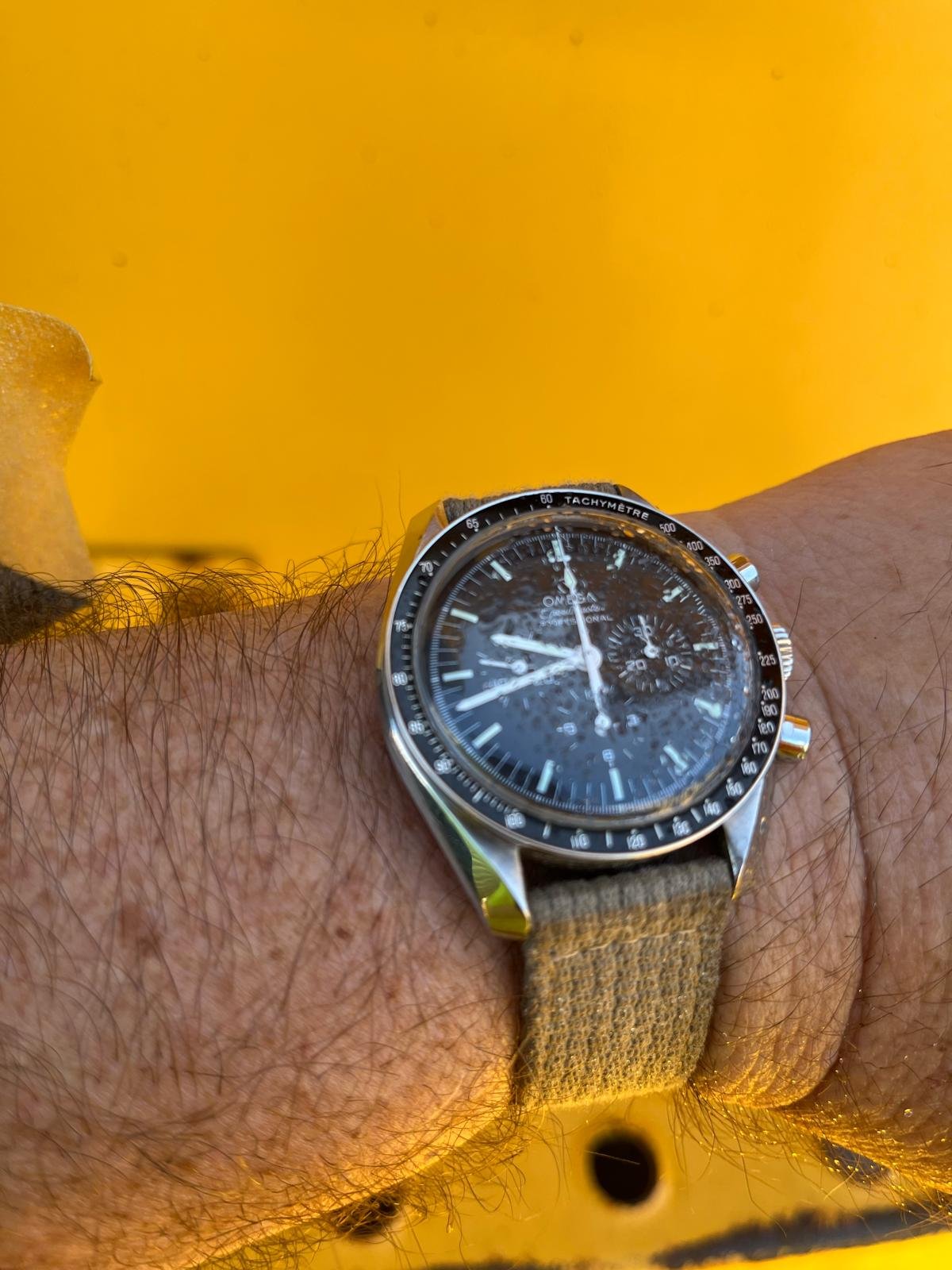 Switcheroo from my vintage Breitling mil nav watch to my 1861 and 3861 on Omega NASA straps…referencing my 1861 presentation box book to get the Aldrin-style right…