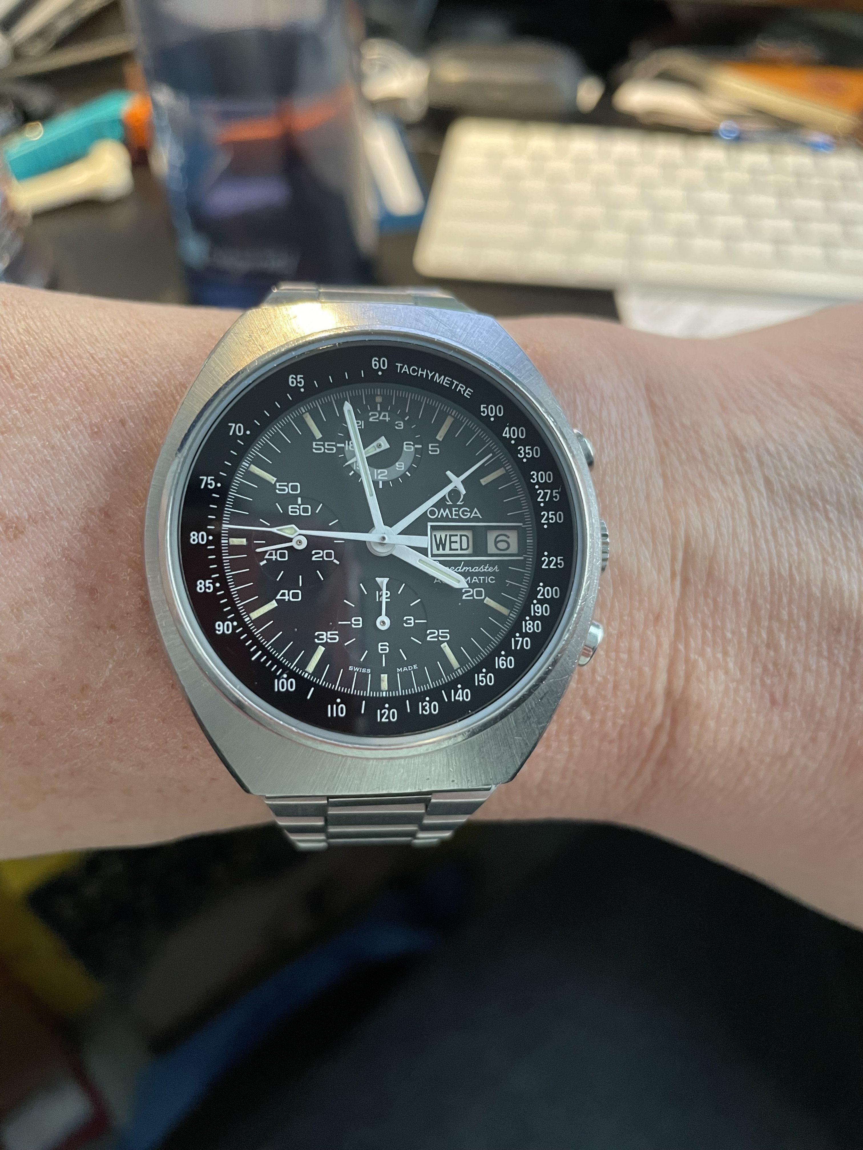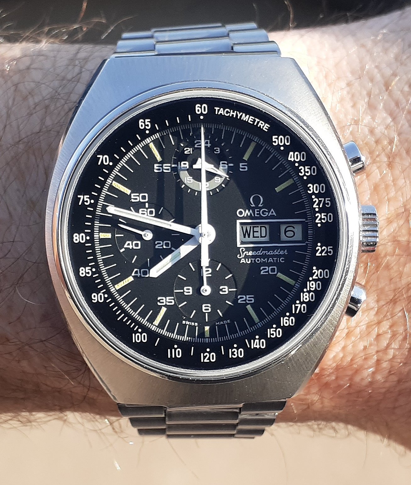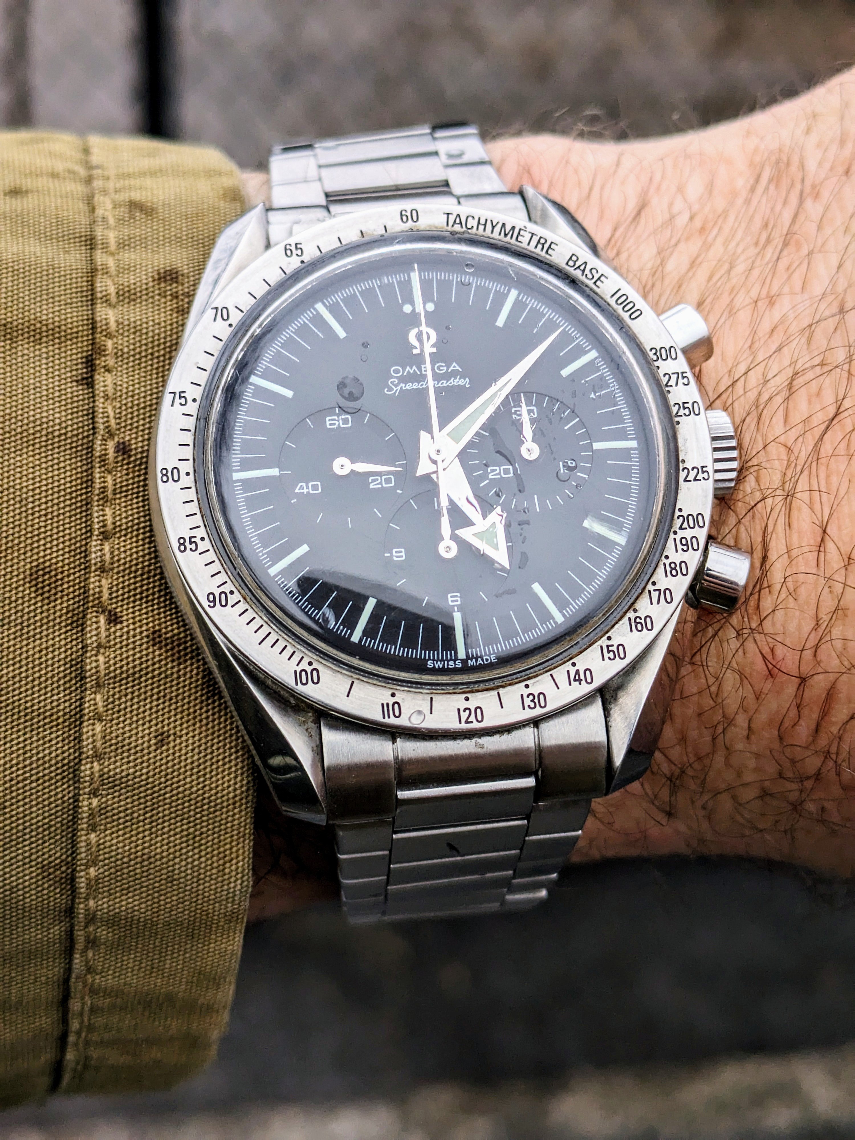 Apollo 11 35th dialled Speedmaster with 3861 bracelet, this is one of the best looking Omega's, imo. Although I haven't seen the new white dial model in person I believe an opaline silver dial always beats a pure white dial, at least for me. I prefer the softness over the stark.