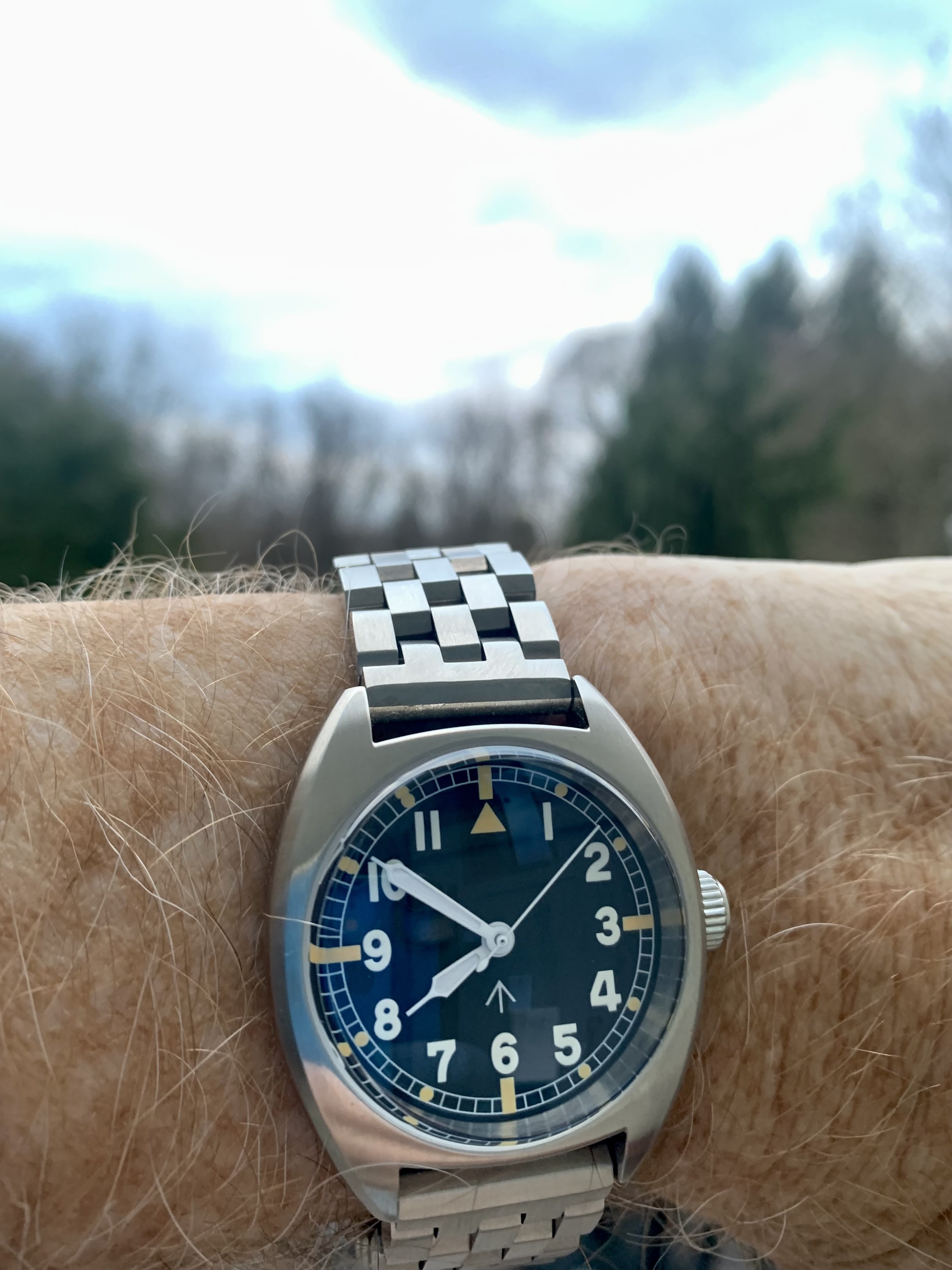 Never underestimate the power of social media marketing. After being hounded relentlessly on Instagram, I finally decided to take the Kuoe plunge. I chose this particular variant because it is more non-military in appearance compared to other models, and the cushion case gives it a nice 70s vibe. I measured the case at 34.25mm at its narrowest, and it definitely wears larger than that measurement would suggest. The thing that is most impressive about pretty much every aspect of the watch is the quality of finishing. The dial, case, quick-release strap, all came with better-than-expected attention to finishing. Even the movement is thoughtfully, if modestly decorated, which is a noticeable contrast to Seiko watches at this price point. Over the first fourteen hours of wearing the watch, the movement is running at about +7sec/day, which is about as good as could be expected.
