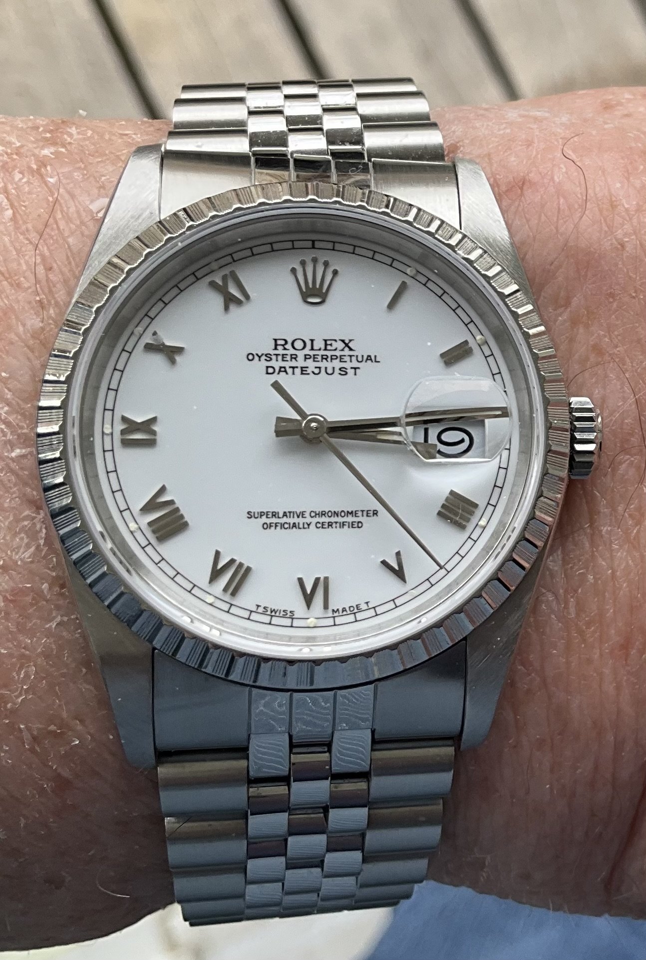 I know it is Tuesday, and my Speedmaster is in the vault. So why don’t I put it on in honour of the day? Well, I have been wearing my 34-year old Rolex Oyster Date-Just since setting it with my iPad on March 11, and it is one second slow! Why change?
