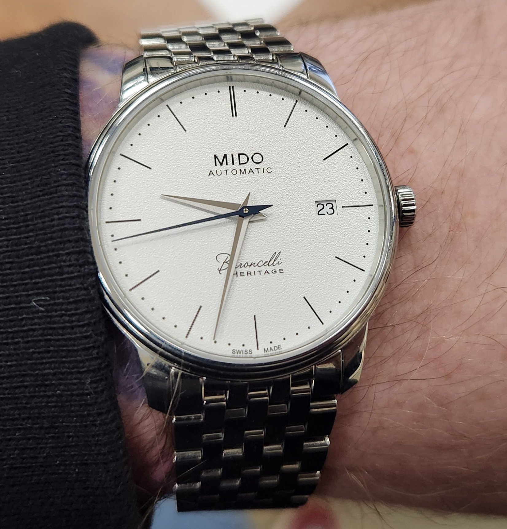 Posts 505 Likes 2,071 samweldspoorly ·Mar 19, 2024 A friend let me try on his Mido. It's nice. Little bauhaus flavor. ❤️