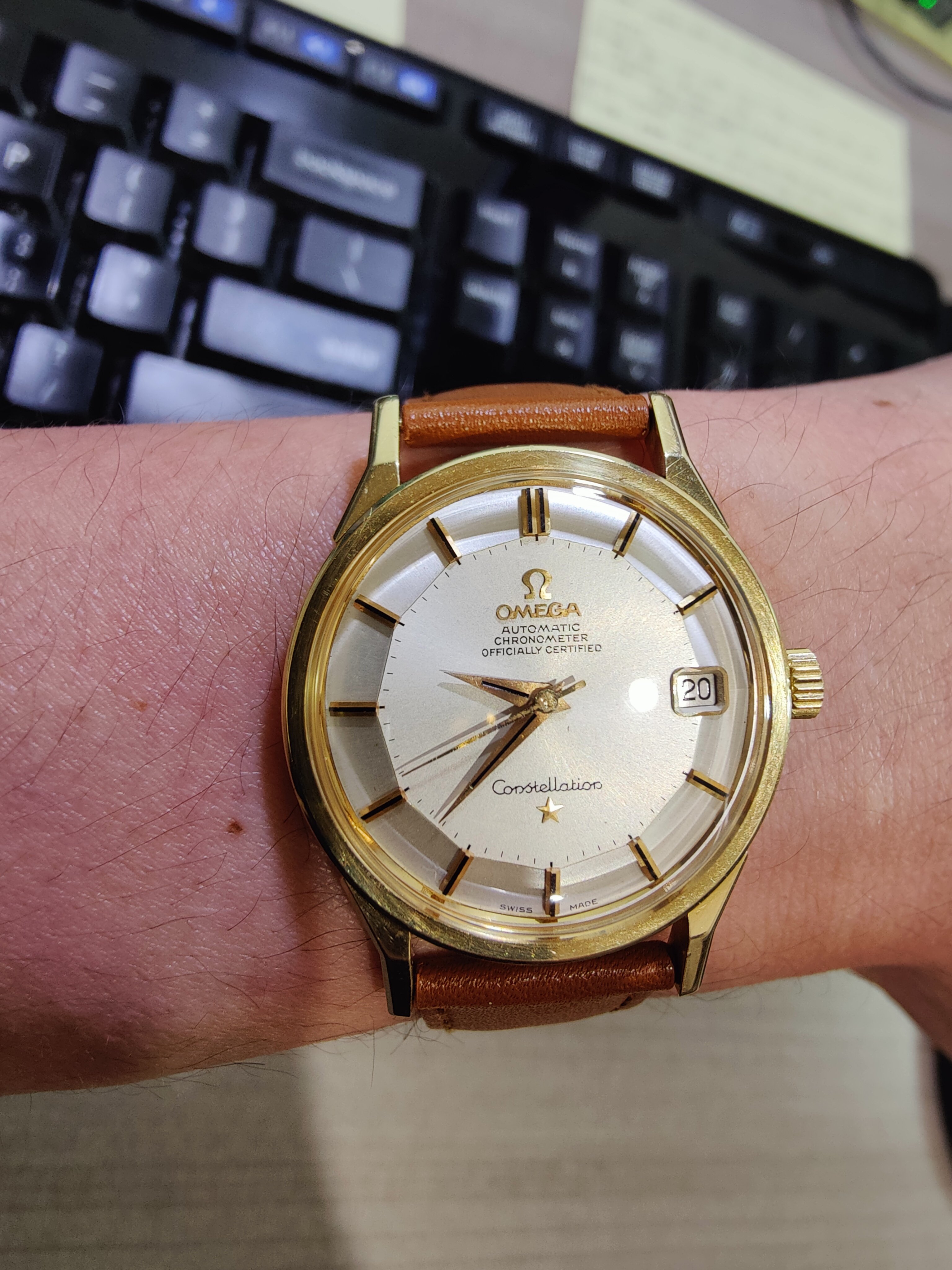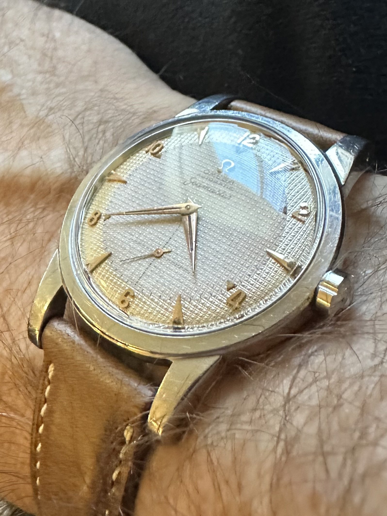 Posts 9,750 Likes 54,606 gbesq ·Mar 20, 2024 Good day all. 1953 jumbo Seamaster 2657 with a two tone hobnail dial with rose gold furniture. Edited: Mar 20, 2024