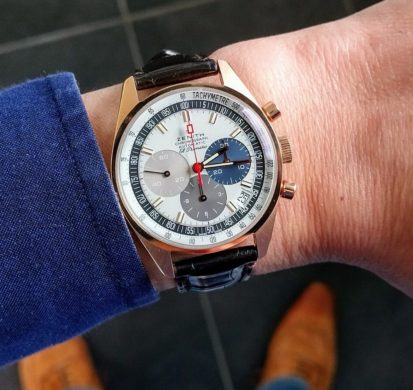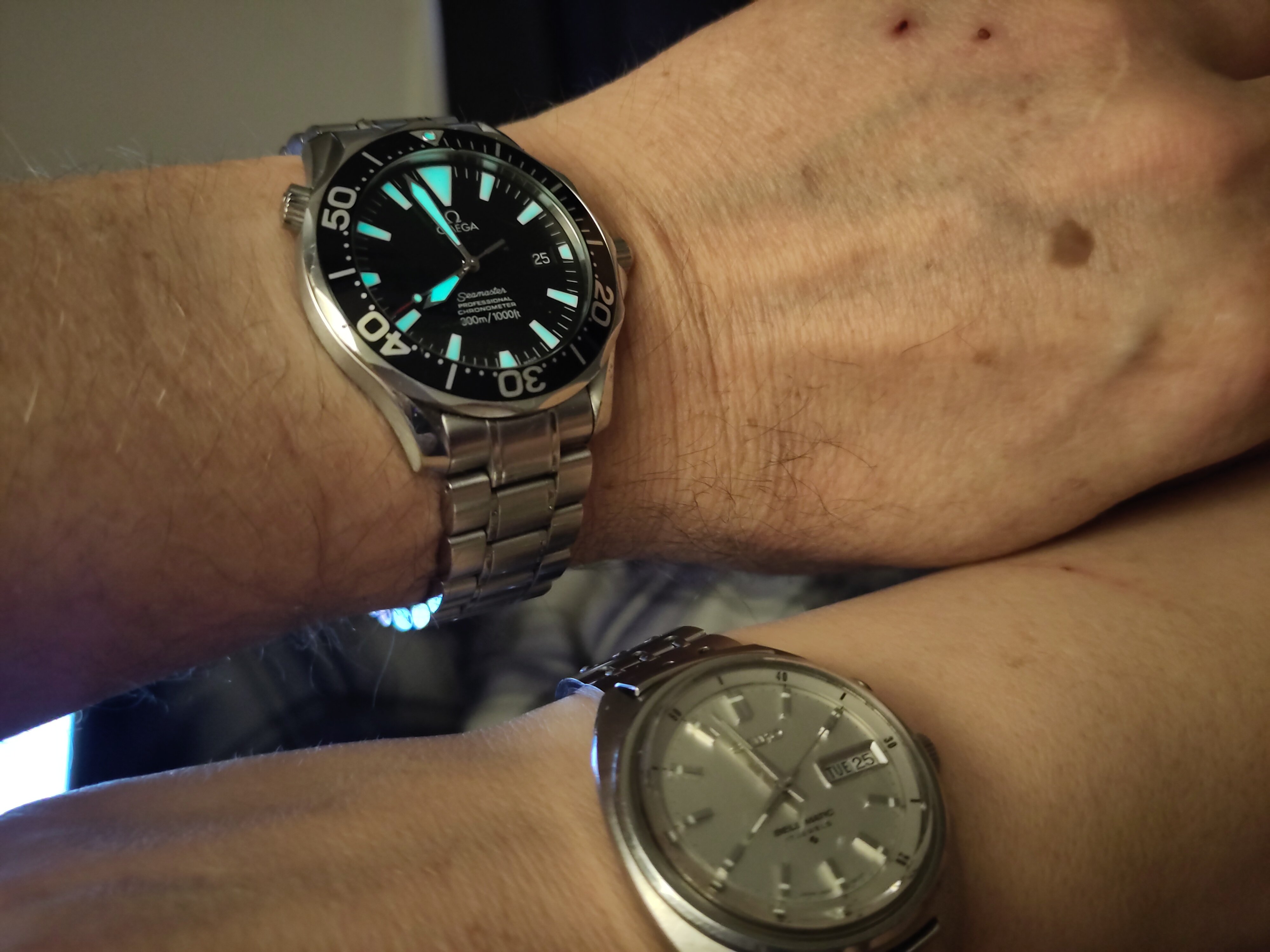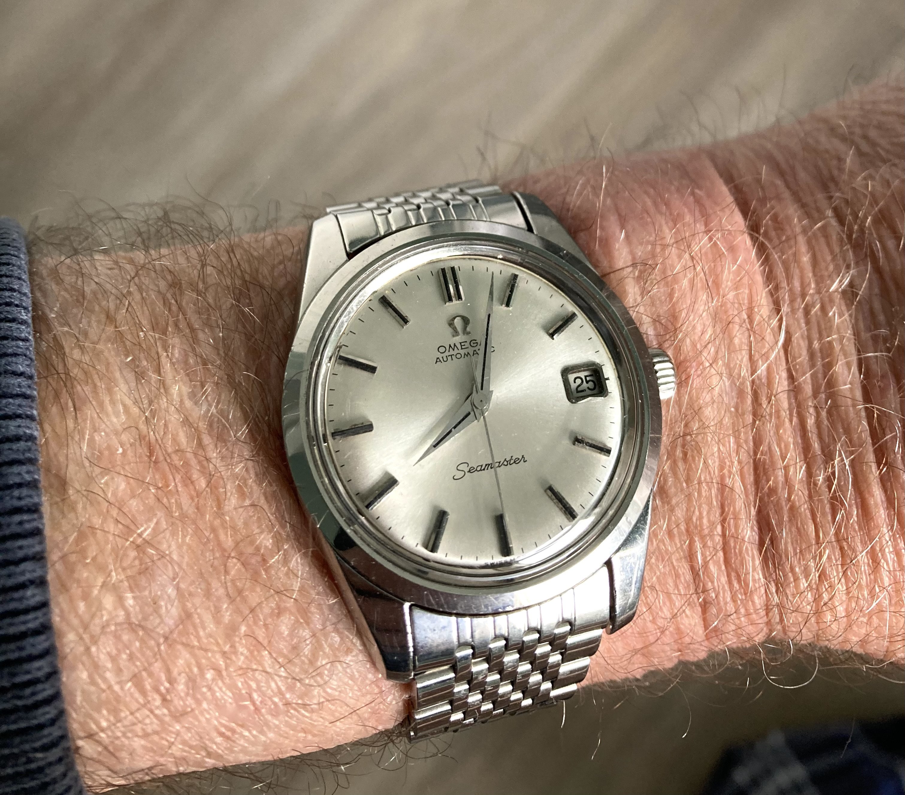 ·One of two, today. In 1969, I worked for a chain jewellery store that carried Bulova Accutron. In 1969, I sold this watch to its original owner. That’s 55 years ago! After 1969, I was transferred away, and we lost touch. In 1971, I was transferred back, and was managing one of the chain’s stores in the mall where his wife worked. They followed me. In 1980, I was promoted to manager of a different local store. They followed me. I left that firm in 1990. They followed me. In about 2005, his wife had died, and he took up residency in a senior’s care home. He phoned me one day, and asked me to visit him. During the visit, he gave me the Accutron I’d sold him way back then. I don’t wear it much as the gold filled case has corrosion problems. It’s a style of Accutron I have always liked.